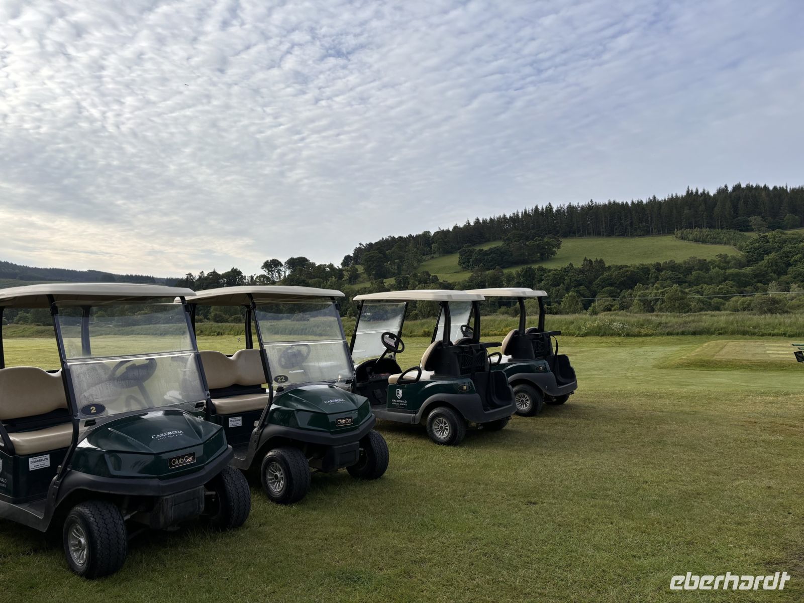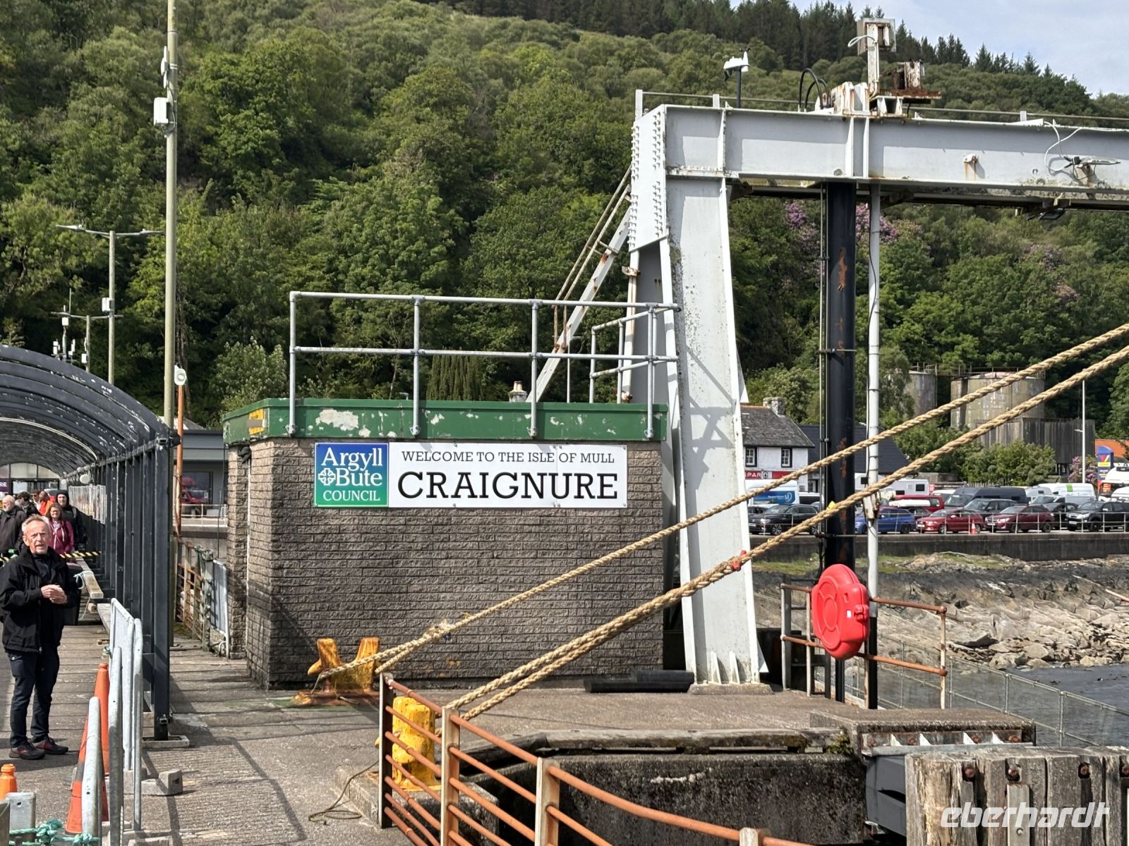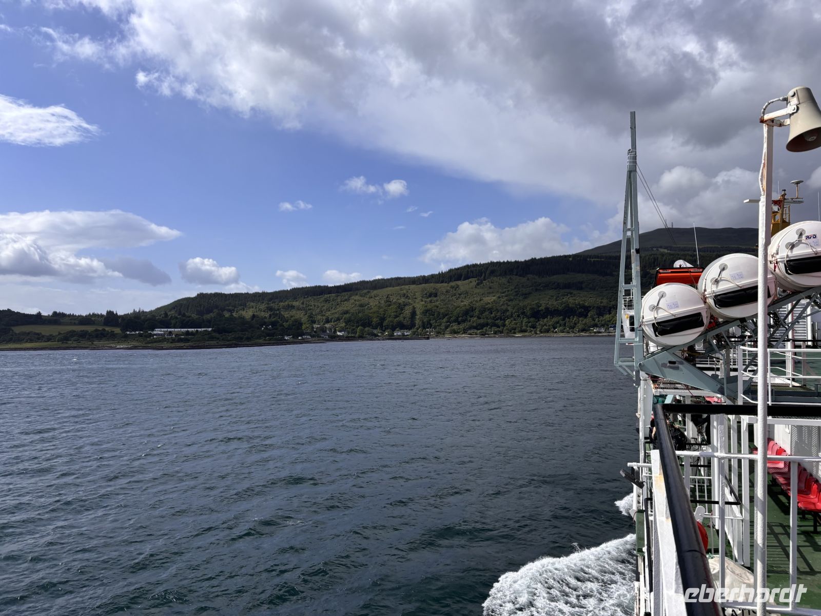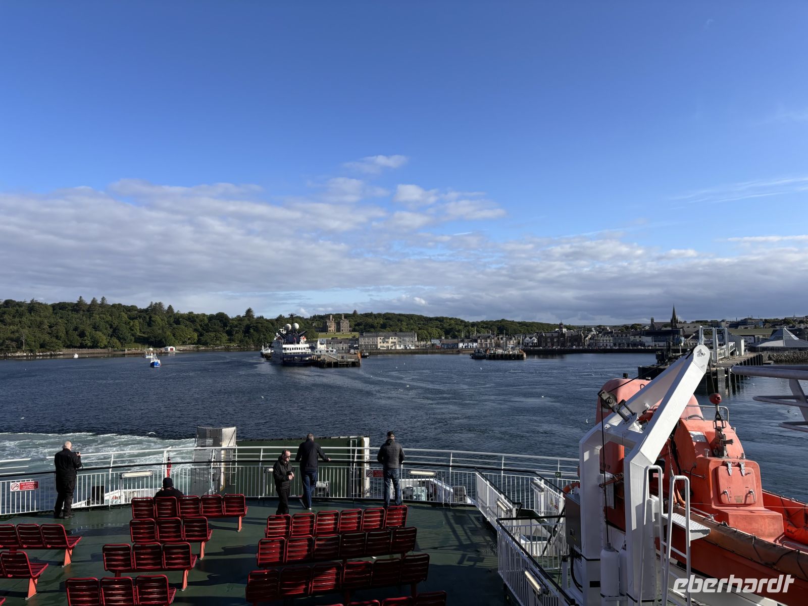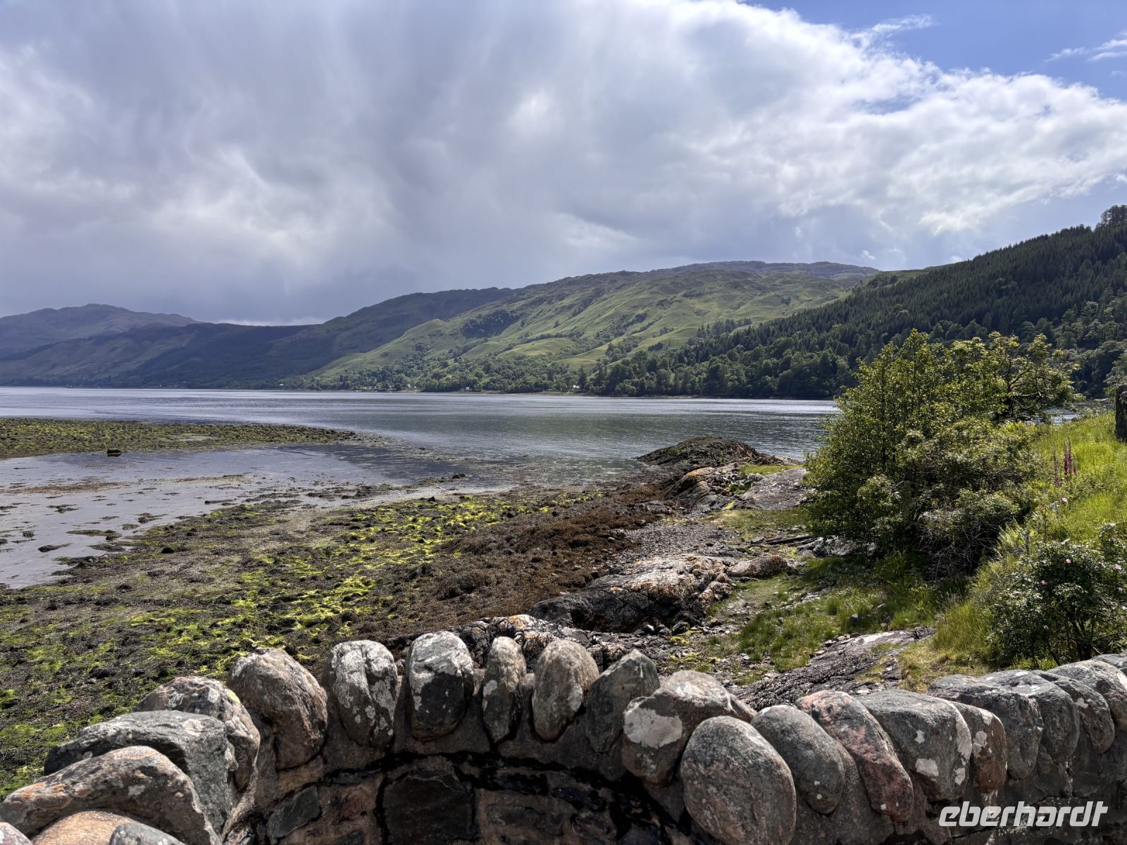 Wir können es kaum abwarten, nach dem sehr reichhaltigen Frühstück endlich durch die Passkontrollen einreisen zu dürfen. Die Nacht auf der Fähre war für alle erholsam und unsere Neugier, die Vielfalt des schottischen Wetters ;) zu erleben, groß. Direkt am Ausgang des Hafengebäudes in Newcastle upon Tyne stand der Bus mit unserem Busfahrer Daniel schon bereit. Unsere erste Station sollte nun der Hadrianswall sein. Daniel fuhr uns vom Hafen über Corbrigde, der A68 und schließlich (der wirklich engen) B6318 immer in Sicht die Überreste der Mauer bis zum Cawfields Quarry. Hier betraten wir nun den Boden der Borderlands. Aus dem Steinbruch wurden früher die Steine an die Mauer transportiert und zu einem gigantischen Bollwerk errichtet. Heute sind jedoch nur noch Fundamente und Mauerreste zu erkennen. Wir fragen uns, was haben wohl die Einheimischen gedacht, als sie vor der riesigen Mauer standen? Der Regen treibt uns wieder in den Bus und es geht weiter nach Gretna Green. Kurz vor dem Ort für „heiratswütige“ Jugendliche überqueren wir die schottische Grenze. Die Hymne der Schotten begleitet uns bis zur Schmiede. Nachdem endlich der Papierkram erledigt ist, führt uns der Museums-Guide in das Infocenter und erklärt den Ablauf der Zeremonie und die Geschichte dazu. Sogleich findet sich ein Paar unserer Truppe, welches ihren Trau Schwur gern erneuert und uns anschaulich demonstrierte, wie der Ablauf sein sollte, eigentlich wie er noch heute ist, denn noch immer kann man dort heiraten. Auch wir vom Eberhardt Team hatten noch eine Zeremonie im Bus zu erledigen. Tradition muss bewahrt werden; denn nach Überquerung der Ländergrenze sollte ein Tost mit dem Wasser des Lebens uns das Gefühl von schottischer Wärme durchdringen. – Hat tatsächlich auch geklappt. Nun aber zügig weiter, um unsere Fluggäste in Glasgow abzuholen. Hier angekommen, finden wir schnell die vier Gäste und schon rollt der Bus in Richtung Loch Lomond, Luss. Das alte Dorf aus der Zeit der Industrialisierung mit den schönen Häusern aus Sandstein und Schieferdächern gibt uns einen tollen Eindruck, wie gemütlich ein Dorf wirken kann. Wir laufen zum See hinunter und freuen uns darüber, dass der Wettergott uns einen wunderbaren Regenbogen über den See spannt. Weiter geht es nun durch die Region Argyll und Bute bis nach Oban, dem Tor zu den Hebriden. Die Nacht verbringen wir im nahe dem Hafen gelegenen Hotel. Die Möwen singen uns hier ein Schlaflied.