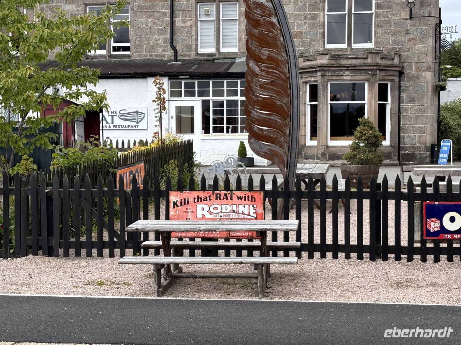 Die Reise führt uns heute entlang der Nordseeküste im Osten, zuerst zum nördlichsten Punkt der Insel, dem Dunnet Head an der Dunnet Bay. Weiter zum vermeintlich nördlichsten Ende, John o’Groads. Der Fährmann, ein Holländer, hatte hier 1496 das erste Fährrecht nach Orkney zugesprochen bekommen, was ihn zu Reichtum brachte und diesen kleinen Ort entstehen ließ. Nur wenige unserer Gruppe entdeckten zwei muntere Otter am Pier. Leider waren sie soooo schnell verschwunden, dass kein weiterer Gast einen zu Gesicht bekam. Wir passieren die Ruine Castle of Old Wick und fahren weiter bis zum Märchenschloss Dunrobin Castle. Die Gruppe marschiert gleich in den Garten, um die Falkner-Show nicht zu verpassen. Im Anschluss besichtigen wir das reich geschmückte Schloss. Überall stehen frische Blumenarrangements, wie die Floristin erklärte, zu 90 % aus dem eigenen Garten. Der Sitz der Herzöge von Sutherland hinterlassen ein prächtiges Erbe, welches unzählige Schicksale hinterlassen hat. Ein bisschen makaber ist allerdings das Museum im Garten, nichts für Kinder, sage ich nur! Der Weg führt nun weiter bis nach Inverness. Wir besuchen die St. Andrew’s Kathedrale mit ihren süßen Kirchenmäusen. Spazieren am River Ness über die Infirmary Brücke bis zum Denkmal der Flora McDonald am Castle von Inverness. Mancher hatte dazu keine Lust und ging direkt in die Stadt zum Victorian Market oder einfach nur bummeln. Alle sind der Meinung, wir sollten Nessie noch einen Besuch abstatten. Versuch macht klug, sie hatte Urlaub beantragt, somit begnügten wir uns mit dem Plastikungeheuer. Nun geht es ins Hotel nach Strathpeffer, wo sich einige der Gäste am Abend noch zu Fuß auf den Weg zum piktischen Eagle-Stone gemacht haben. Genug für heute, Entspannung im Hotel mit Livemusik und dem Wasser des Lebens.