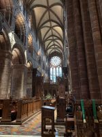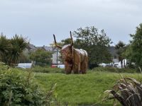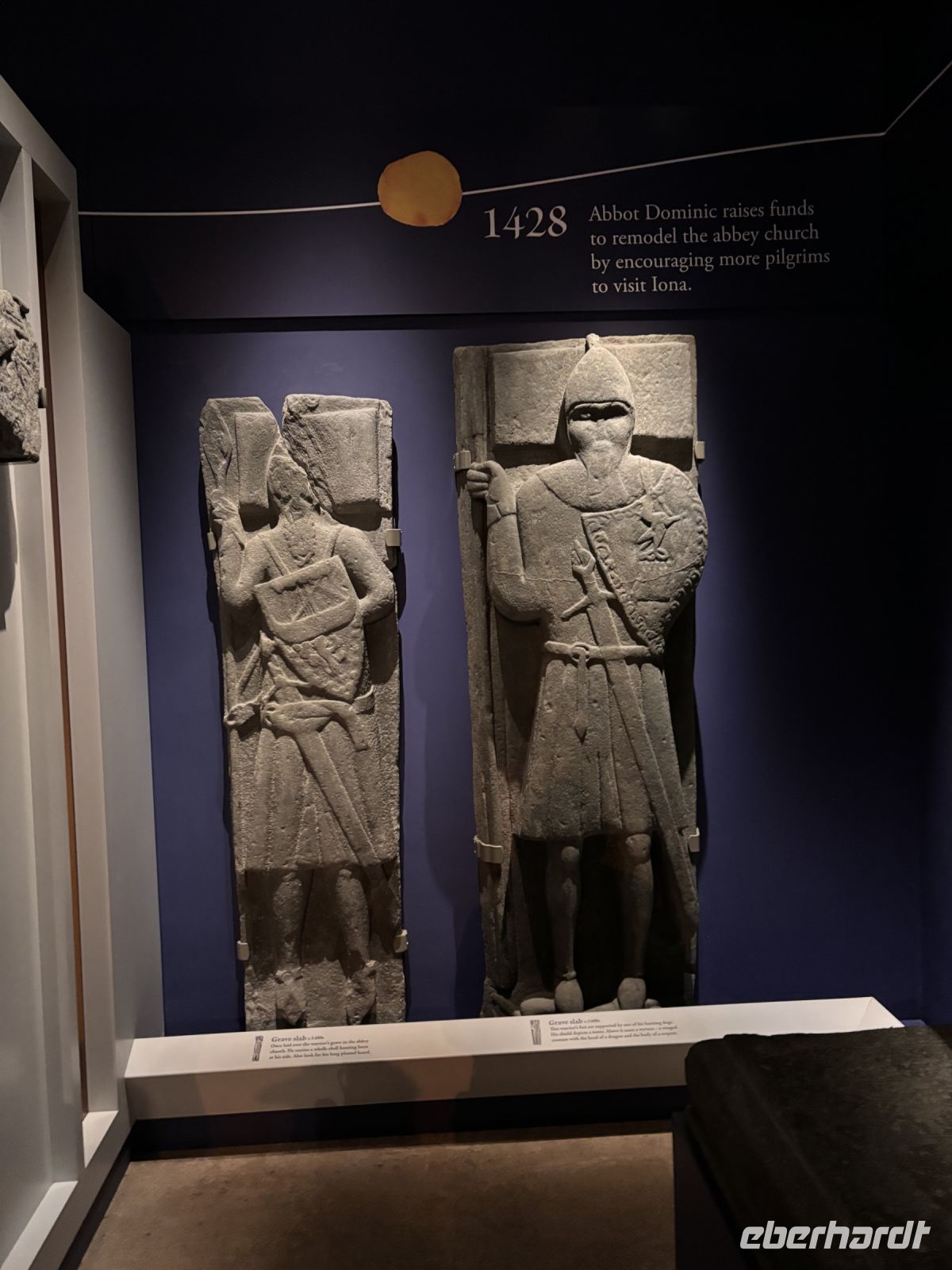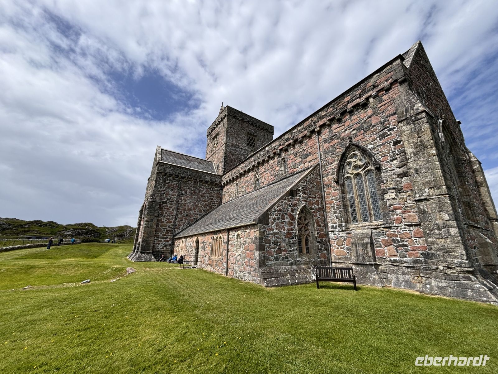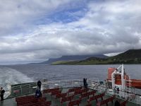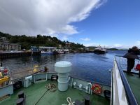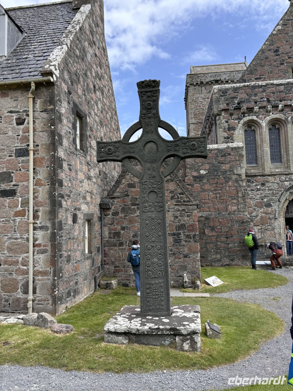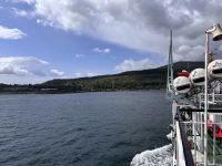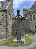 Dieser Mittwoch solle ein sehr spannender Tag werden. 5 Fähren wollen wir fahren, bis der Tag in Fort William enden soll. Am Morgen nach dem Frühstück packen wir die Koffer wieder in den Bus und Daniel fährt uns zum Hafen von Oban. Leider Regnet es und wir warten im Fährgebäude, bis wir auf die Fähre gehen dürfen. Es ist windig und kalt, was uns nicht davon abhält, draußen auf dem Oberdeck jetzt mit Sonne und weißen Wolken den Blick noch einmal auf Oban gerichtet, mit dem McCaig’s Tower im Hintergrund. Wir schippern an der Insel Lismore mit dem schönen Leuchtturm an der Spitze vorbei. Der Blick schwenkt auf die andere Seite und die Isle of Mull begrüßt uns bei schönstem Wetter. Wir können uns gar nicht satt sehen. Duart Castle thront an den Klippen und wacht über die See. Schon erreichen wir den Hafen von Craignure auf der Isle of Mull. Wir gehen von der Fähre und schauen zu, wie unser Bus aus dem Bauch der Fähre wieder auftaucht. Schon sitzen wir im Bus und es geht weiter quer über die Insel vorbei am 966 m hohen Ben More. Die Wolken ziehen sich dunkel über den Munro zusammen. Erstaunlicherweise ist mehr bewaldete Fläche zu sehen als erwartet. Doch die Landschaft wechselt zu Moor- und Grassebenen, es geht hoch und runter, kleine Seen ziehen an uns vorbei. Plötzlich steht Highland Cattle, eine Kuh, mit ihrem Kalb auf der Straße und bewegt sich nicht vom Fleck. Unsere Reiseleiterin Sabine steigt aus und scheucht sie respektvoll von der Straße. Weiter geht es zur nächsten Fähre in Fionnphort. Wir setzen über zur Insel der Heiligen und Toten, Iona. Eilig geht es zur Iona Abby hoch, um so viel wie möglich vom Spirit dieser heiligen Pilgerstätte mitzubekommen. Schade, dass wir nicht länger verweilen können, denn wir wollen noch bis zum Fuße des Ben Nevis in Fort William. Der Weg führt uns vom Fähranleger Fishnish auf Mull nach Lochaline über das westliche Festland entlang des Loch Linnhe nach Ardgour und ein letztes Mal fährt der Bus auf die Fähre nach Corran am heutigen Tag. Wir freuen uns schon alle auf das Abendessen, denn der Tag war lang, mit vielen tollen Eindrücken, die uns hoffentlich lange in Erinnerung bleiben werden.