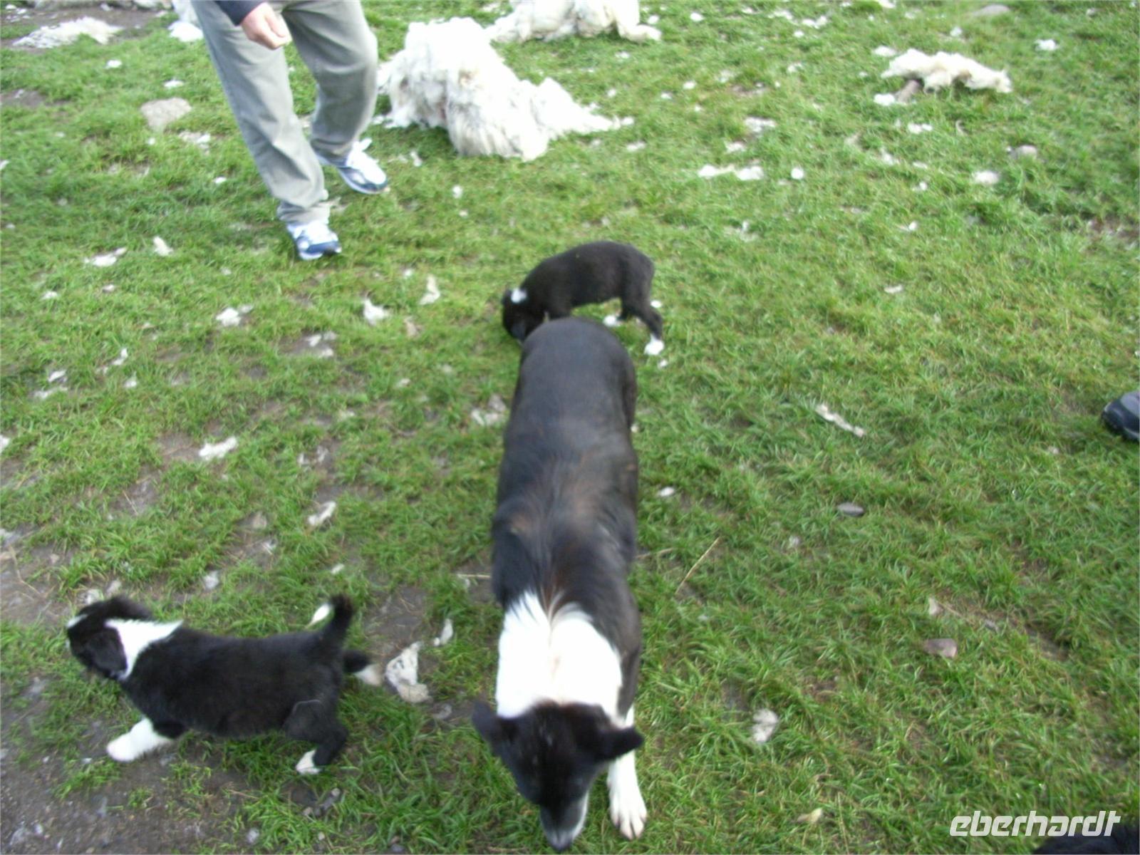 Der nächste morgen hielt für uns überraschend gut dressierte Schäferhunde von Neil Ross bereit: seine Collies hat er voll im griff und diese haben seine Schafe wiederum im Griff: Zusammentreiben, Zusammenhalten, Abdrängen, ja sogar Slalom führten sie uns vor - dazu gab es ein schönes Kinderbuch von der Schäferin. Eine Schafschur führte Neil vor und dann konnten wir uns darin üben, wer weiß, ob und wann es mal gebraucht wird?