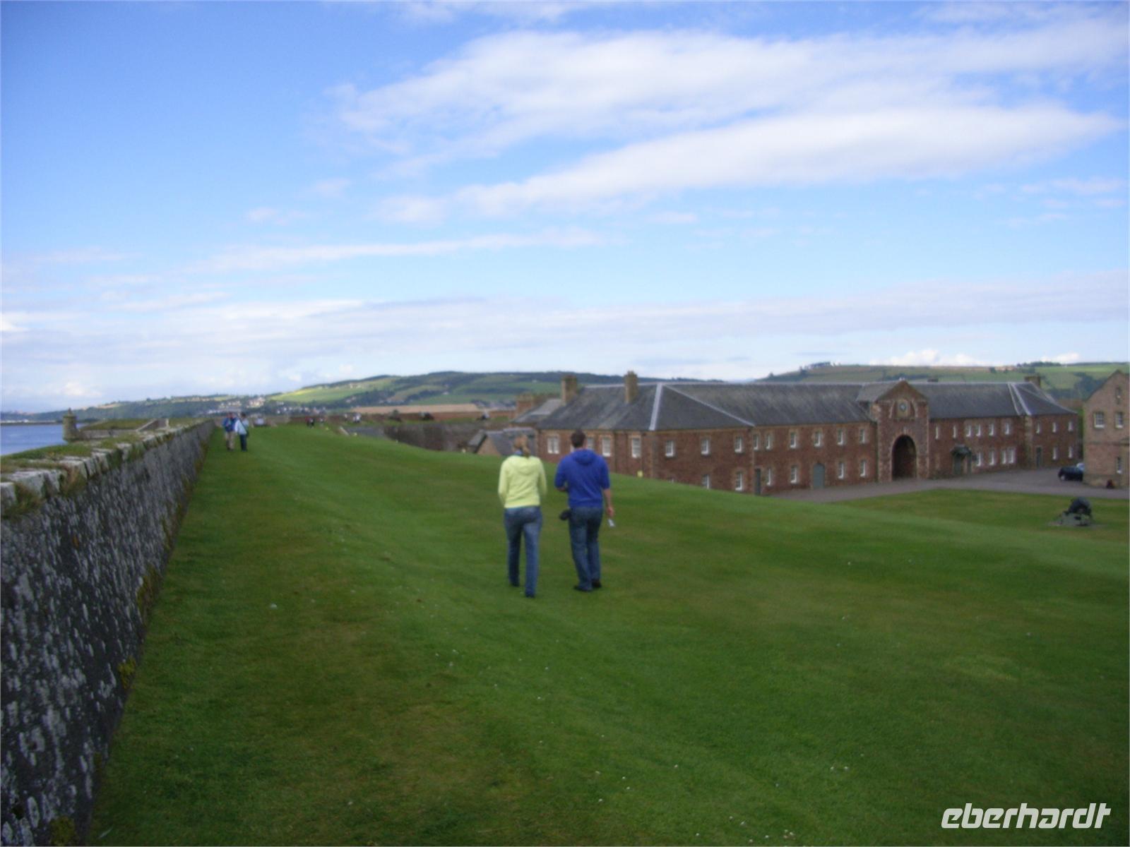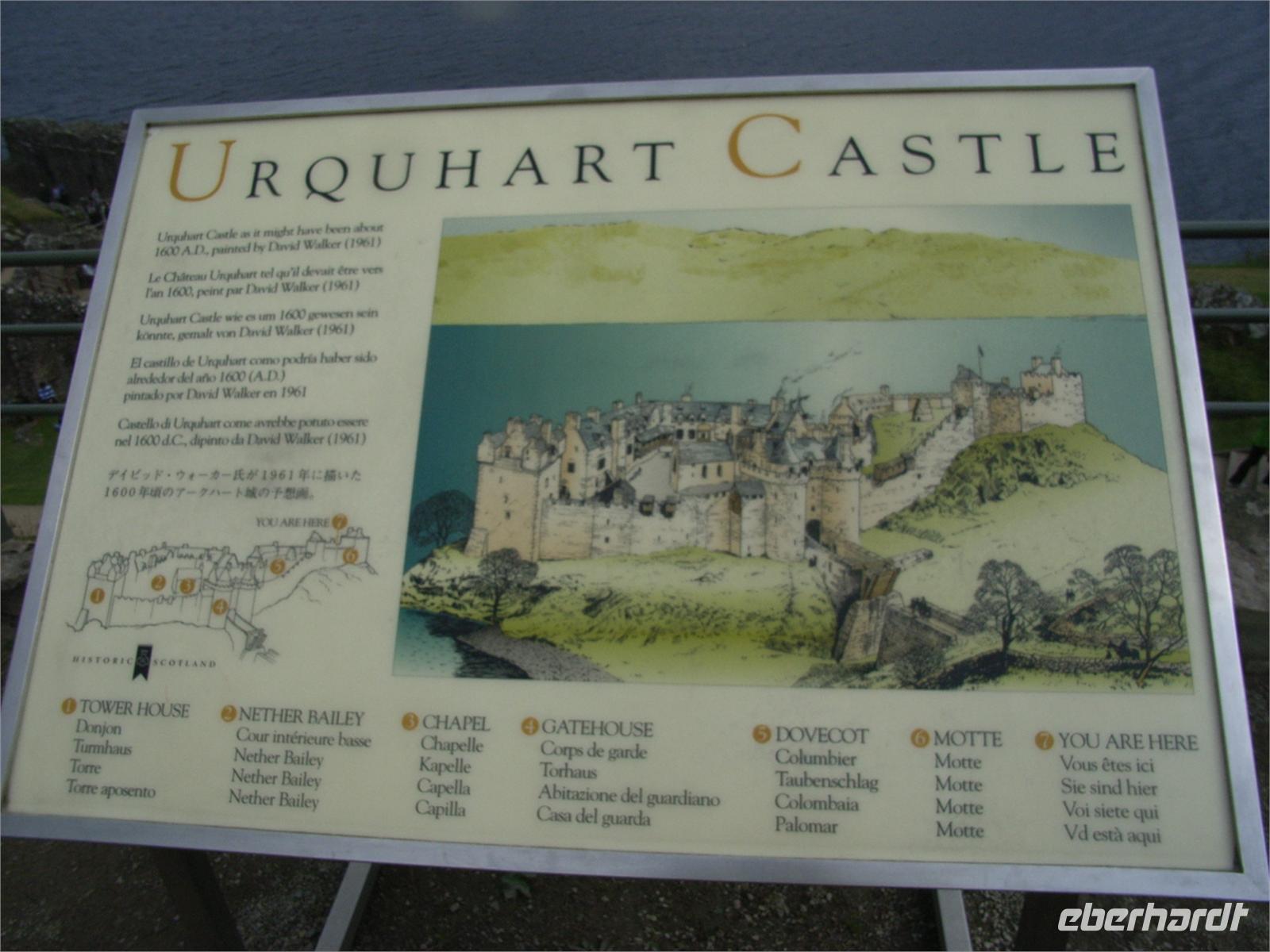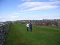 Nahe dem kaledonischen Graben und seinem Kanal waren wir dann in Fort Augustus (ohne Fort), doch vorher bestaunten wir das schwarze moorige Wasser des Loch Ness (ohne Nessie!) und die Ruine Urquart Castle, wo wir einen anschaulichen Film dazu sahen. Am Kriegsgefallenen-Denkmal Commando memorial in Spean Bridge hatten wir einen selten klaren Blick auf den Ben Nevis (Ben heißt Berg).
