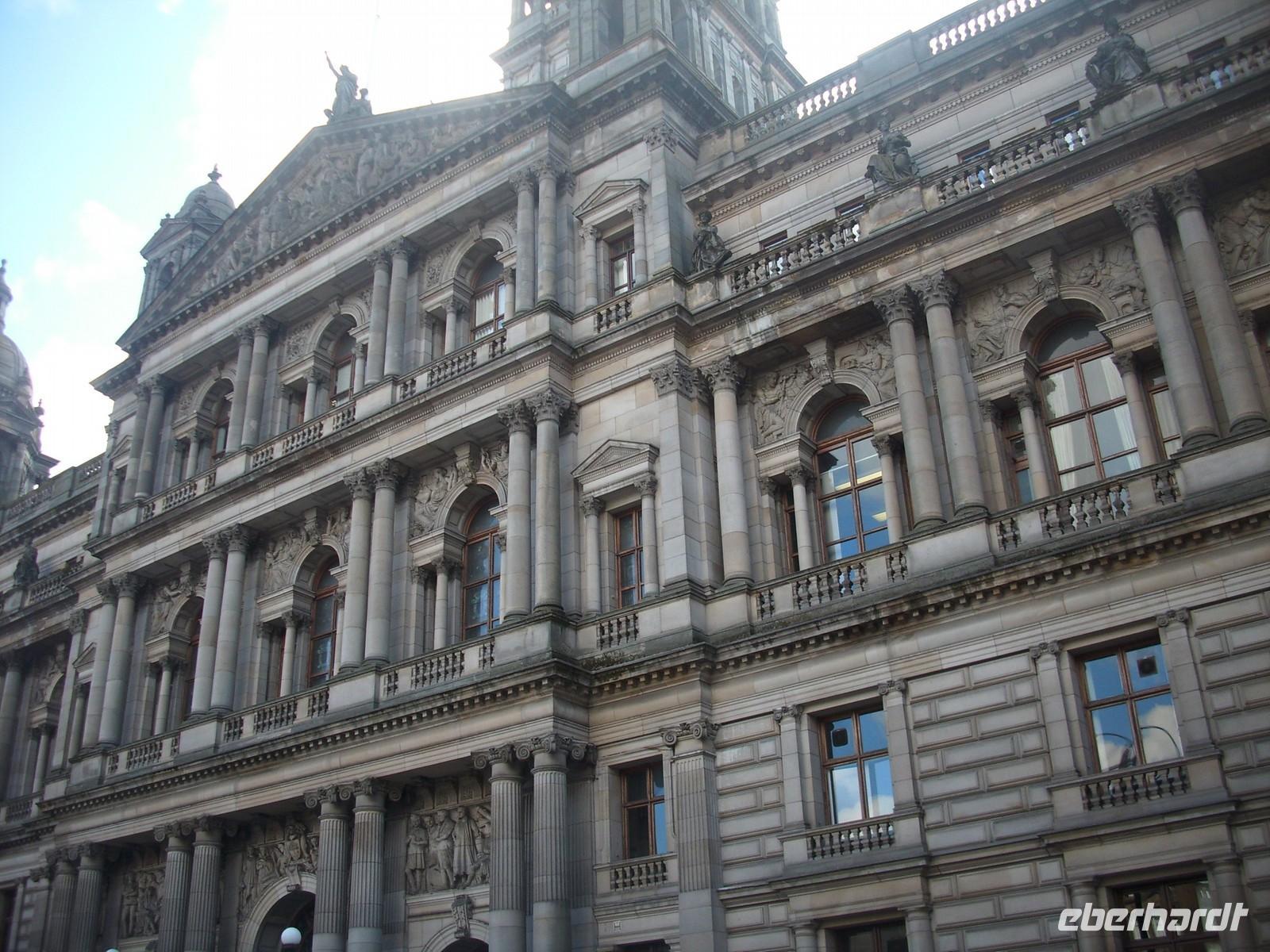 Heute sollen wir Glasgow näher kennen lernen. Wir sind seit zwei Tagen hier und haben natürlich abends die Stadt schon bisschen erkundet.Auf jeden Fall haben wir die längste Theke der Welt im Pub „Horse Shoe“ gefunden und mit anderen Gästen, die auch dem Tipp unserer Reiseleiterin gefolgt sind, dort ein Guinness getrunken. Während der heutigen Stadtrundfahrt besuchen wir den Hauptplatz von Glasgow, den Georgs Platz, das schöne Rathaus, die Kathedrale mit dem Grab vom Heiligen Mungo und den Palast des Volkes. Wir machen noch ein Gruppenfoto und verlassen dann Glasgow. Unser nächstes Ziel ist Stirling Castle, das hoch auf einem Vulkanfelsen thront. Es ist eng mit dem Leben von James V. und Maria de Guise und deren Tochter, Maria Stuart, verbunden. Vom Burgberg haben wir einen tollen Blick hinüber zum Denkmal von William Wallace - der als „Highlander“ manch einem im Gedächtnis geblieben ist und für Robert Bruce sein Leben lassen musste. Nach einer Fahrt durch die wundervollen schottischen Highlands erreichen wir unseren nächsten Übernachtungsort, Grantown- on Spey.