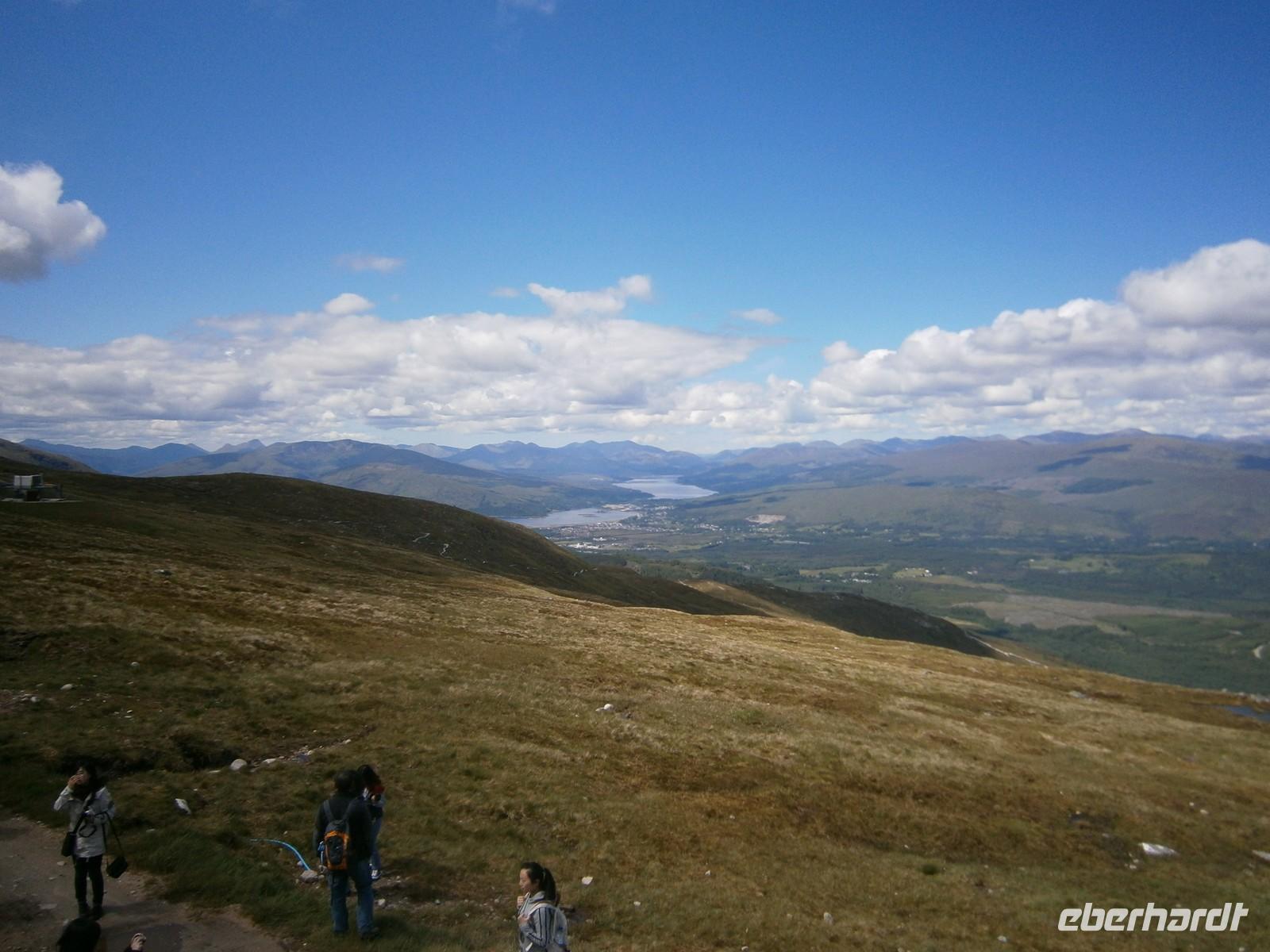 Wir stehen früh auf und stärken uns mit Porridge, Black Pudding und all den typischen Sachen, die zu einem schottischen Frühstück gehören. Leider gibt es keinen Whisky zum Porridge, das soll köstlich schmecken.Bei herrlichem Wetter fahren wir in das atemberaubende Gebiet der Trossachs entlang der „Königin der schottischen Seen“ - dem Loch Lomond. Wir sind fasziniert von der Schönheit der Natur und genießenbei schottischer Musik die wunderbare Landschaft. Durch das geschichtsträchtige „Tal der Tränen“, Glen Coe, geht es zum Ben Nevis. Wir nehmen die Gondolas und erreichen die Ben Nevis Range. Von hier haben wir einen phantastischen Blick auf Fort William und den Caledonischen Kanal. Welch eine prächtige Landschaft eröffnet sich uns bei strahlendem Sonnenschein. Gern würden wir noch hier oben verweilen, aber wir haben ein volles Programm und wollen doch alles sehen. Entlang des Loch Linnhes geht es nach Oban. Das hübsche Fähr- und Hafenstädtchen liegt im Windschatten der Insel Kerrera. Wir sehen den McCaig`s Tower hoch oben über der Stadt. Er sollte eigentlich den Bewohnern der Stadt eine Möglichkeit für Arbeit, Lohn und Brot geben. Den Bauherren ging das Geld aus und so blieb das Bauwerk unvollendet. Heute ist er ein Wahrzeichen der Stadt und man vergleicht ihn oft mit dem Collosseum in Rom. Auf dem Spaziergang durch den Hafen lassen wir uns noch ein köstliches Eis schmecken. Nun geht es durch Inverary zurück nach Glasgow. Schon wieder ist ein erlebnisreicher Tag vorüber. Wir sind froh, diese Reise gebucht zu haben. Unsere Reisegruppe ist auch ganz toll.