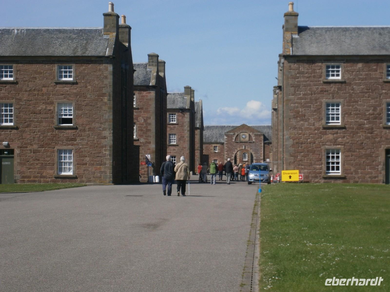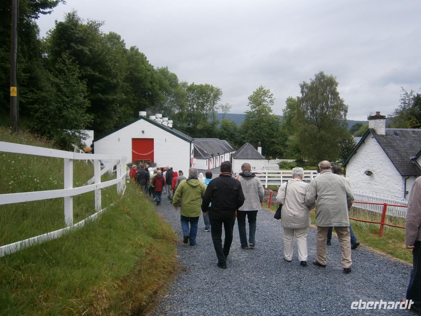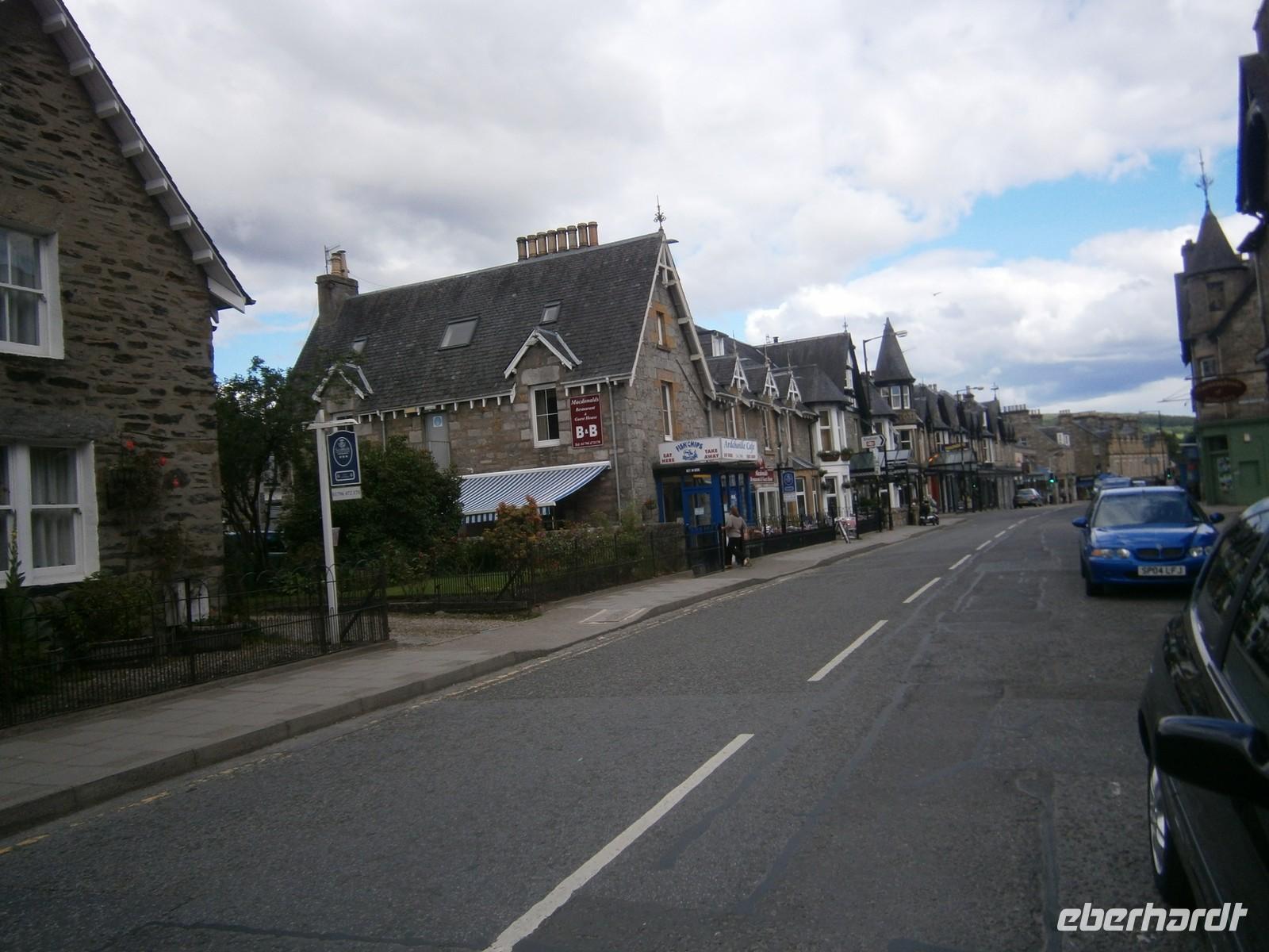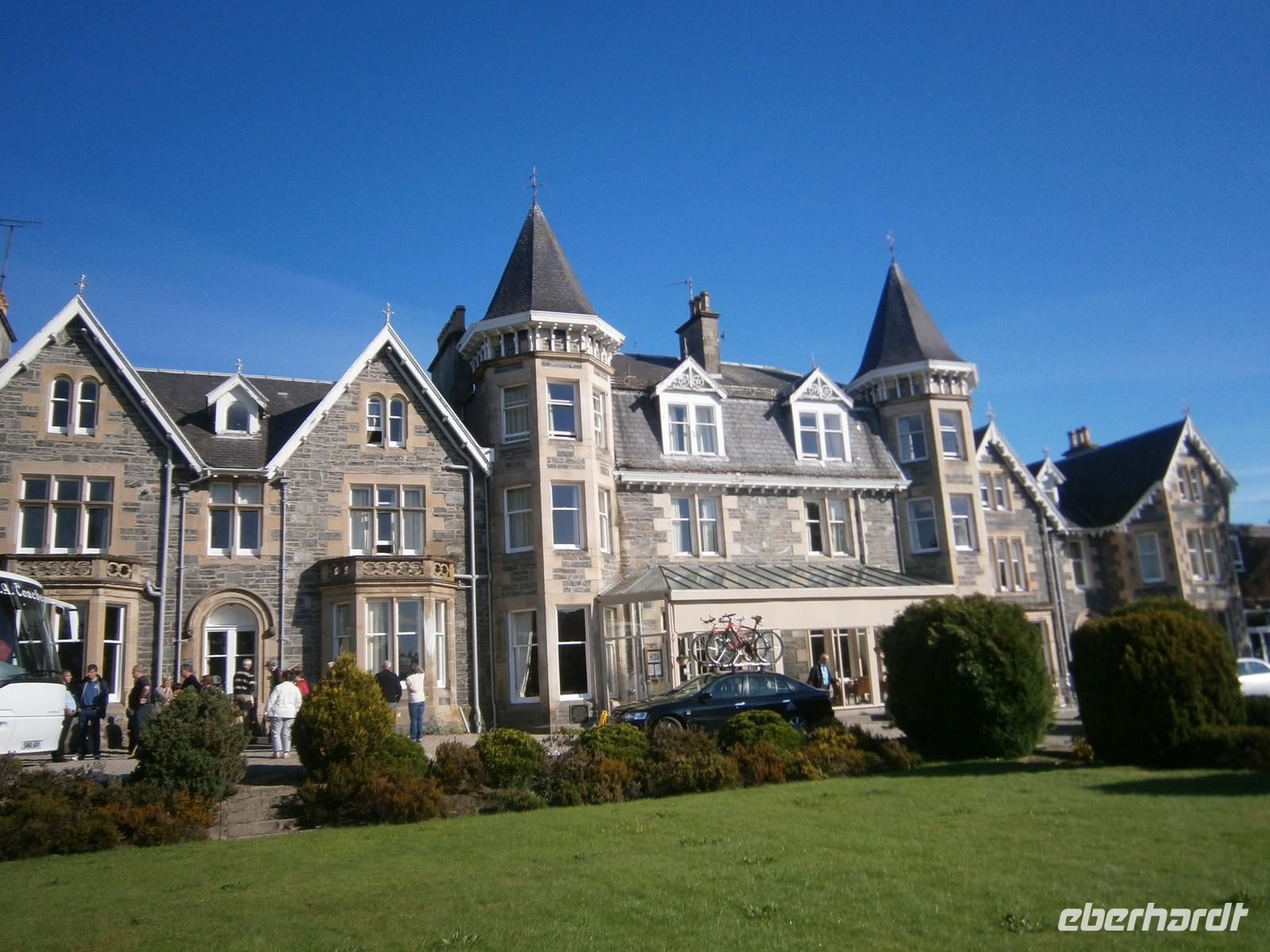 Ach, wie schrecklich, es regnet schon früh am Morgen. Das ist wirklich schade, weil wir doch durch das herrliche Gebiet der Grampian Mountains, den größten Nationalpark Schottlands, fahren wollen. Wir können die Schönheit der Landschaft erahnen. Die riesigen Flächen, bedeckt mit Heidebüschen, müssen bei Sonnenschein und blühender Heide phantastisch aussehen. Jetzt bleibt uns nur ein kleiner Eindruck davon. Trotzdem lacht uns heute noch das Glück. Das königliche Balmoral gestattet uns einen Besuch des Parks und des Schlosses. Ehrwürdig betreten wir das königliche Terrain und lernen das Leben der Königin wenigstens beim Besuch des Ballsaales etwas kennen. Der Aufenthalt in Balmoral beeindruckt uns. Am späten Nachmittag fahren wir nach Pitlochy.