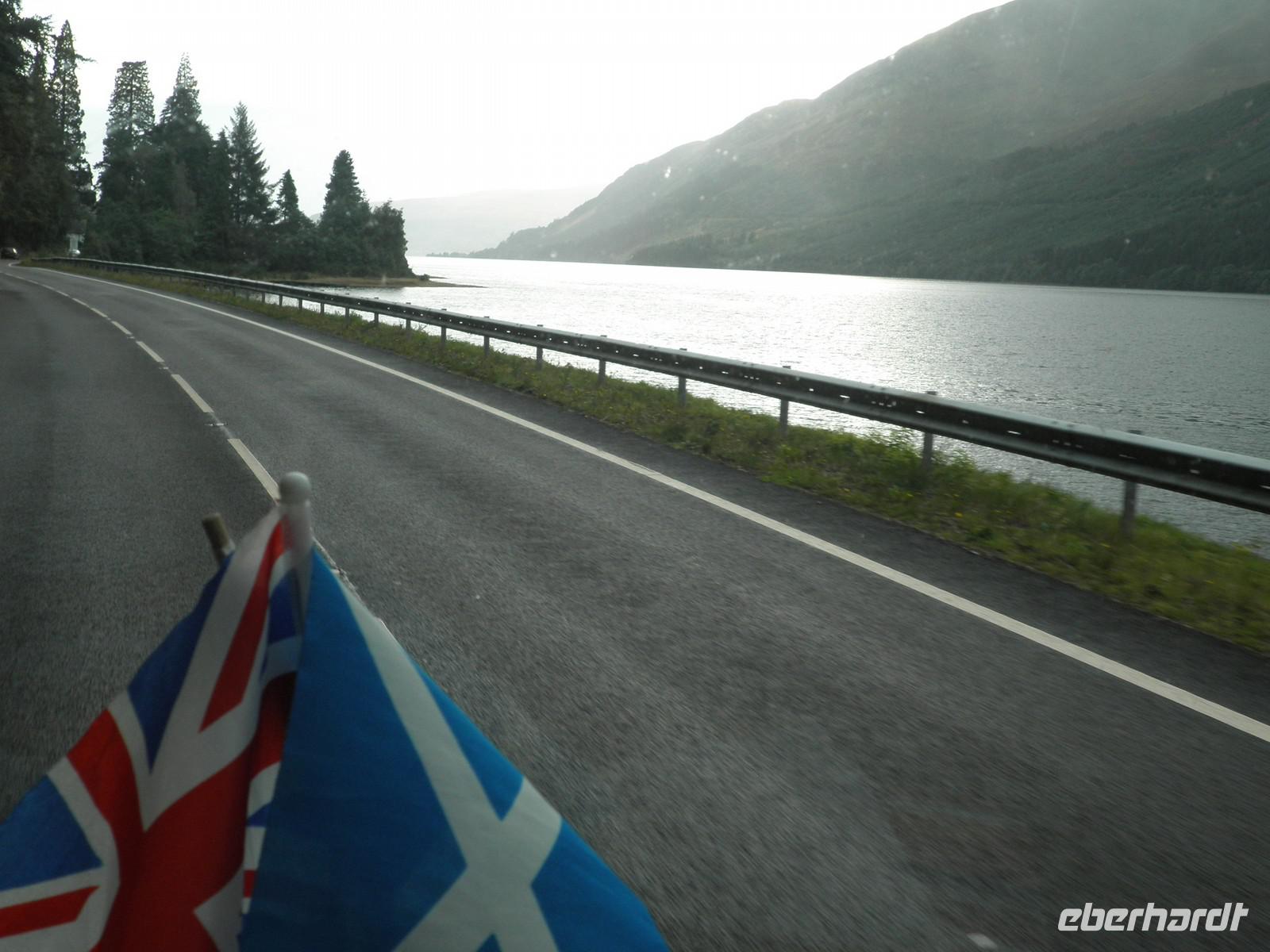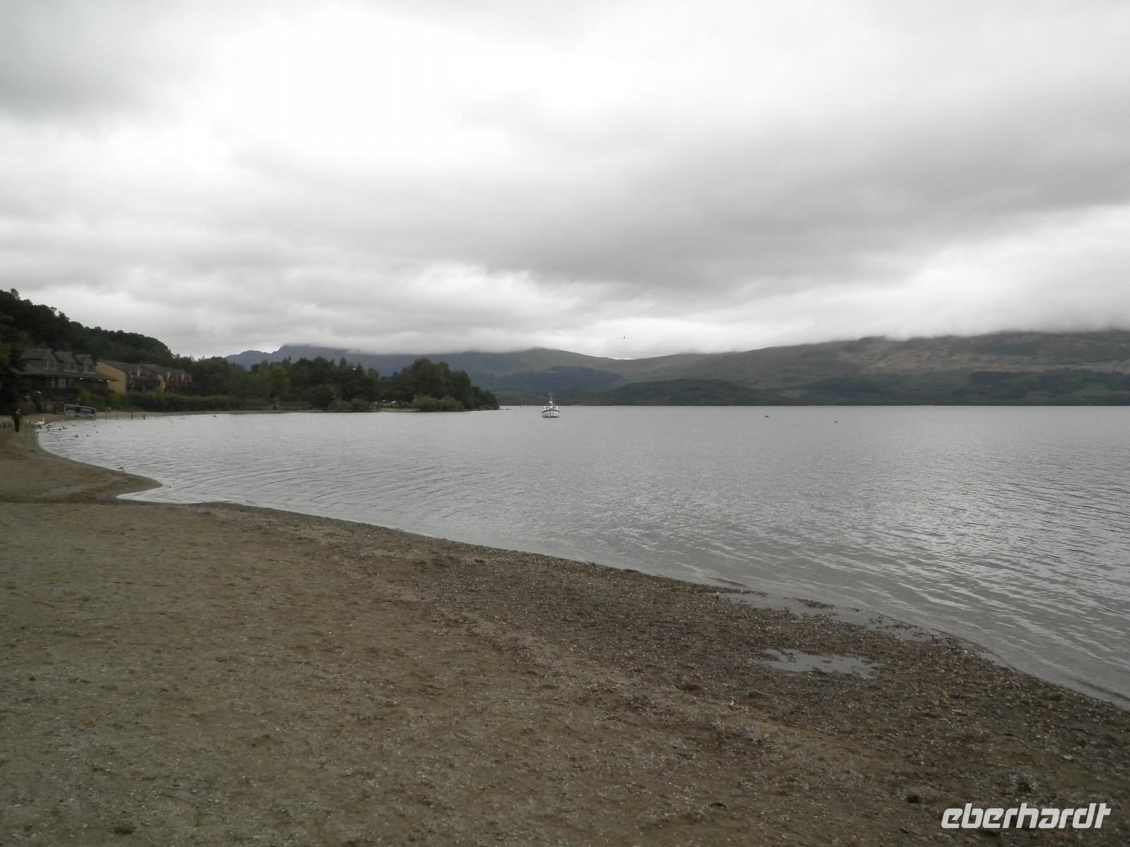 Nach kurzer Fahrt aus Glasgow heraus, bei der wir die Erskine Bridge überquerten, erreichten wir Luss, einen Ort am Loch Lomond. Wir hatten Gelegenheit, zum Ufer des Sees zu gehen und die Temperatur des Wassers zu fühlen. Es gibt ein wunderbares Lied über Loch Lomond und seine schönen Ufer, dieses Lied hörten wir im Bus, während wir am See entlang fuhren.