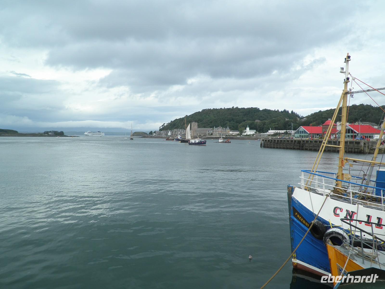 Unser nächstes Ziel an diesem Tag war das Fischer-Städtchen Oban. Hoch über der Stadt thront ein Nachbau des Römischen Kolosseums, dass ein reicher Bankier der Stadt dereinst als Arbeitsbeschaffungsmaßnahme errichten ließ, und als Denkmal für seine Familie. Im Hafen kann man wunderbar Seafood essen, also Muscheln, Krabben, Fisch und andere Meerestiere, alles ist fangfrisch. Wir schlenderten durch die Straßen und ließen uns eine Brise vom Meer um die Nase wehen.