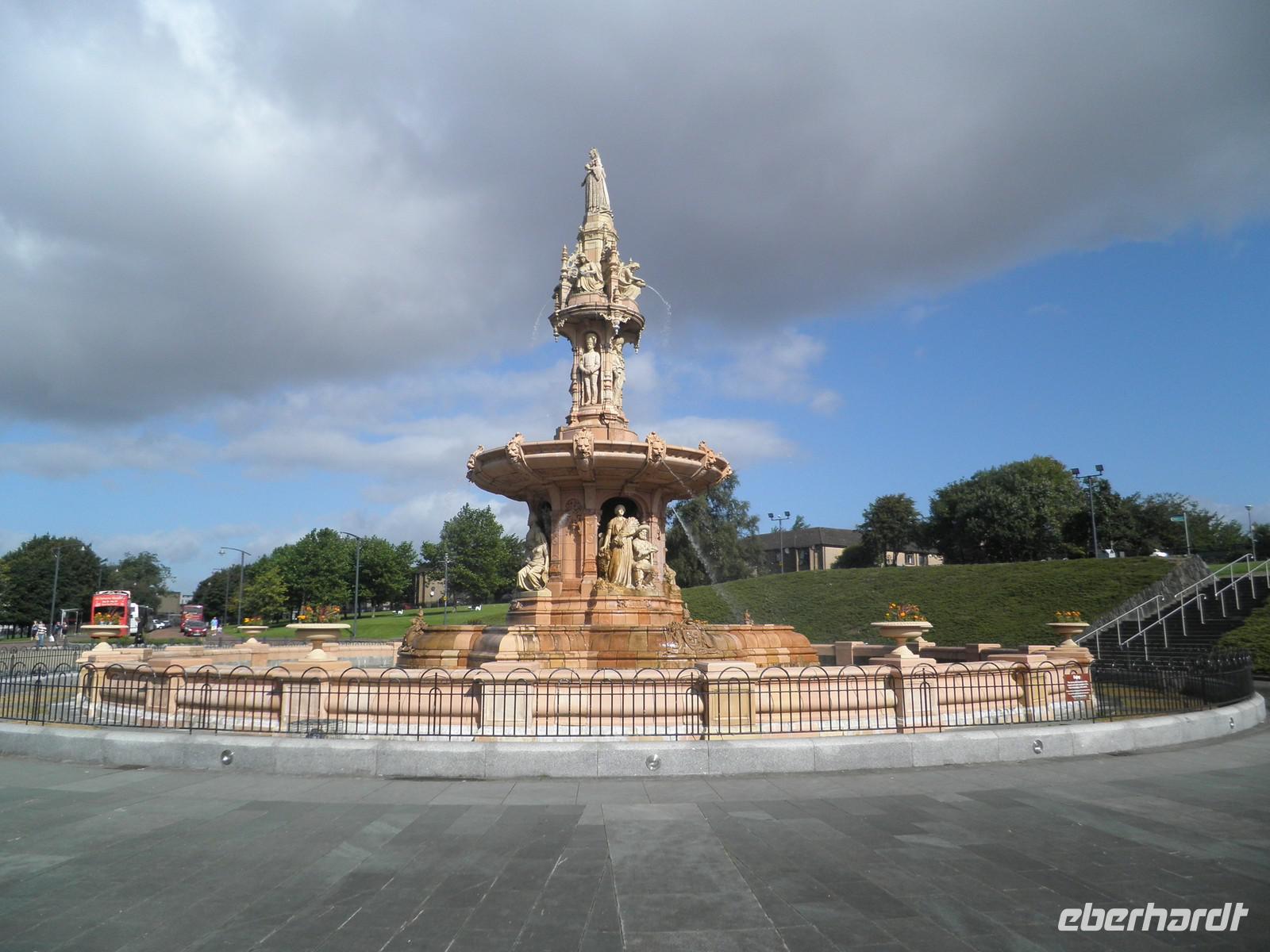 Am Morgen steigt eine junge Frau mit Namen Katja in unseren Bus. Sie ist unsere Stadtführerin in Glasgow. Katja zeigt uns auf unterhaltsame Art „ihre" Stadt, wir erfahren eine Menge, besichtigen die berühmte Kathedrale „St. Mungo" und auch den größten Terrakotta-Brunnen Europas. Nachdem wir uns von Katja verabschiedet hatten, fuhren wir zum Falkirk Wheel, dem „Verrückten Schiffshebewerk". Schiffe werden wie in einem Riesenrad von oben nach unten oder umgekehrt transportiert, um einen Höhenunterschied zweier Kanäle von ca. 35 Metern zu überwinden. Wir waren alle beeindruckt von diesem technischen Wunderwerk. Stirling Castle war unsere nächste Station. Mit deutschen Audioguides gingen wir durchs Schloss und erfuhren viel Wissenswertes über die schottischen Könige, die einst hier gelebt hatten. In einigen Räumen gab es mittelalterliche Vorführungen in traditionellen Kleidern.