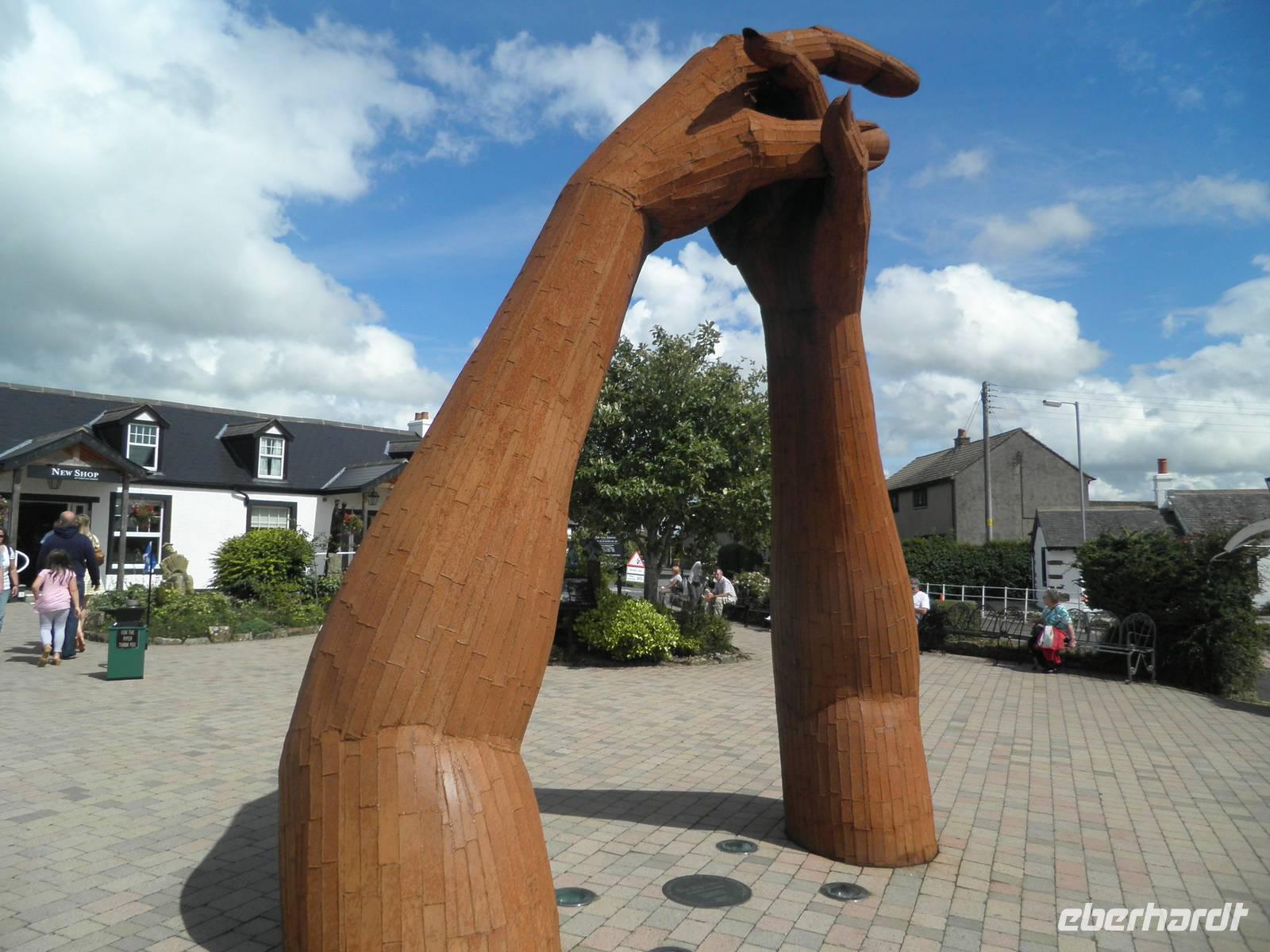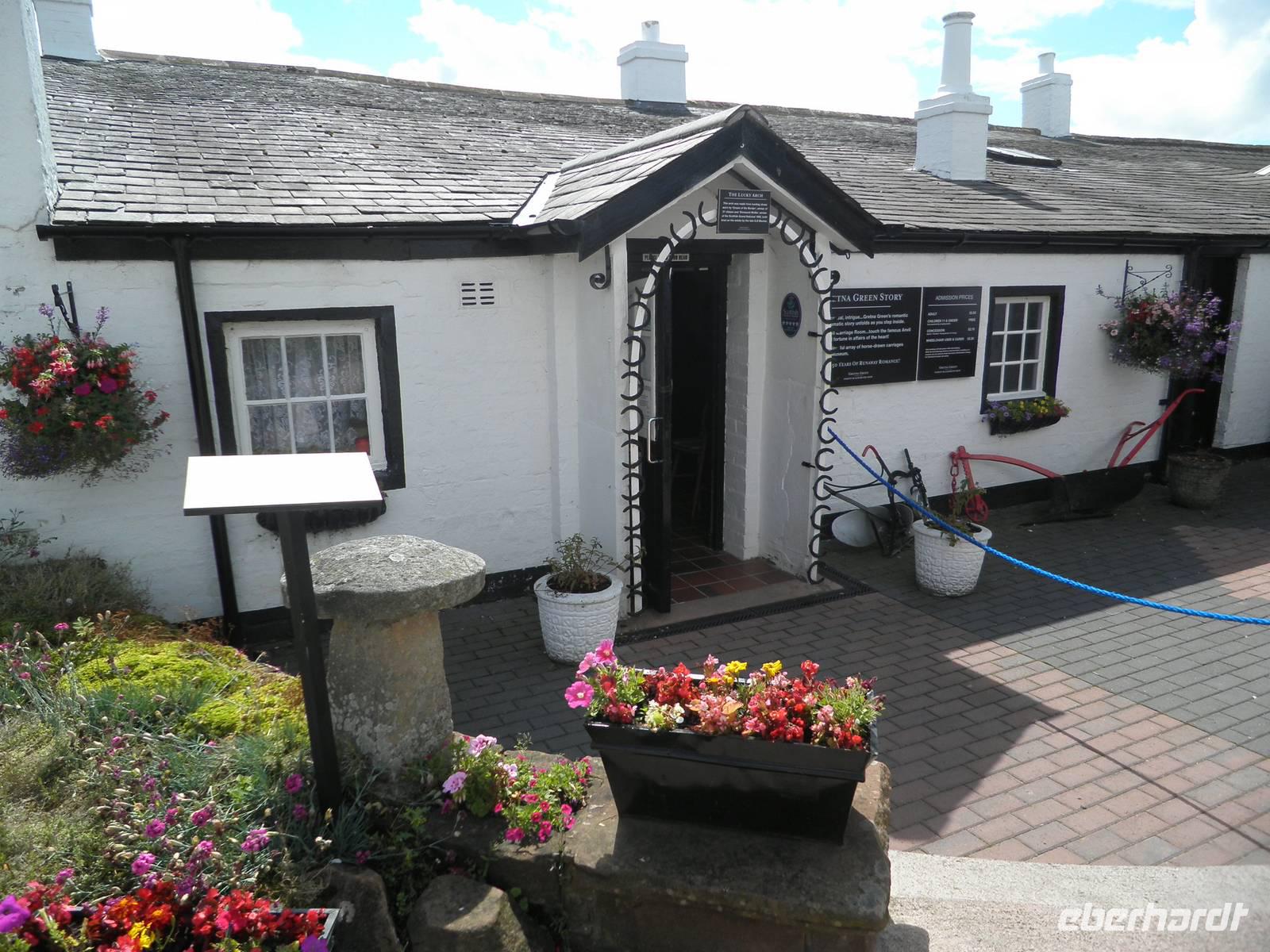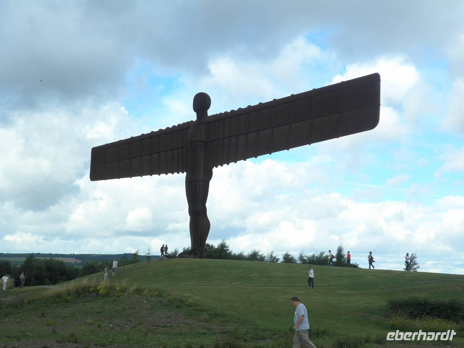 Nachdem wir die Fähre verlassen hatten, machten wir Halt an einem weithin bekannten Wahrzeichen für den Norden Englands: The Angel of the North. Wir spazierten um den stählernen Riesen mit Flügeln und machten erste Fotos. Nach einem kurzenb Aufenthalt ging es weiter in Richtung Westen. Wir fuhren entlang des römischen Hadrianswalls und bestaunten jahrtausende alte Steinmauern und den etwa 120 km Wall mit Grabenanlage. In der Nähe von Greenhead am Hadrians Wall verbrachten wir unsere Mittagspause in der Natur mit Möglichkeit zu kurzen Spaziergängen, teilweise mit Blick auf Reste des römischen Walls. Kurz danach überquerten wir die Grenze nach Schottland und fuhren nach Gretna Green, der "Heiratsschmiede über dem Amboss". Früher gaben sich dort Minderjährige das Ja-Wort, weil das in Schottland möglich war, ohne die Erlaubnis der Eltern einzuholen. Junge Leute kamen aus England, kurz hinter der schottischen Grenze heirateten sie dann. Diese Tradition wird auch heute gern fortgeführt. Während unseres Aufenthaltes in Gretna Green beobachteten wir, wie ein junges Paar mit seiner Familie in der Blacksmith-Schmiede verschwand, um sich dort das Ja-Wort zu geben..