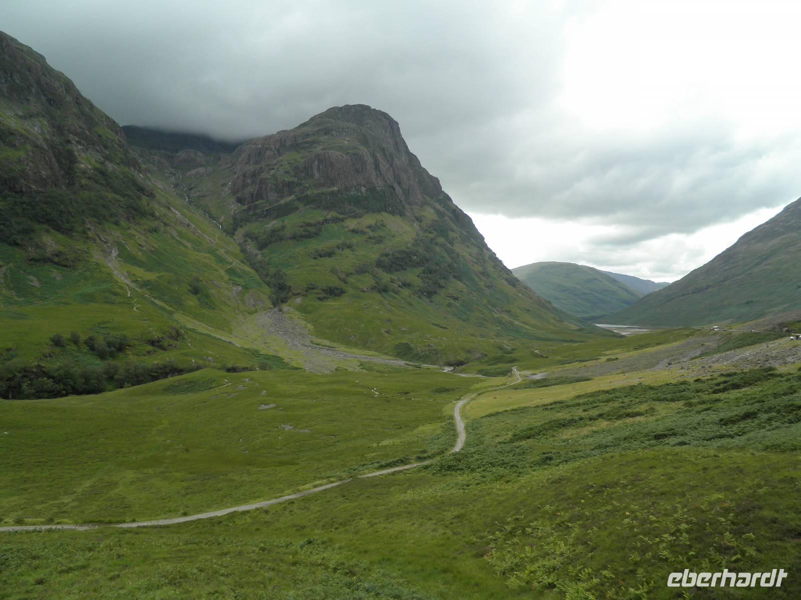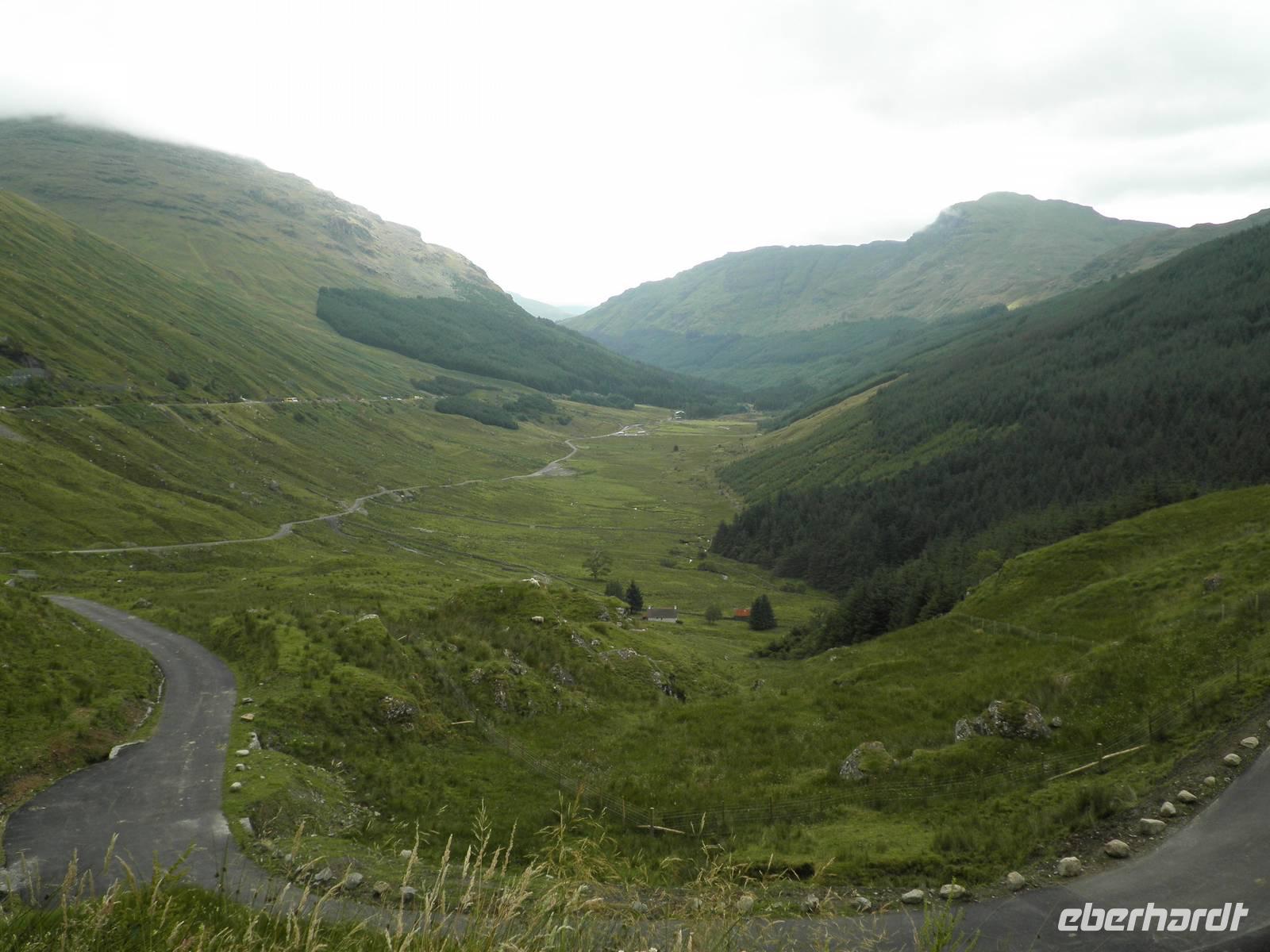 Am Gedenkstein "Rest and be thankful" legten wir eine kurze Pause ein, um den Blick hinab ins Tal zu genießen.