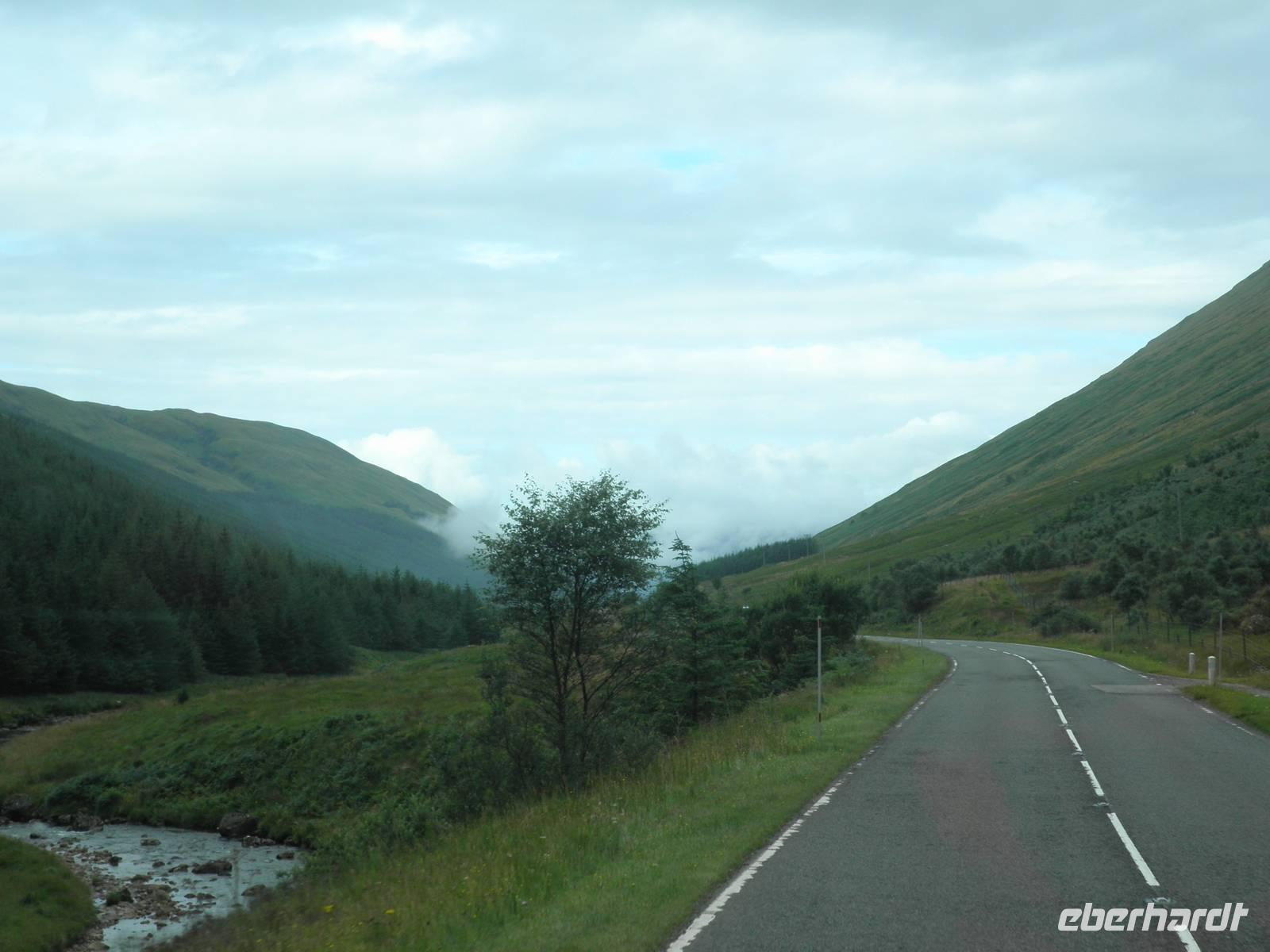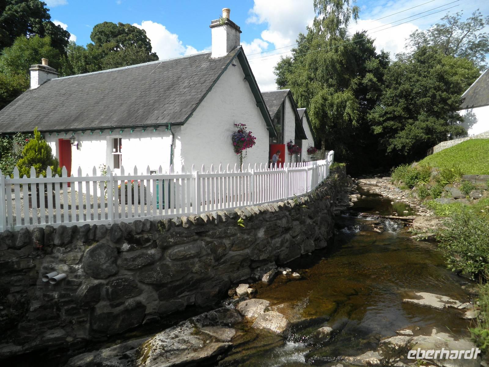 Nach kurzer Fahrt aus Glasgow heraus, bei der wir die Erskine Bridge überquerten, erreichten wir Luss, einen Ort am Loch Lomond. Wir hatten Gelegenheit, an romantischen und blumengeschmückten Häusern vorbei zum Ufer des Sees zu spazieren und die Temperatur des Wassers zu fühlen. Es gibt ein wunderbares Lied über Loch Lomond und seine schönen Ufer, dieses Lied hörten wir im Bus, während wir am See entlang fuhren.