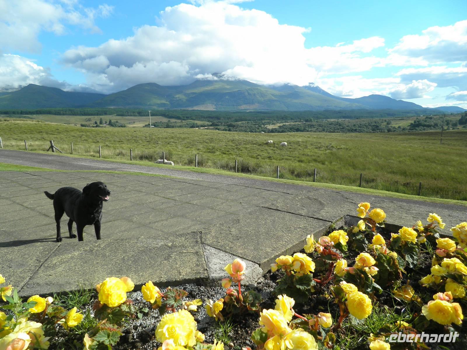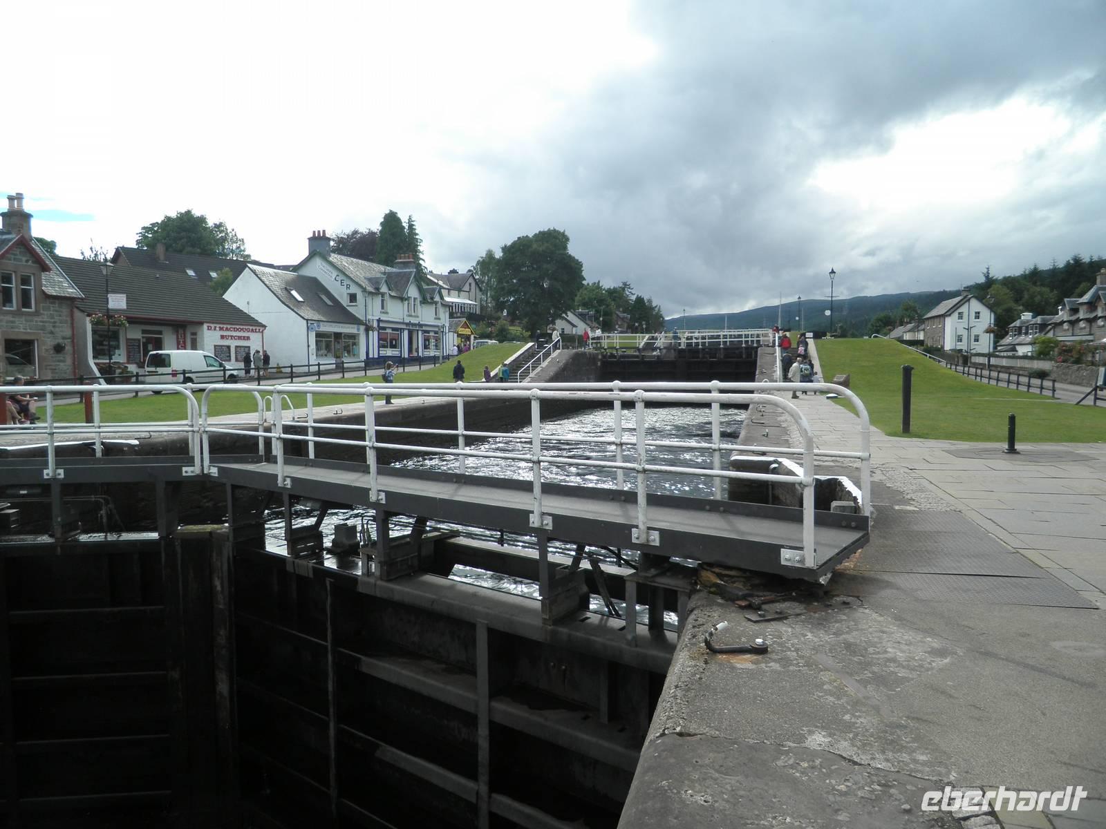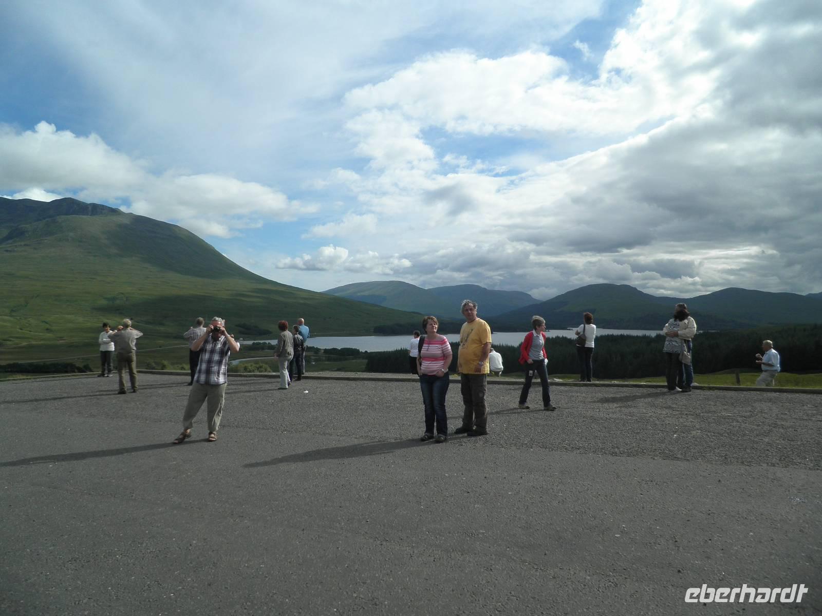 Danach ging's nach Fort Augustus an der Südspitze von Loch Ness. Hier bestaunten wir den berühmten Caledonian Canal, ein Bauwerk des legendären Baumeisters Thomas Telford. In Fort Augustus gibt es mehrere Staustufen. In Spean Bridge am Commando Memorial hielten wir an und fotografierten das Denkmal und die herrliche Landschaft mit Ben Nevis, die von dieser Anhöhe gut zu überblicken ist. Das Commando Memorial wurde errichtet zum Gedenken an die Soldaten, die hier ausgebildet worden waren und während des zweiten Weltkriegs gefallen sind. Es gibt eine weitere Gedenkstätte dort für später Gefallene, Fotos und Tafeln auch für junge Männer, die in den letzten Jahren in Afghanistan ihr Leben verloren haben.