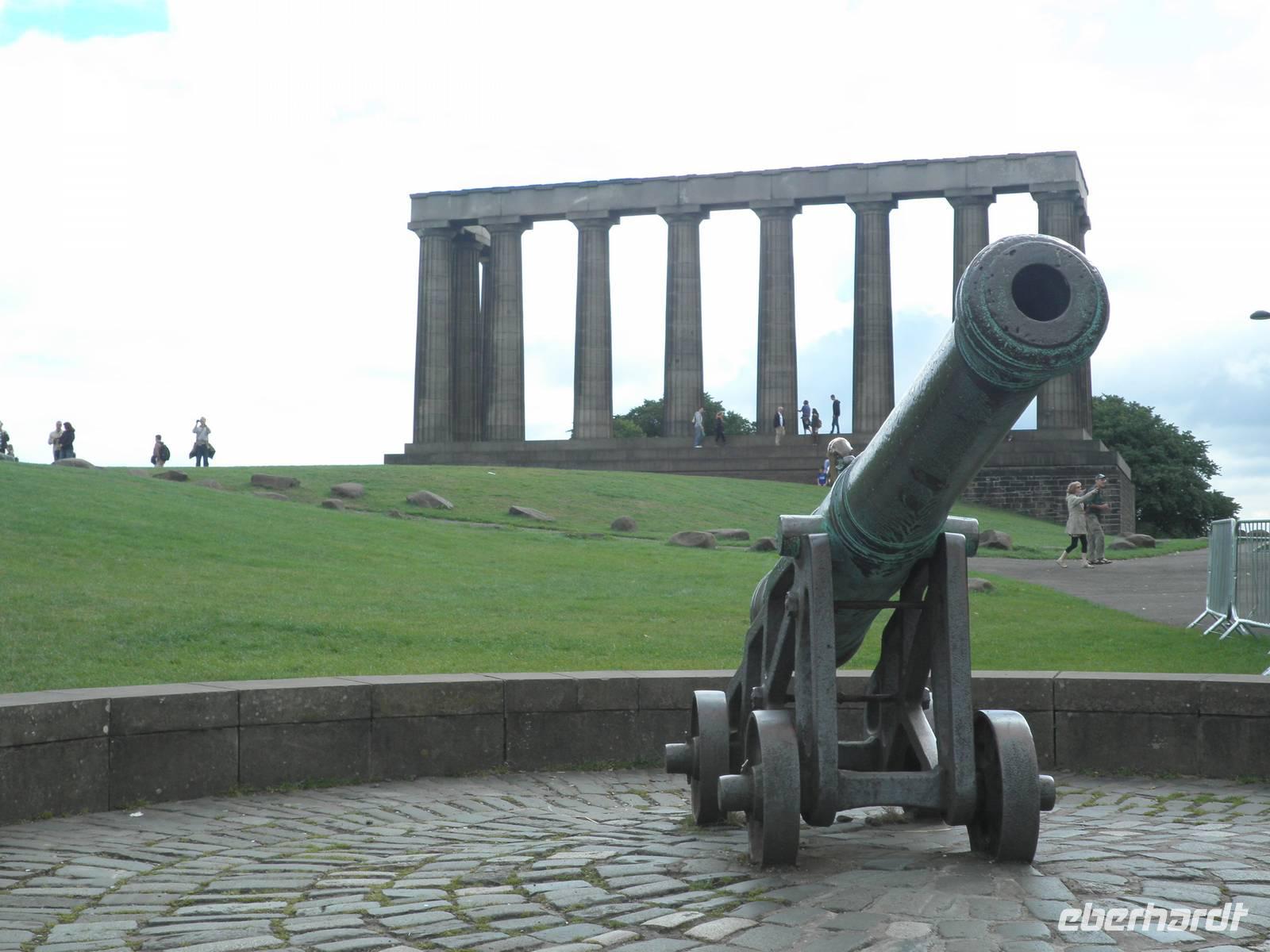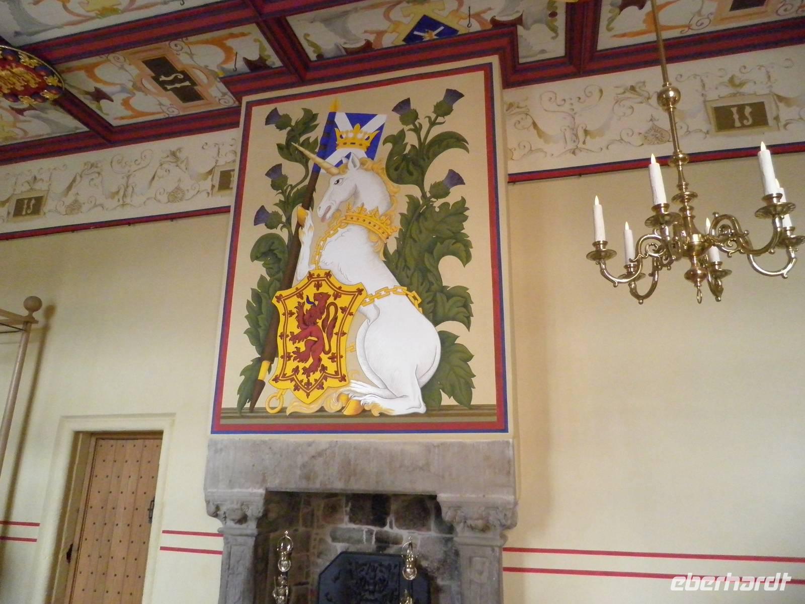 Zunächst fuhren wir nach Edinburgh hinein, ein örtlicher Stadtführer, stieg zu uns in den Bus und zeigte uns viele schöne Seiten seiner Stadt. Wir hielten am Holyrood Palace und riskierten einen Blick durchs Eisentor auf den königlichen Palast, in dem auch die Queen hin und wieder wohnt, wenn sie in Schottland ist. Am Fuße des Edinburgh Castles verließen wir gemeinsam mit Suzie unseren Bus und stiegen hinauf zur Burg. Im Inneren der historischen Festung gibt es vieles zu entdecken, z.B. die schottischen Kronjuwelen und die One-o-clock-cannon, eine Kanone, die jeden Tag pünktlich um ein Uhr mittags abgefeuert wird, damit die Edinburgher immer die richtige Zeit kennen.