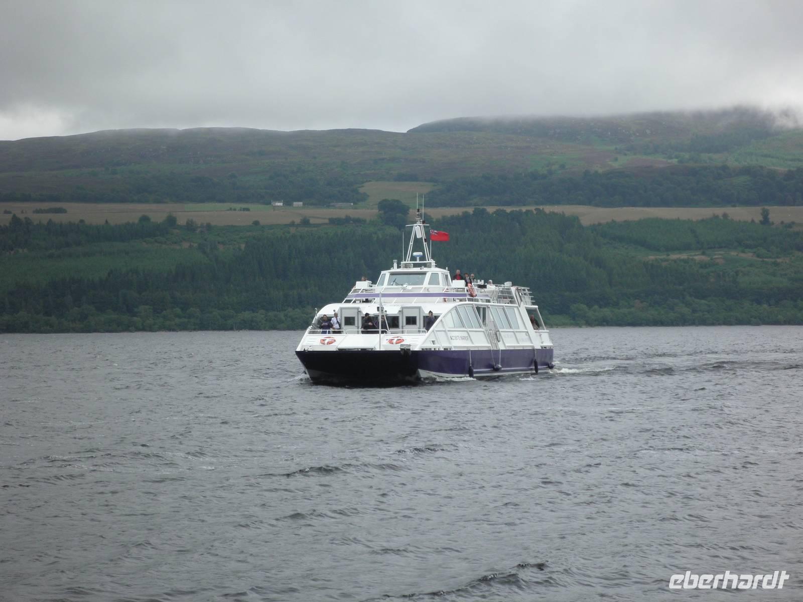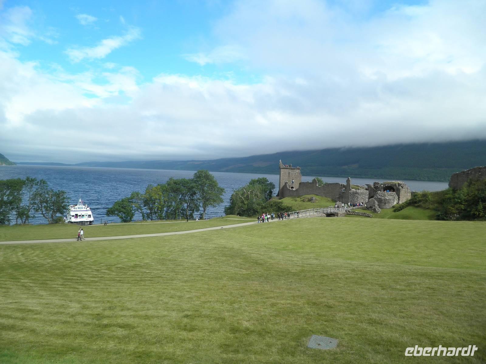 Durch Inverness führte uns nun unser Weg in Richtung Loch Ness, dem See des berühmten Monsters Nessie. Am Clansmen Hotel am Westufer des Sees bestiegen wir ein Schiff der "Jacobite Cruises" und fuhren eine halbe Stunde über den See bei recht gutem Wetter, die Sonne entdeckte uns hin und wieder. Trotz genauester Beobachtung der Wasseroberfläche hatte wohl niemand aus unserer Gruppe das Glück, Nessie tatsächlich zu entdecken. Wir legten an am Urquhart Castle, der Ruine einer alten Festung. Zwischen den Ruinen kann man umherspazieren, von hier aus genießt man einen herrlichen Blick über Loch Ness. Im Besucherzentrum wird ein Film über die Geschichte von Urquhart Castle gezeigt.