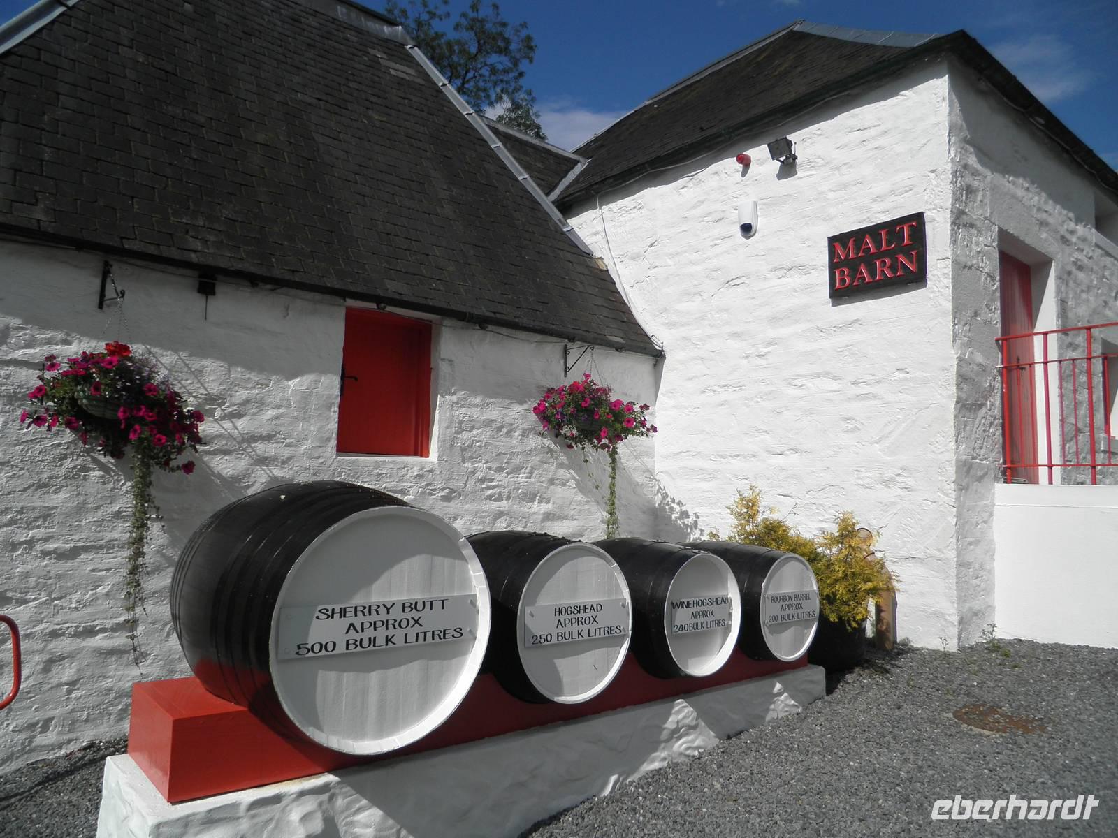 Nach der Erfahrung mit den Tieren begaben wir uns hinein in die Berge der Grampian Mountains. Nach einer beeindruckenden Rundfahrt durch dieses Gebirge mit Fotostop und einer Mittagspause in Breamer erreichten wir Edradour, die kleinste Whisky-Brennerei Schottlands, eine traditionell arbeitende Destillery. Ein deutsch sprechender Gästeführer zeigte uns den Betrieb, erklärte die Herstellung des typischen hochprozentigen Getränks, das "Lebenswasser" Schottlands. 10 Jahre alter Whisky aus dem Sherry-Fass konnte verkostet werden, ebenso ein Cremelikör, in dem dieser Whisky Verwendung findet. Am Ende des Rundgangs gab es Gelegenheit, verschiedene Whiskysorten im Shop der Brennerei zu erstehen.