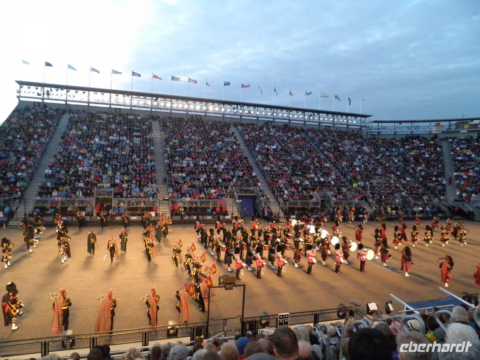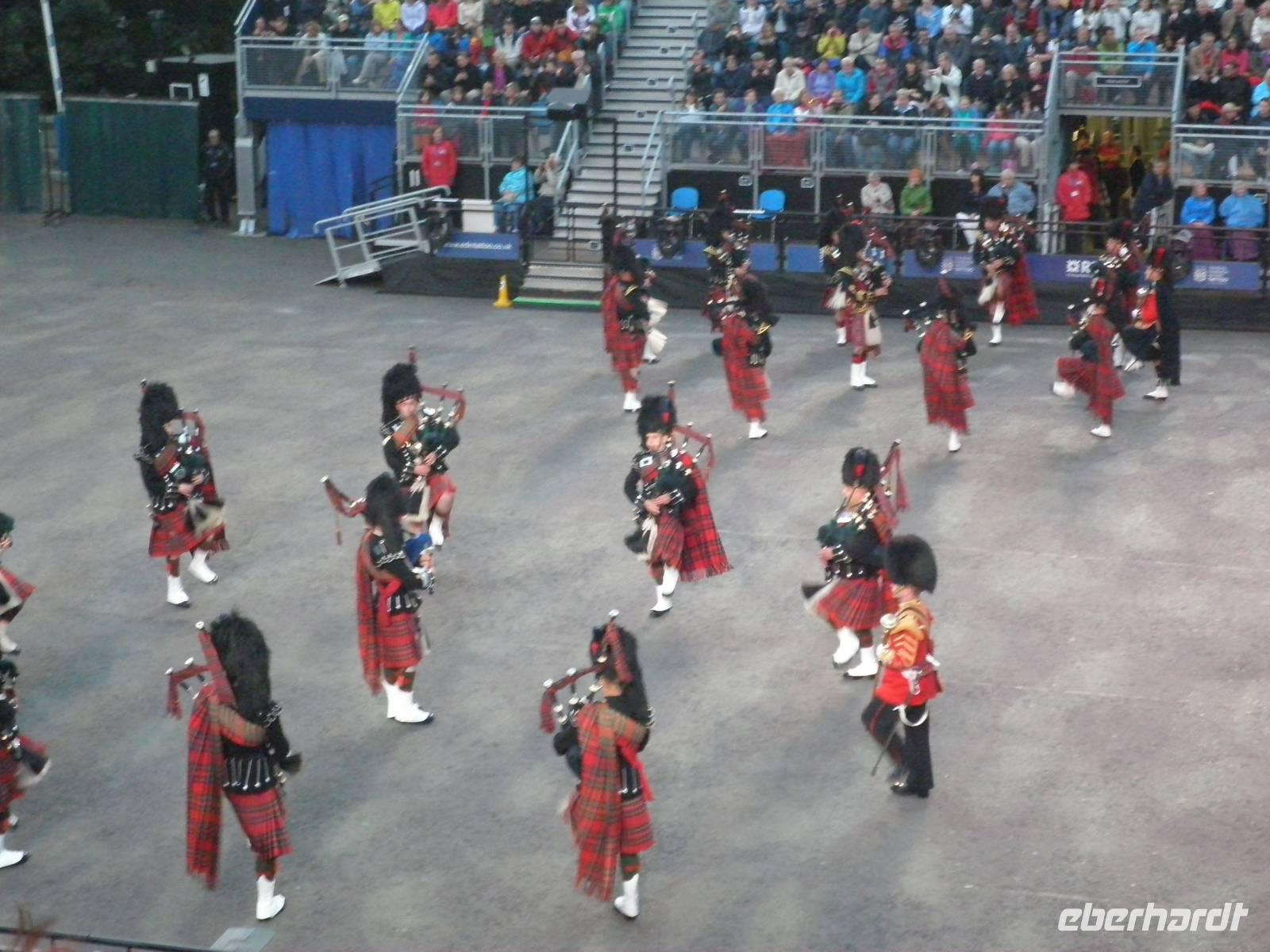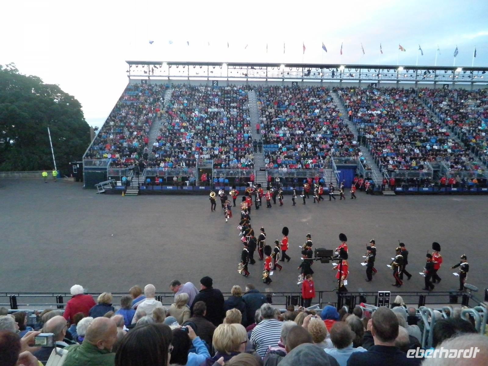 Am Nachmittag fuhren wir hinaus nach Livingston, aßen im Hotel zu Abend und beendeten damit einen eindrucksvollen und erlebnisreichen Tag in Edinburgh. Doch der Höhepunkt des Tages wartete noch auf uns: der gemeinsame Besuch des legendären Royal Military Tattoo auf der Esplanade vor dem Castle in Edinburgh. Nach dem Abendessen stiegen wir wieder in unseren Bus und fuhren erneut in die Stadt. Wir erlebten einen tollen Abend mit ergreifender Musik, tollen Kapellen und Bands und spektakulären Attraktionen. Es war eine musikalische Reise durchs das Jahr und über den Erdball. In der Nacht erreichten wir müde aber zufrieden wieder unser Hotel in Livingston.