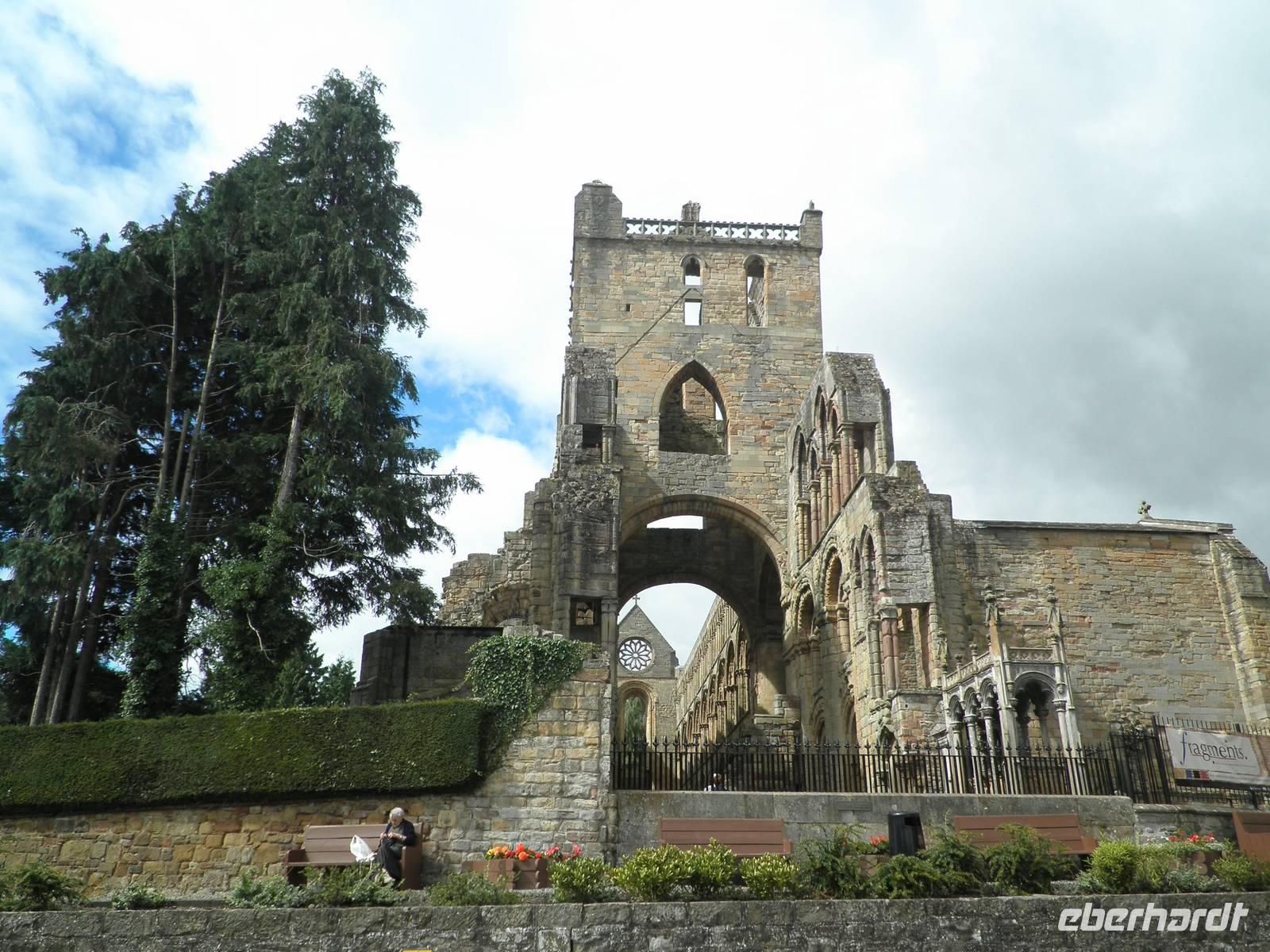 Alle anderen Gäste fuhren mit dem Bus in Richtung Süden, heute sollten wir Schottland schon wieder verlassen. Unsere erste Kaffeepause verbrachten wir an einem herrlichen Aussichtspunkt über dem Tal des Flusses Tweed, an dem auch schon Sir Walter Scott gern gerastet hat und dessen Name dieser Aussichtspunkt heute noch trägt: Scott's View. In Jedburgh besichtigten wir eine zum großen Teil zerstörte Abbey, ein ehemaliges Kloster, das früher eine wichtige Rolle in der Stadt und der Gegend gespielt hat. Heute ist es ein interessanter Ort zum Verweilen und sich das Leben der Mönche früher hier zu vorzustellen.