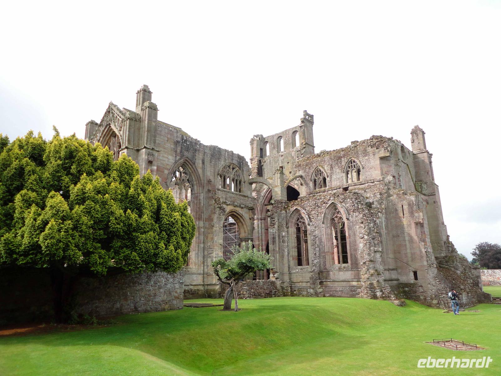 Auf die anmutigen Borders freuten wir uns, wir hatten sie ja auf der Hinreise bereits gestreift: Melrose zeigte sich uns noch von der trockenen Seite und wir bewunderten die noch als Ruine mächtige Abtei. Wir suchten im Rahmen eines Gewinnspiels die Begräbnisstelle für das Herz von Robert the Bruce und den Wasserspeier des Dudelsack spielenden Schweins. Die drei glücklichen Gewinner erhielten ein kleines Andenken. Weiter besuchten wir Scotts View mit zwar bewölktem, doch schönem Blick in das Tal des Tweed. Ein poetischer Ort, wo wir auch das Gedenken an andere liebe Menschen fanden in Form von gestifteten Bänken oder Blumensträußen an Büschen. In Jedburgh stärkten wir uns vor unserem Besichtigungsrundgang zur Abteiruine, auch heute ein besonderer Ort mit starker Ausstrahlung und eine Perle der englischen Gotik, am Ufer des Jedflusses malerisch gelegen - so malte William Turner die Szenerie zum ausgehenden 19. Jahrhundert. An der Grenze rollten wir zur schottischen Hymne die Fahne ein und rollten durch Horthumberland nach Newcastle in Richtung Fährhafen, checkten ein und nahmen mit bereits kontinentaler Zeit an Bord unser Abendessen rechtzeitig ein, es war wieder sehr gut. Die Nacht verbrachten einige Gäste durch das laute Anstürmen der Wellen an die Schiffswand und andere ungewohnte Geräusche nicht wirklich im Tiefschlaf und waren dann dankbar, es sich im Bus nach etwas verspätetem Anlanden wieder so gemütlich wie möglich zu machen. Durch mehrere Regenschauer erreichten wir die jeweiligen Heimatländer, die musikalisch von Sir Peter eingeführt wurden. So fand das Rennsteiglied nicht nur bei Thüringern Anklang. Mit nur etwas Verspätung erreichten wir alle unsere Transferfahrzeuge und lassen die schöne Reise noch in uns nachklingen.