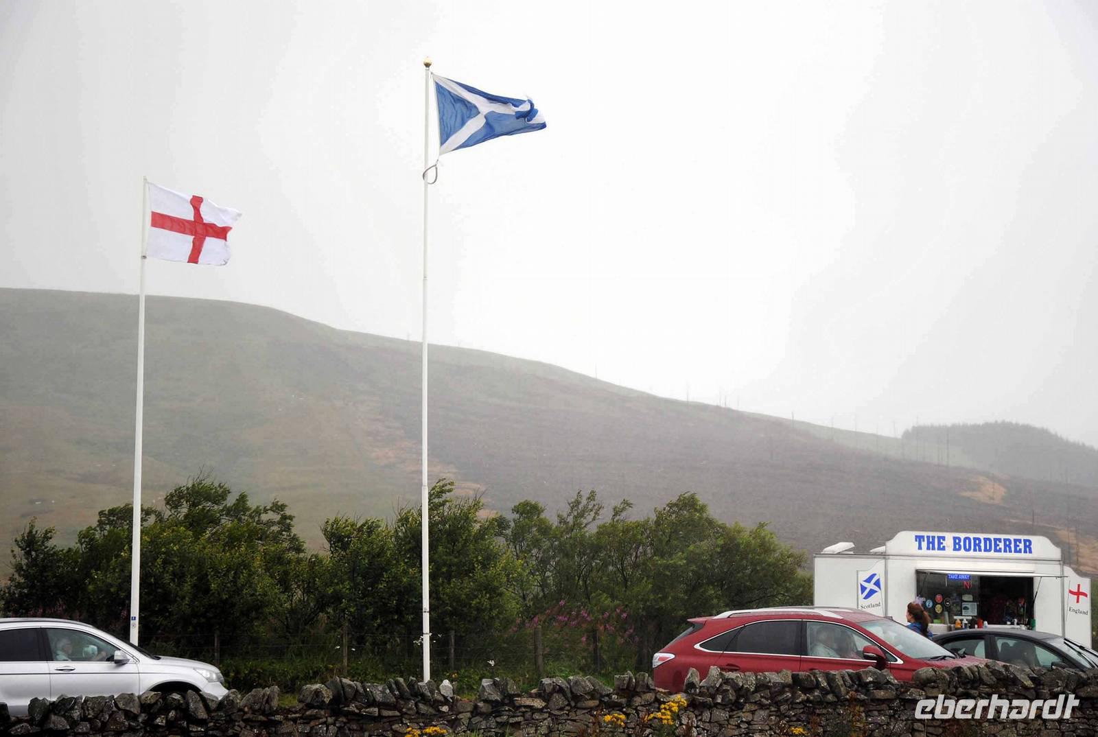 Etwas später fuhren wir über die englisch-schottische Grenze und auch hier durfte das Hissen der schottischen Fahne mit Begleitmusik in Form von Dudelsackmusik nicht fehlen.
