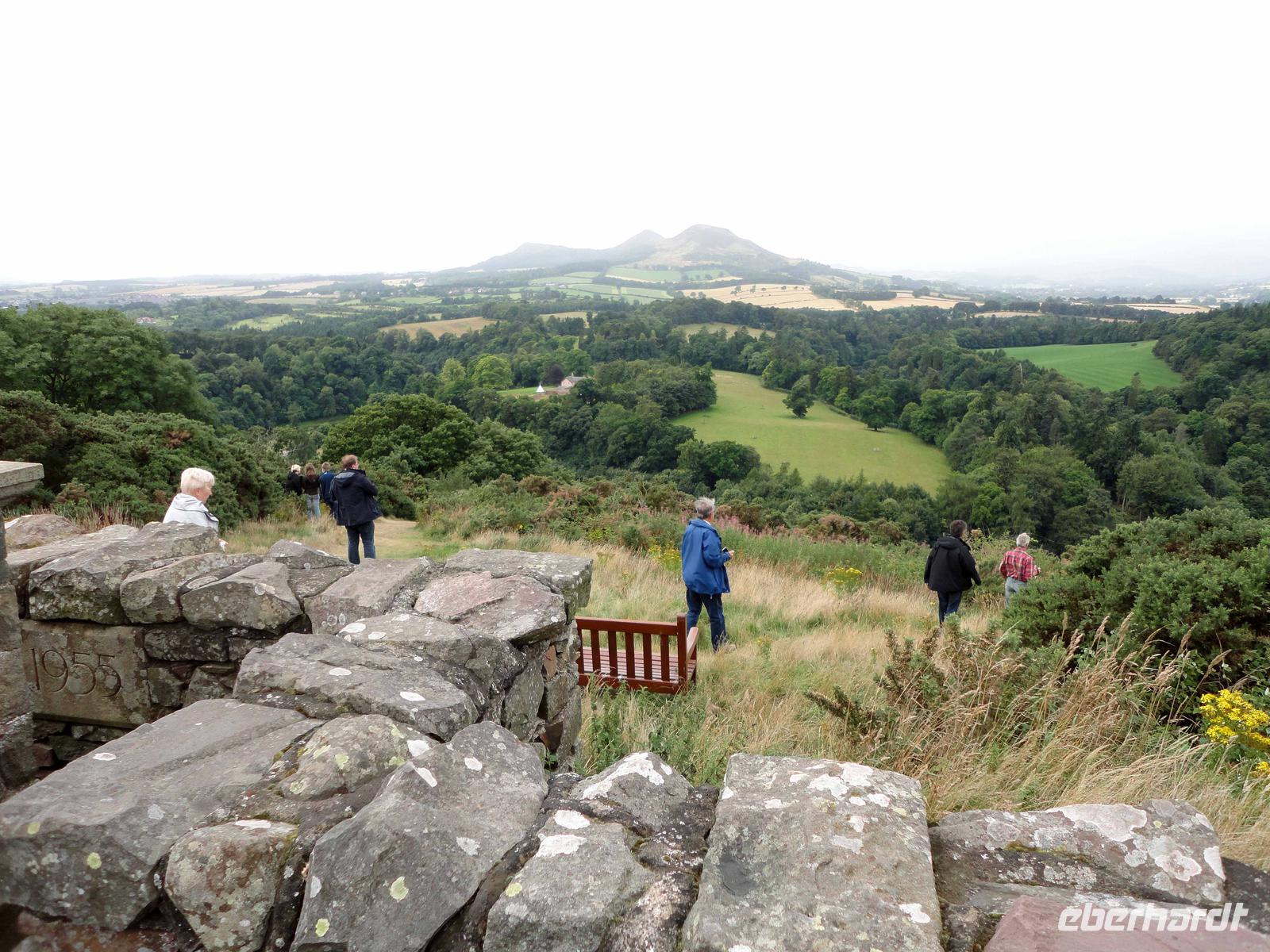Weiter besuchten wir Scotts View mit zwar bewölktem, doch schönem Blick in das Tal des Tweed. Ein poetischer Ort, wo wir auch das Gedenken an andere liebe Menschen fanden in Form von gestifteten Bänken oder Blumensträußen an Büschen.