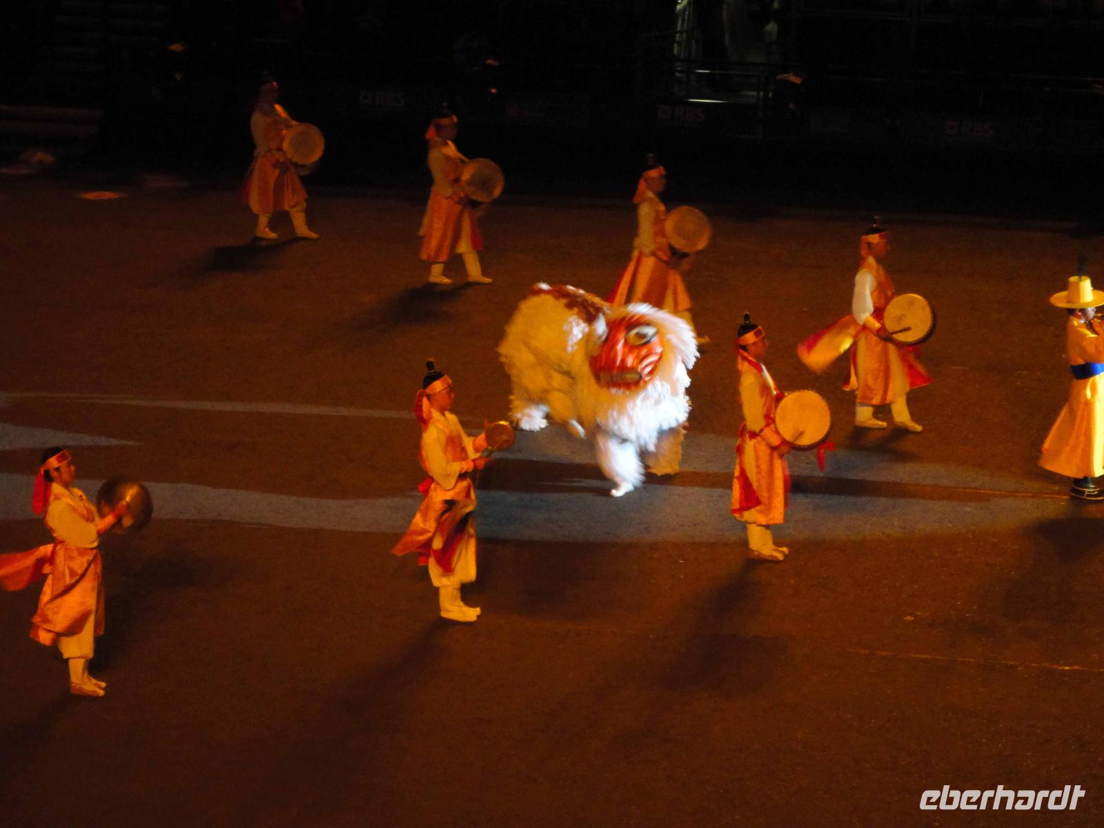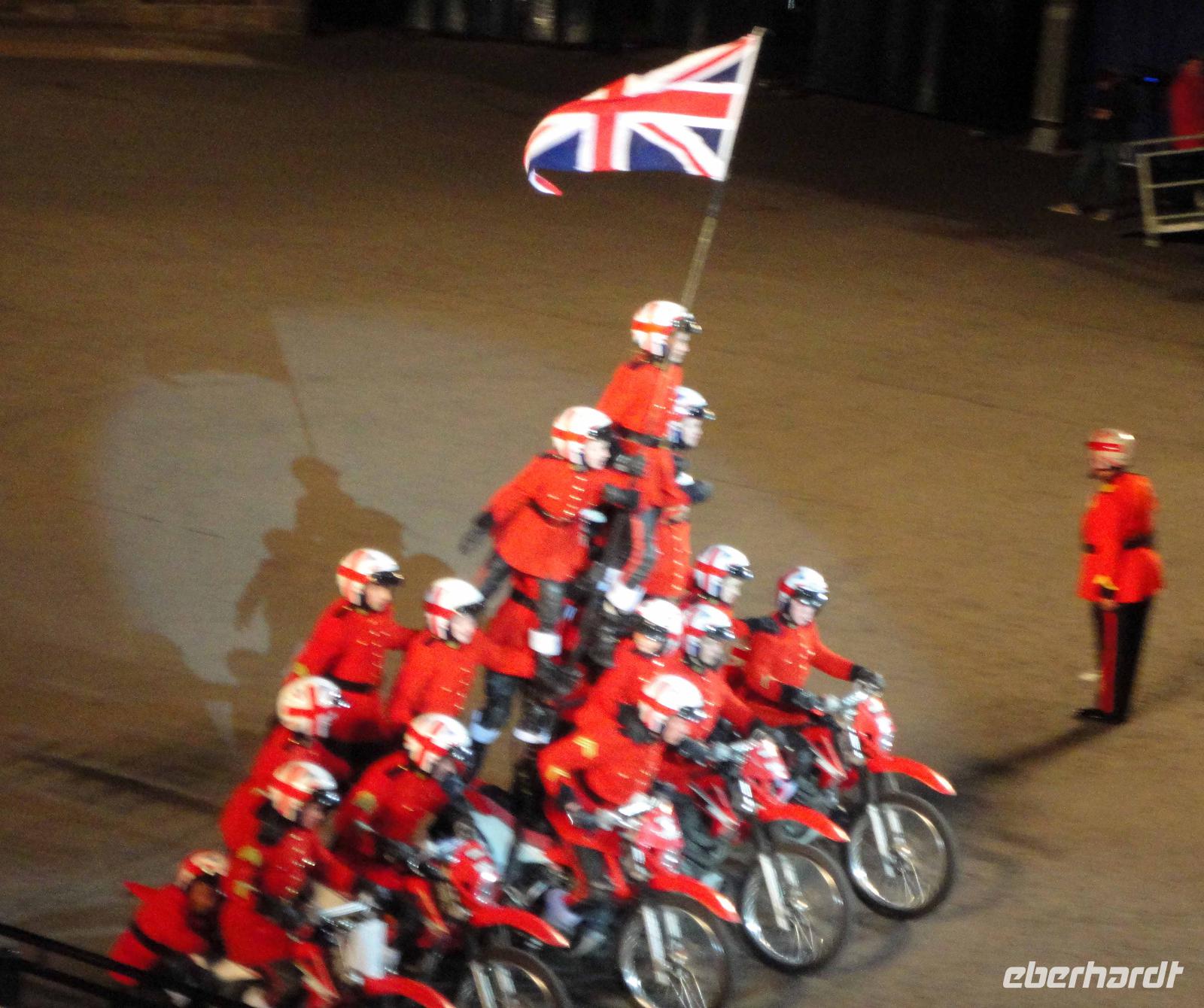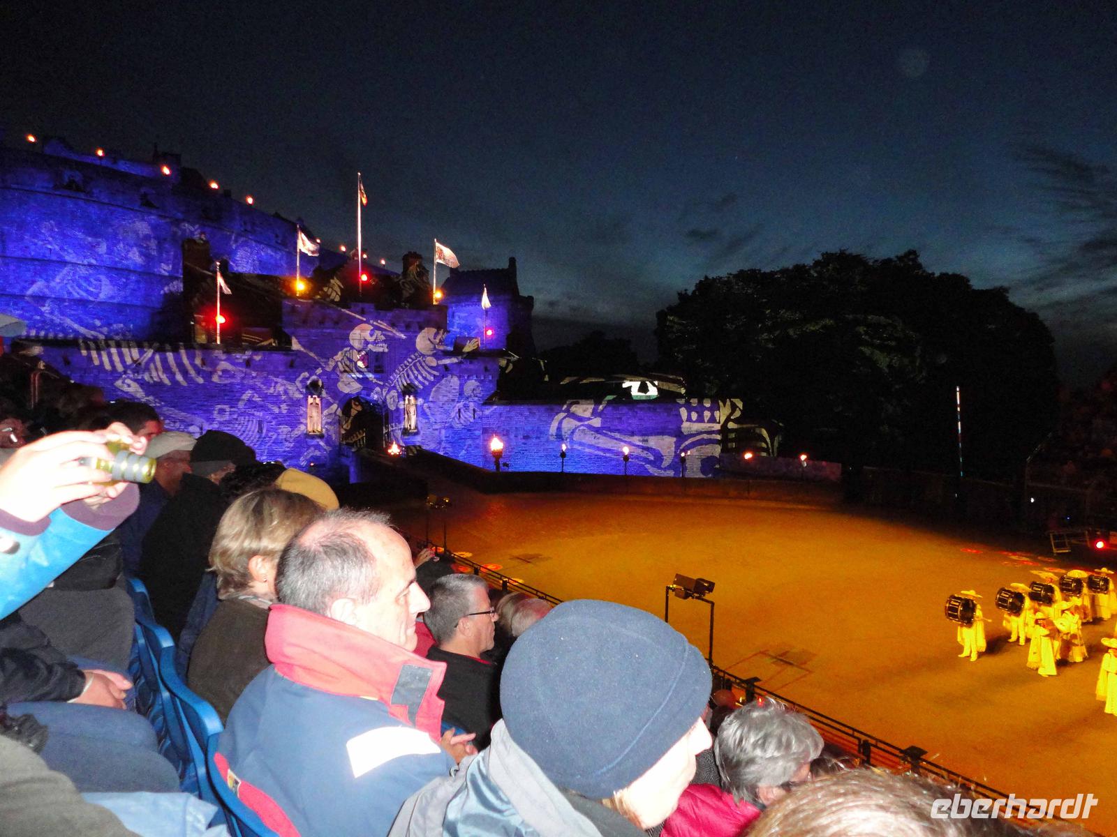 Abends fuhren wir voller Vorfreude wieder los mit musikalischer Tattoo-Einstimmung durch DJ Sir Peter. Dieser Zapfenstreich seit 1947 hat eine so hohe Qualität, dass die Queen ihn adelte als „Royal Military Tattoo". Wunderschöne stimmige und hochpräzise Inszenierungen für internationale Militärkapellen von Rang aus Schottland und von den Schotten weltweit, aus Mexiko, aus Korea usw. beeindruckten nachhaltig und sorgten für Begeisterung.