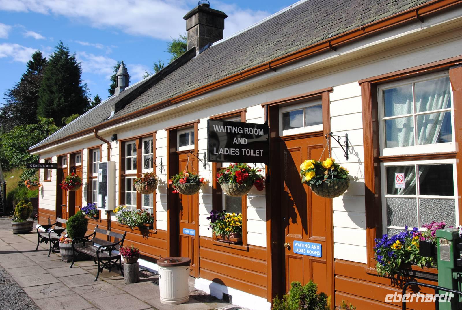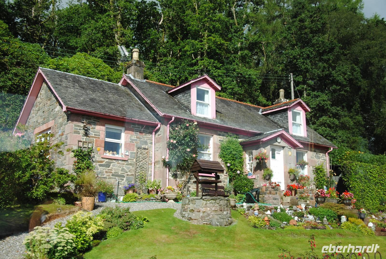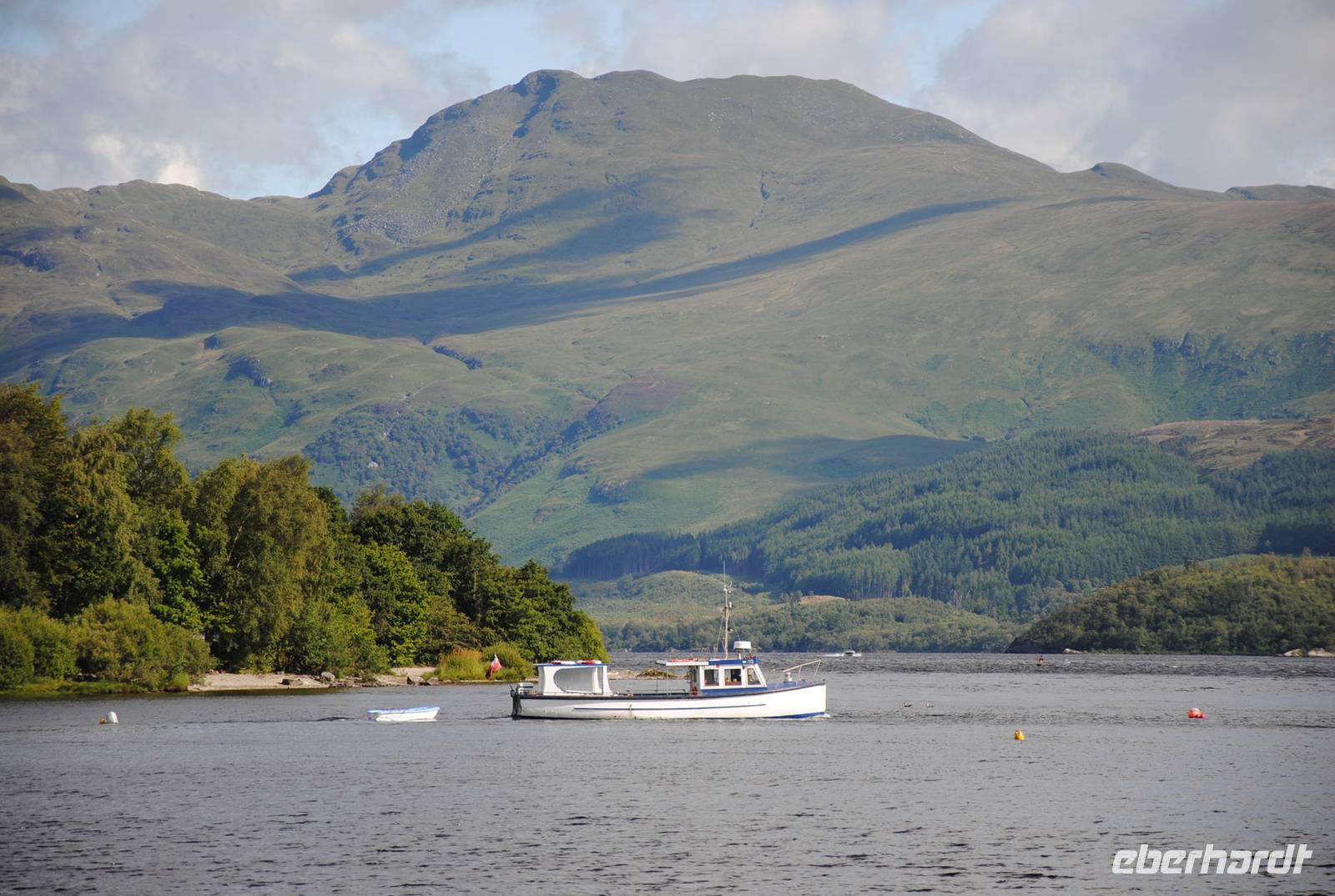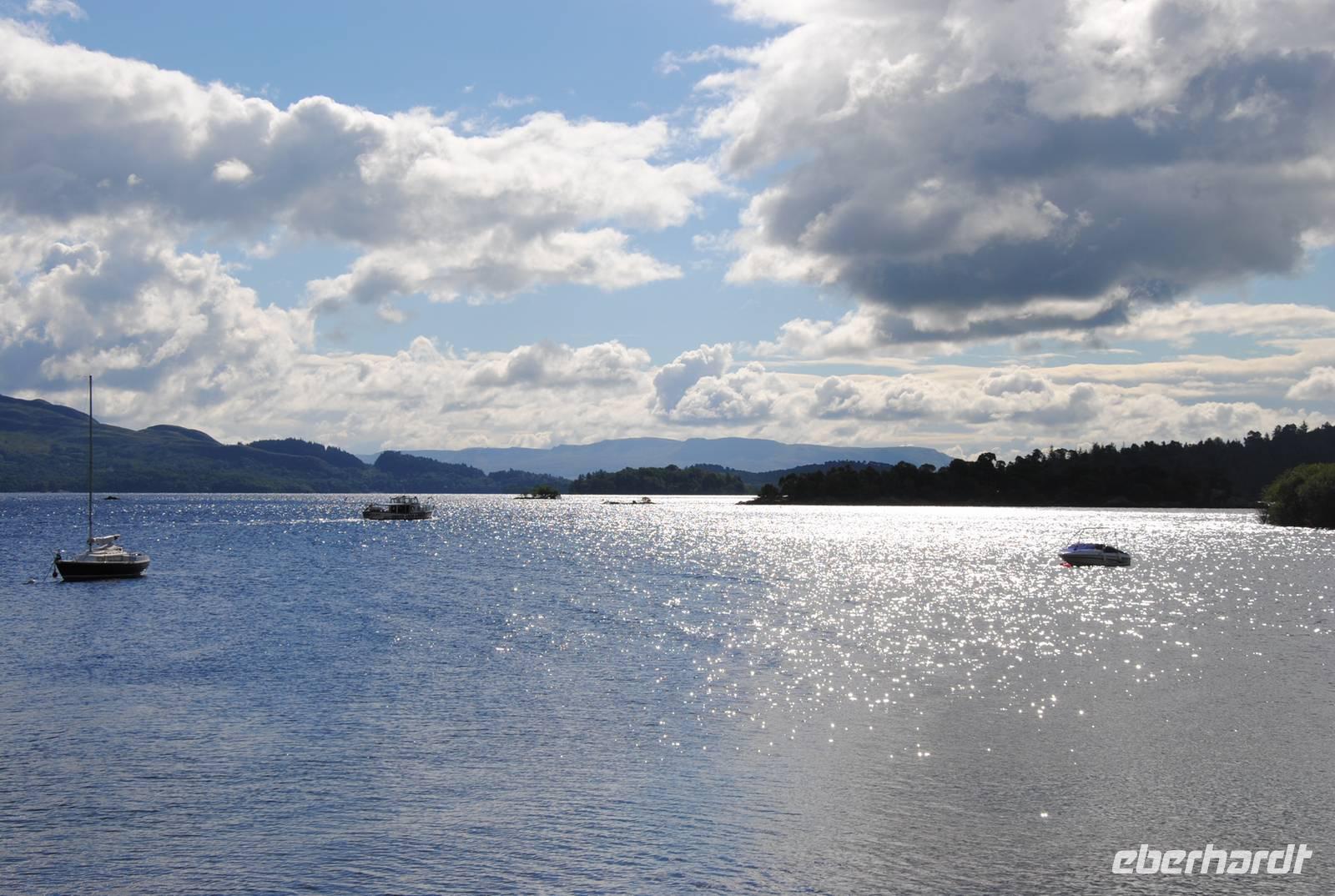 Nach einem guten und reichhaltigen Frühstück wurden schnell Informationen zur guten Wetterlage für den heutigen Tag eingeholt. Diese machten Lust auf die schönen Landschaften, geschichtsträchtigen Orten und herrlichen Küsten. In Richtung Nord-Westen verließen wir Glasgow und über die imposante Erskine-Brigde überquerten wir den Clyde und erreichten nach einigen Meilen den längsten Fluss in Schottland - den Loch Lomond. In Luss mit seinen malerischen Häusern und Gärten machten wir einen Stopp und schlenderten bis zum Hafen. Schön spiegelte sich das Wasser im Sonnenlicht und die Ausflugsboote schipperten über den See. In der Ferne konnte man das mächtige Bergmassiv des Ben Lomond erkennen.