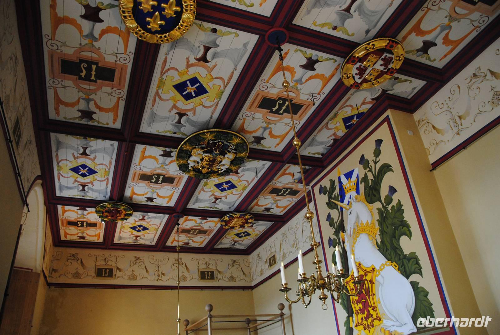 Wir fanden eine Gruppe von Tänzerinnen und Dudelsackspielern im Vorhof und gaben begeistert Beifall. Im prächtig restaurierten Königshof James V. gaben uns Zimmermädchen und Hofstaat die Ehre ihrer Gesellschaft und Gespräche. Dann schlenderten wir durch die königlichen Gemächer, durch die Küche und die große Halle, in der einst die Taufe von Marias Enkel gefeiert wurde. Nebenan in der Kapelle wurde sie zur schottischen Königin gekrönt, doch ihren Enkel hat sie nicht mehr erleben können.