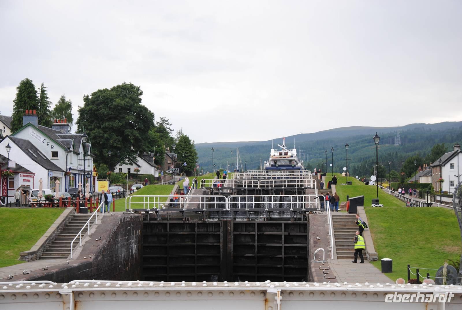 In Fort Augustus besichtigten wir die fünfstufige Schleusenanlage von Thomas Telford, dem genialen Ingenieur. Zuvor hatten georgianische Soldaten auch hier viele Brücken und Straßenkilometer bauen müssen.