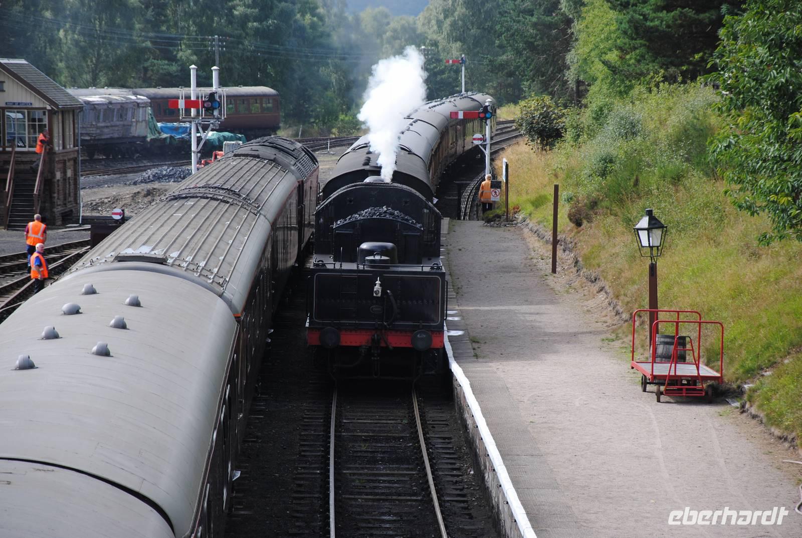 Fast erreichten wir Fort Williams und damit schlossen wir den Kreis (dort hatten wir uns schon von der anderen Seite genähert während der Fahrt nach Oban), als wir dann zum Memorial (in Gedenken an Elitetruppen für den zweiten Weltkrieg, die hier ausgebildet wurden) bei Spean Bridge abbogen und den Ben Nevis wolkenverschleiert vorfanden.