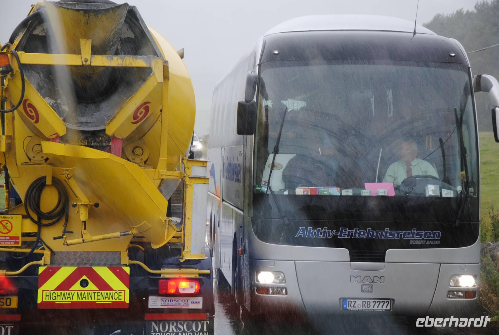 Und nun war es Zeit, sich auf den Rückweg nach Glasgow zu machen. An einer Baustelle mit „menschlichen Ampelanlagen" wurden wir sogar eskortiert.