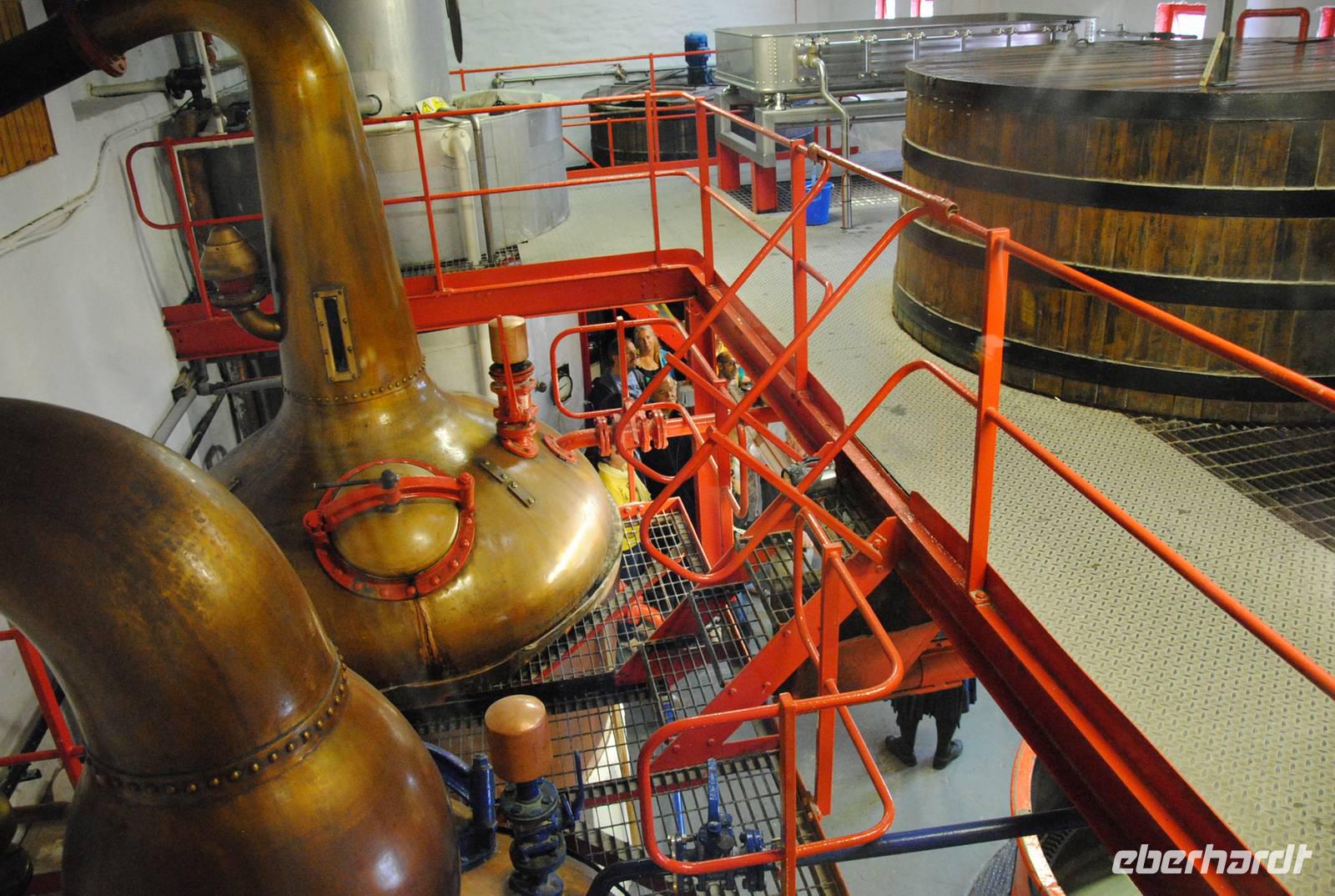 Wir hatten ein wunderschönes Erlebnis und so ging es den ganzen Tag weiter: die herrliche Highlandstrecke zum Corgarff Castle mit Fotostopps, das Castle selbst mit Wachräumen, Whiskydestille und tollem Blick, unser Mittagessen inmitten dieser einzigartigen Natur des Nationalparkes, dann die Weiterfahrt nach Braemar entlang des Dee durch die lichte hügelige königliche Landschaft (in Balmoral verbrachten die Royals gerade ihren Urlaub), Stopp für Haggis und mehr in Braemar und weiter Richtung Pitlochry nach Edradour zum Besuch der Destillery. Begrüßung mit Film und zwei guten Tropfen, Rundgang im Regen und dann Abfahrt Richtung Edinburgh über die Firth of Forth Bridge, die wir von Queensferry aus nochmals fotografierten.