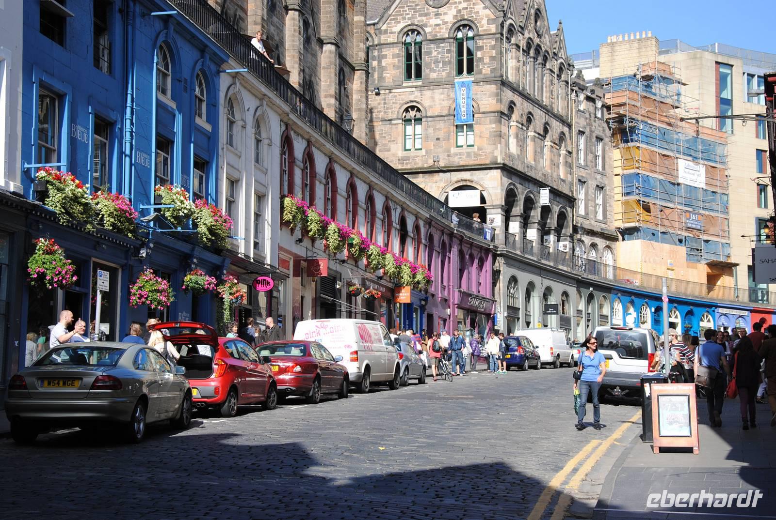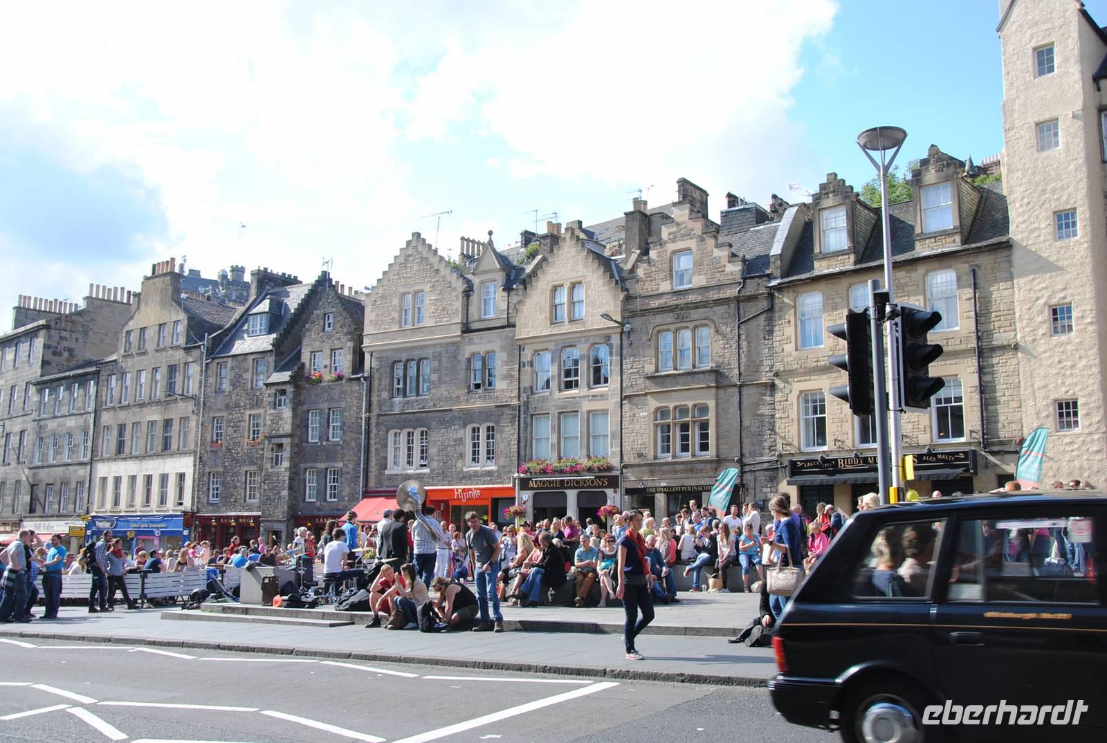 Wir starteten 9 Uhr (damit unserem Fahrer genügend Ruhezeit blieb) und waren pünktlich 9.30 Uhr am vereinbarten Charlotte Square in der Neustadt, auch dort wurde heftig gebaut - wegen der Festival-Veranstaltungen und woanders auch für das neue Straßenbahnnetz. Andrew zeigte uns die neue Stadt, wo auch Stevenson lebte und schrieb und dann den alten Hafen in Leith mit dem königlichen Museumsschiff und den vielen Multikulti-Lokalen. Als Englischlehrer sprach er sehr deutlich aus: Liiiithththth! Bis auf das Schloss ging es gemeinsam, dann erkundete jeder auf eigenen Wegen bis zur Abfahrt zum Abendessen im Hotel. Abends fuhren wir voller Vorfreude wieder los mit musikalischer Tattoo-Einstimmung durch DJ Sir Peter.