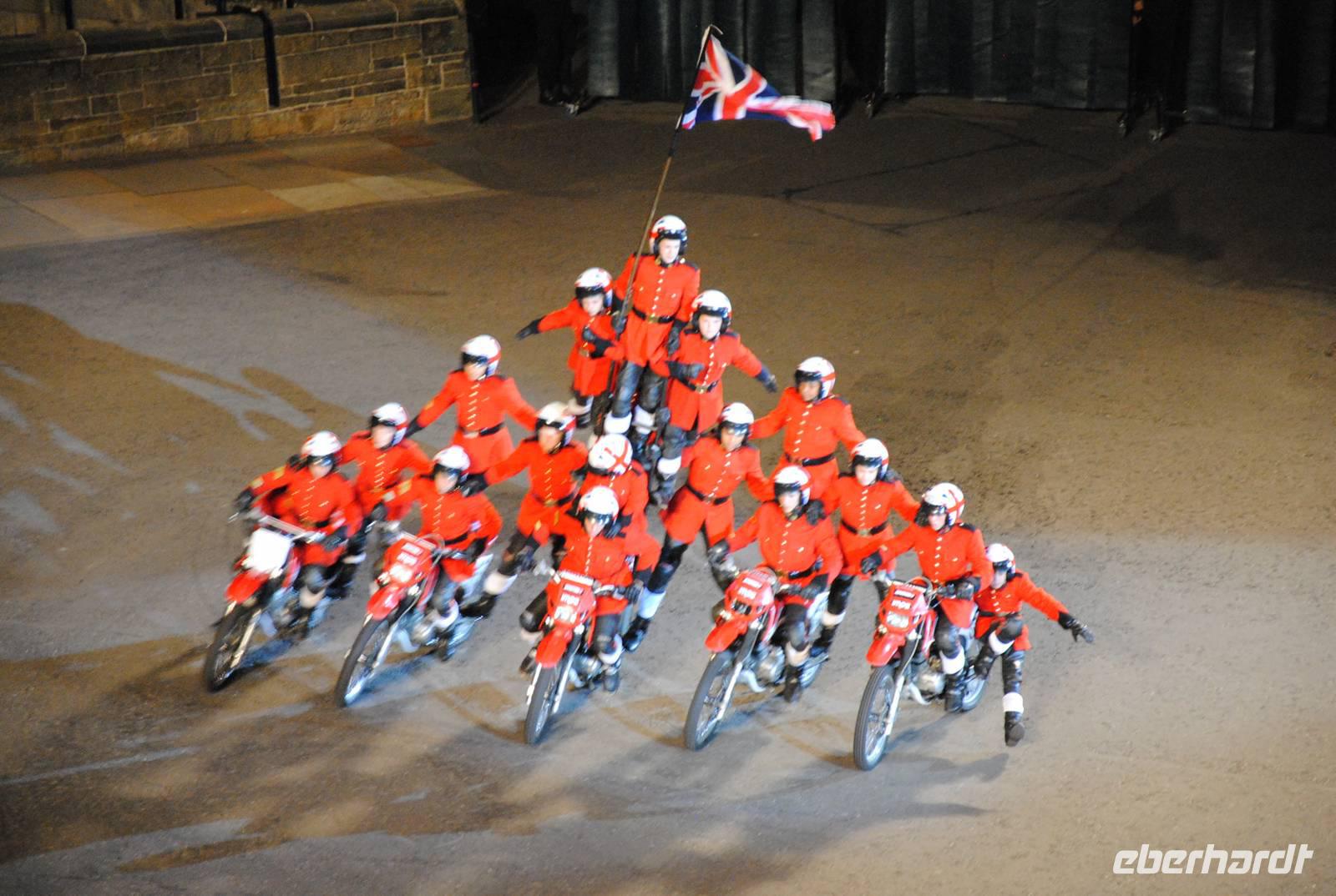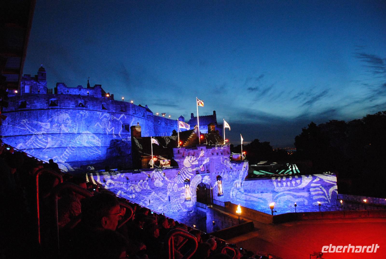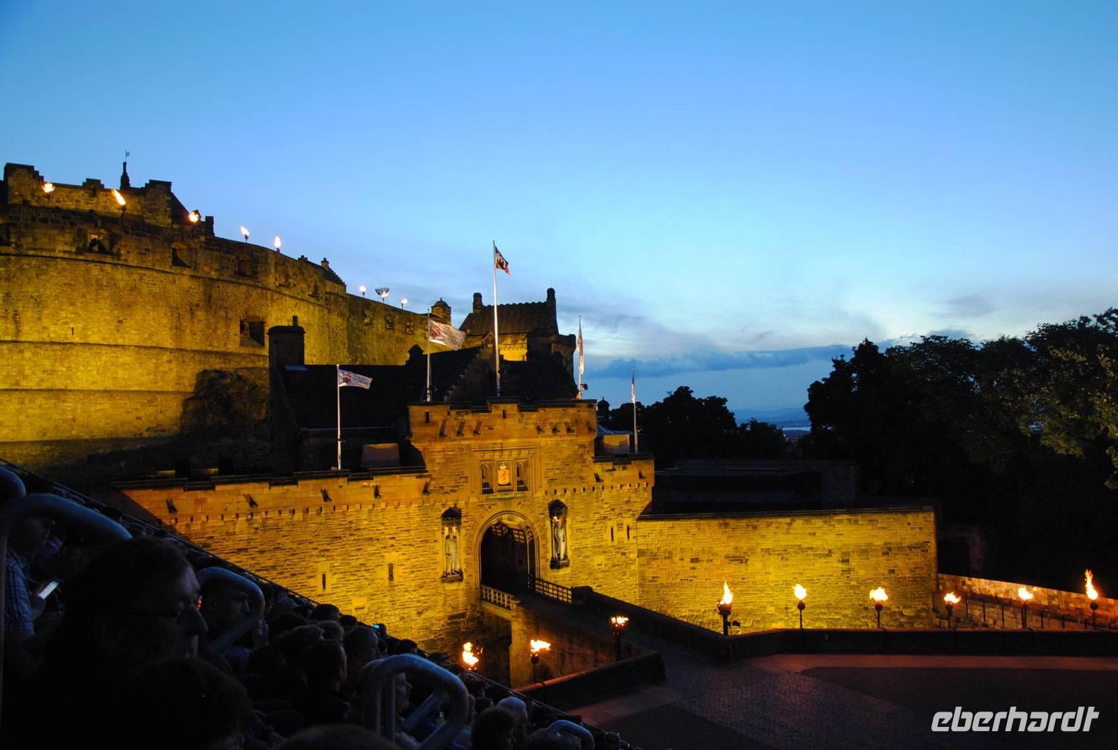 Dieser Zapfenstreich seit 1947 hat eine so hohe Qualität, dass die Queen ihn adelte als „Royal Military Tattoo". Wunderschöne stimmige und hochpräzise Inszenierungen für internationale Militärkapellen von Rang aus Schottland und von den Schotten weltweit, aus Mexiko, aus Korea usw. beeindruckten nachhaltig und sorgten für Begeisterung. Pünktlich zurück (zuvor hatten wir uns von unserem Fluggast verabschiedet) bereiteten wir uns auf die kommende Abfahrt vor.
