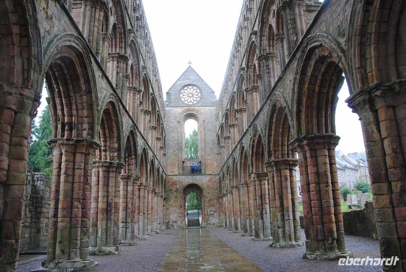 In Jedburgh stärkten wir uns vor unserem Besichtigungsrundgang zur Abteiruine, auch heute ein besonderer Ort mit starker Ausstrahlung und eine Perle der englischen Gotik, am Ufer des Jedflusses malerisch gelegen - so malte William Turner die Szenerie zum ausgehenden 19. Jahrhundert.