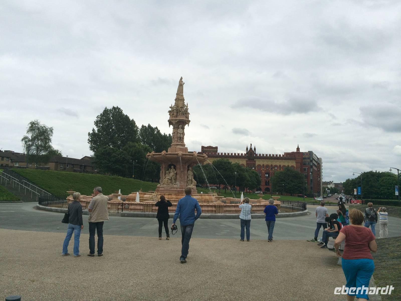England hat uns klassisch, mit Nieselregen, empfangen, hat uns aber nicht sehr abgeschreckt! Wir fahren durch Newcastle und dann entlang des alten Military Road in Richtung Carlisle. Wir halten bei Housesteads Roman Fort an. Nach Besichtigung der Befestigungsanlage und dem Genuss des Vier-Gänge-Menüs von Reiner, Weiterfahrt durch eine unvergleichlich schöne Landschaft mit verschiedenen Fotostopps bis Glasgow. Wir kamen in Glasgow pünktlich am Hotel an und hatten Zeit, um unsere Zimmer zu beziehen. Unser Hotel lag sensationell Zentrumsnah. Kurz vor 16 Uhr erschien unser örtlicher Reiseführer, Fraser Gorden. Was für ein Bild: schottischer geht es wirklich nicht!! Mit Kilt, passendem Jackett, Strümpfe und Schuhe hat er alle Gäste schon auf seiner Seite. Alle saßen schon im Bus, als unsere Fluggäste auch, trotz der Verspätung ihres Transfers, ankamen. Jetzt waren wir vollständig. Der Wettergott liebte uns und zeigte uns seine herrliche Sonnenseite und Fraser zeigte uns die Sehenswürdig- keiten seiner Stadt Glasgow, er beantwortete fast alle Fragen unserer neugierigen Gäste und erfüllte der vielen Fotowünsche (mit ihm!!). Nach einer schönen und informativen Stadtrundfahrt sind wir zum Hotel zurück gekehrt und haben das Abendbrot genossen. Einige Gäste haben Glasgow abends selbst erkundet.