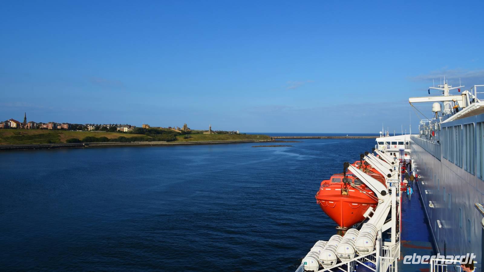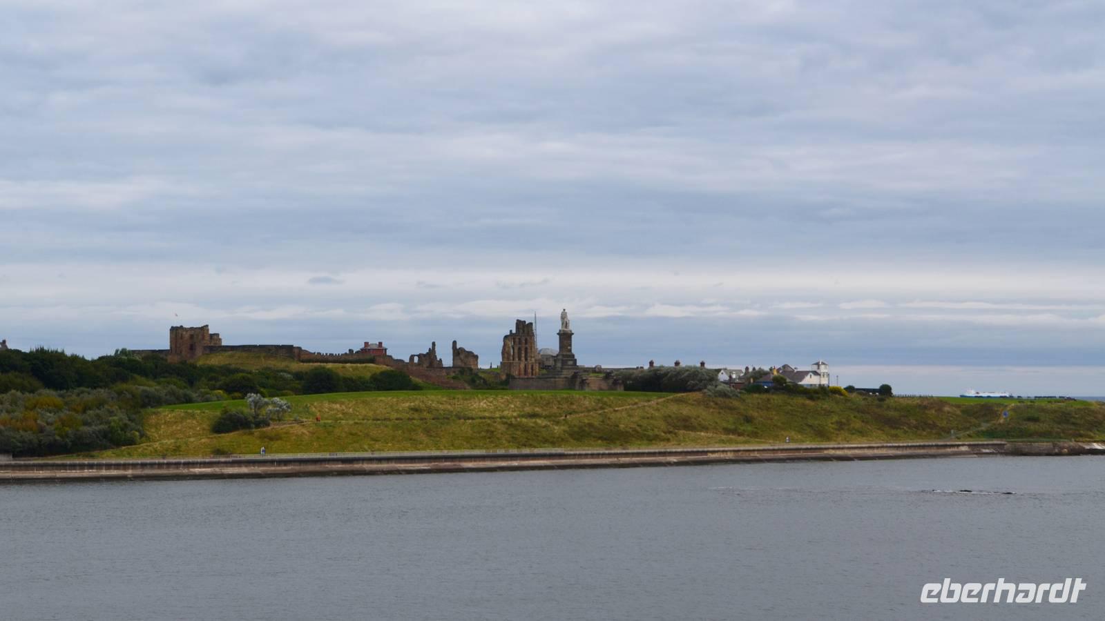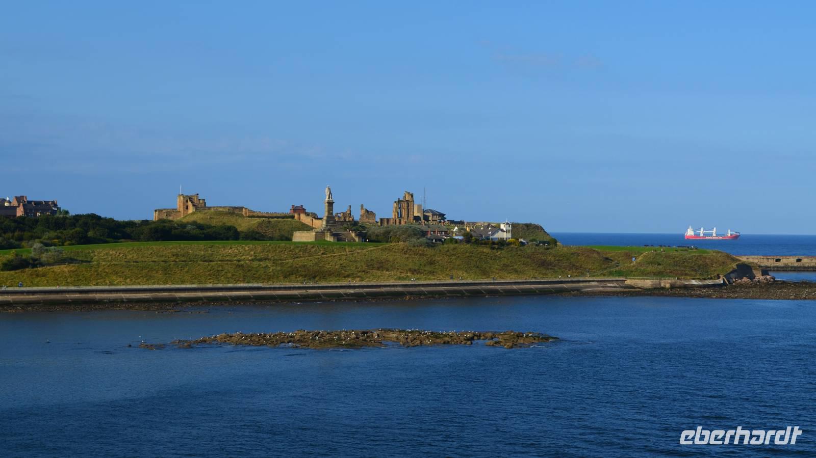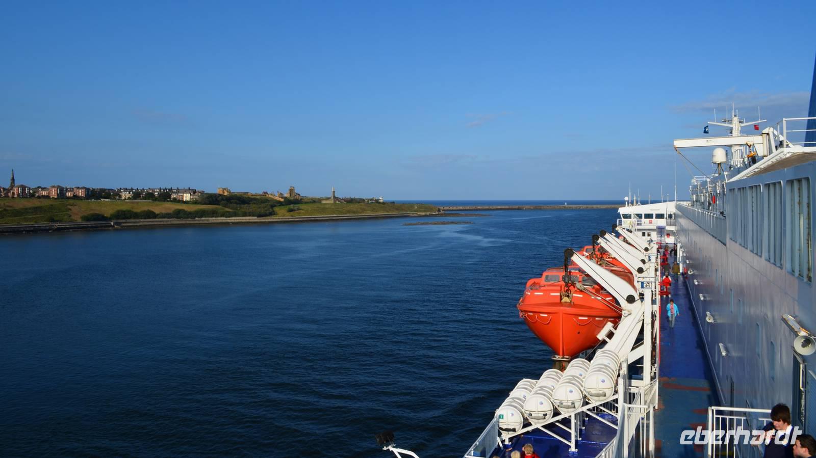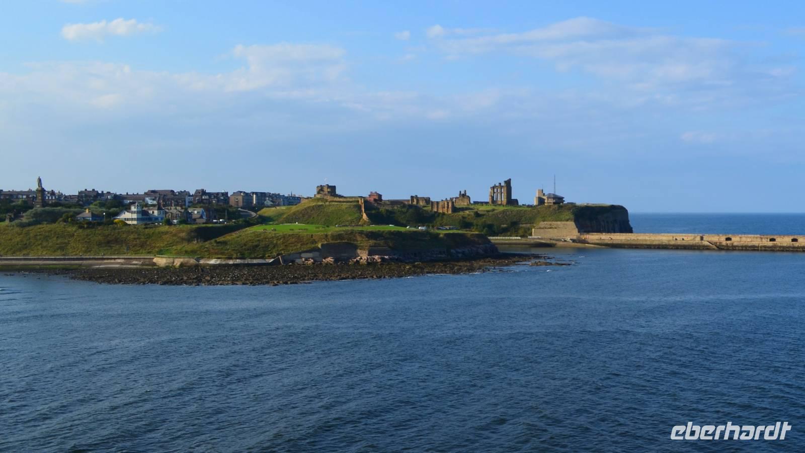 Ein leckeres Frühstück lässt den Tag mit Zufriedenheit beginnen. Wir erlebten die Einfahrt der Fähre in die Mündung des Tyne. Hoch oben auf dem Cliff grüßte das alte Castle und die Ruine des Klosters herüber.