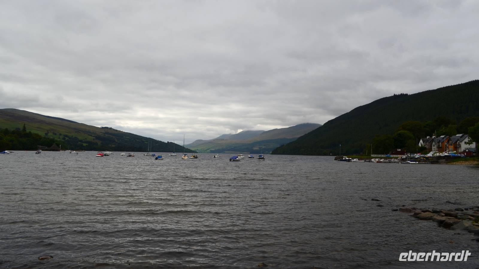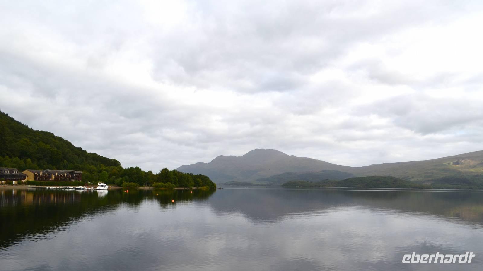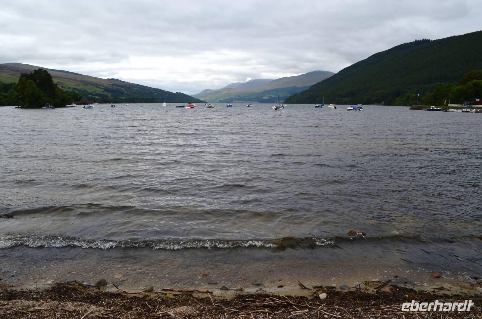 Nach dem guten Frühstück ging es von Glasgow hinein in die Trossachs, zum Loch Lomond. Im hübschen Ort Luss hielten wir für Fotos, machten einen gemeinsamen Spaziergang zum Seeufer und am Strand entlang zum Pier, dann durch die Häuserzeilen mit den blumenreichen Vorgärten zurück zum Bus;