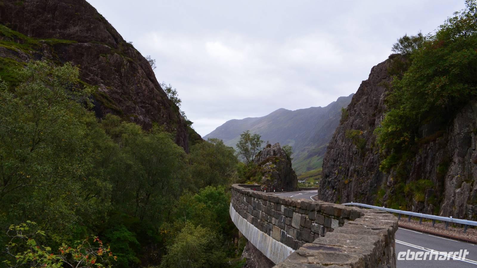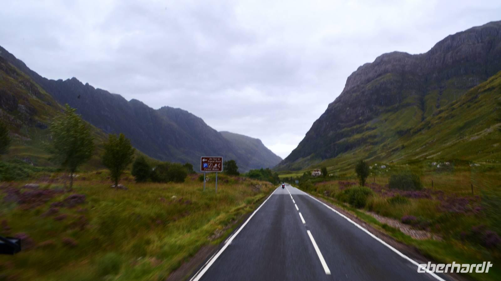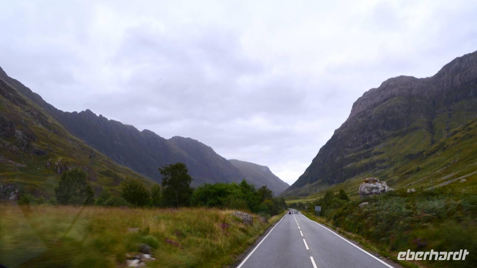 Die Küstenstraße entlang des Loch Linnhe ging es anschließend Richtung Fort William; dann zum Loch Leaven herum und hinein ins Glen Coe.