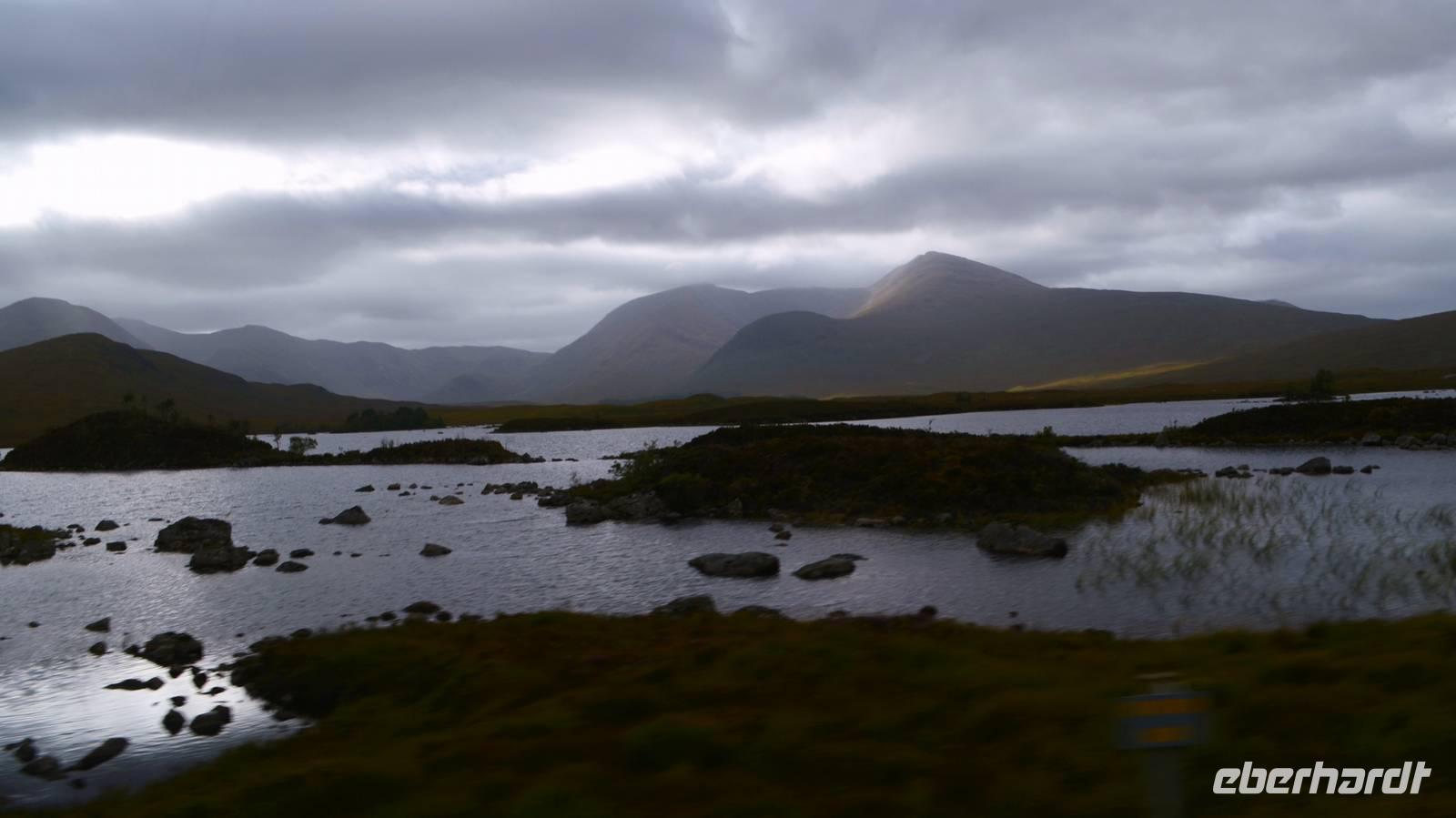 Beeindruckend hier die Berge der Highlands, dann das Rannoch Moor und schließlich die Landschaft um den Loch Tulla.