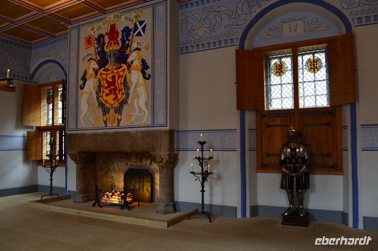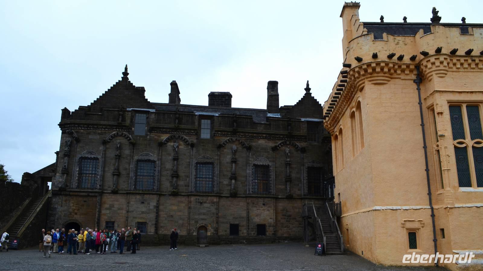 Von der Esplanade auf dem 70 m hohen Vulkanfelsen der Eintritt ins Castle. Das Schloss mit den Prunkräumen von König James IV. und seiner Frau Marie de Gyse - den Eltern Mary Stuarts, die große Halle aus dem 14. Jahrhundert, die Befestigungsanlagen und die herrliche Aussicht von dieser strategisch günstigen Lage beeindrucken.