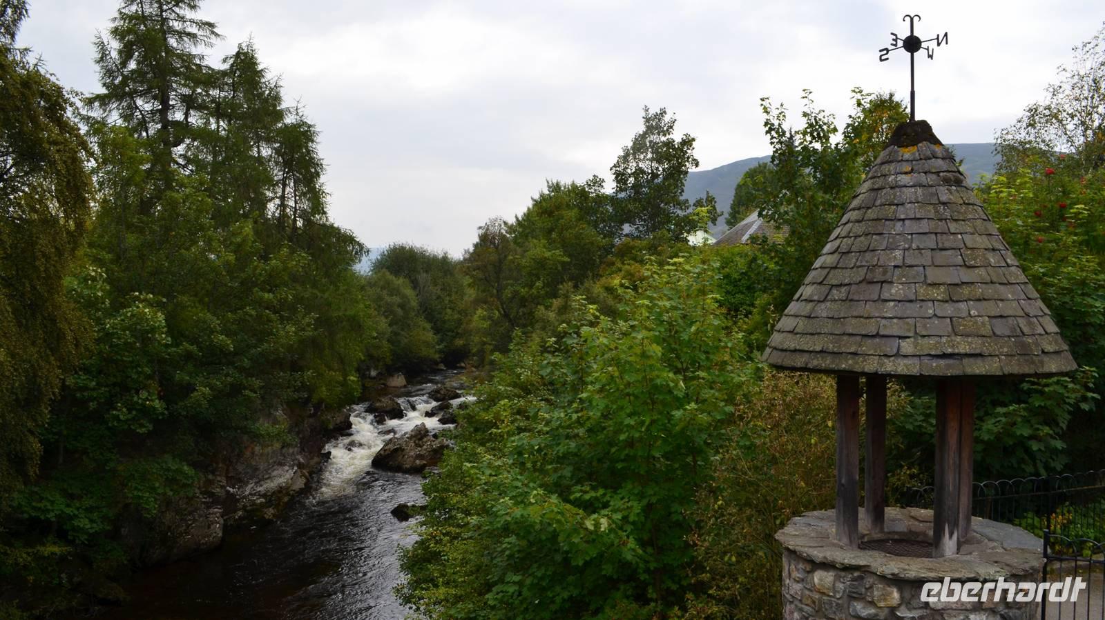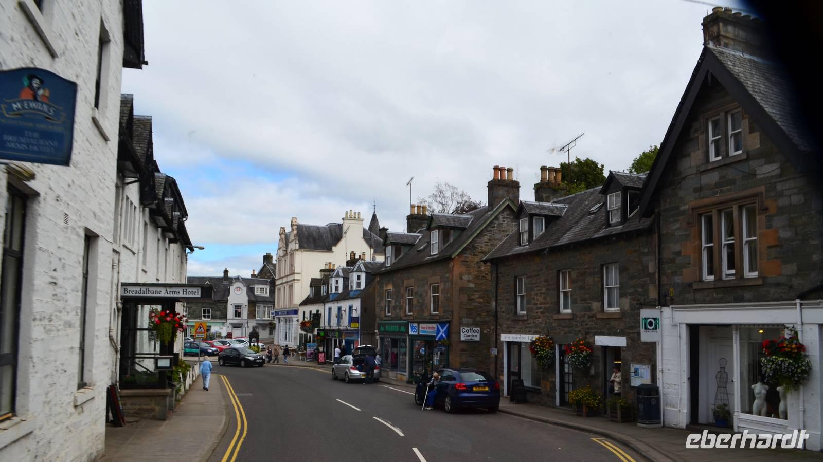 Bei der Weiterfahrt nach Callander und durch die Trossachs nach Killin; mit den Falls of Dochart erleben wir erneut wunderschöne Landschaften. Günters Bratwürste bieten zusätzliche Abwechslung. Entlang des Loch Tay fahren wir weiter nach Kenmore und dann nach Pitlochry. Von hier geht es hinauf zur Whisky Destillery Edradour: Begrüßung, Verkostung, Film über die Geschichte, Führung durch die Brennerei, Einkaufsmöglichkeit sind die erste Begegnung mit weiterer schottischer Lebensart - Single Malt Scotch Whisky.