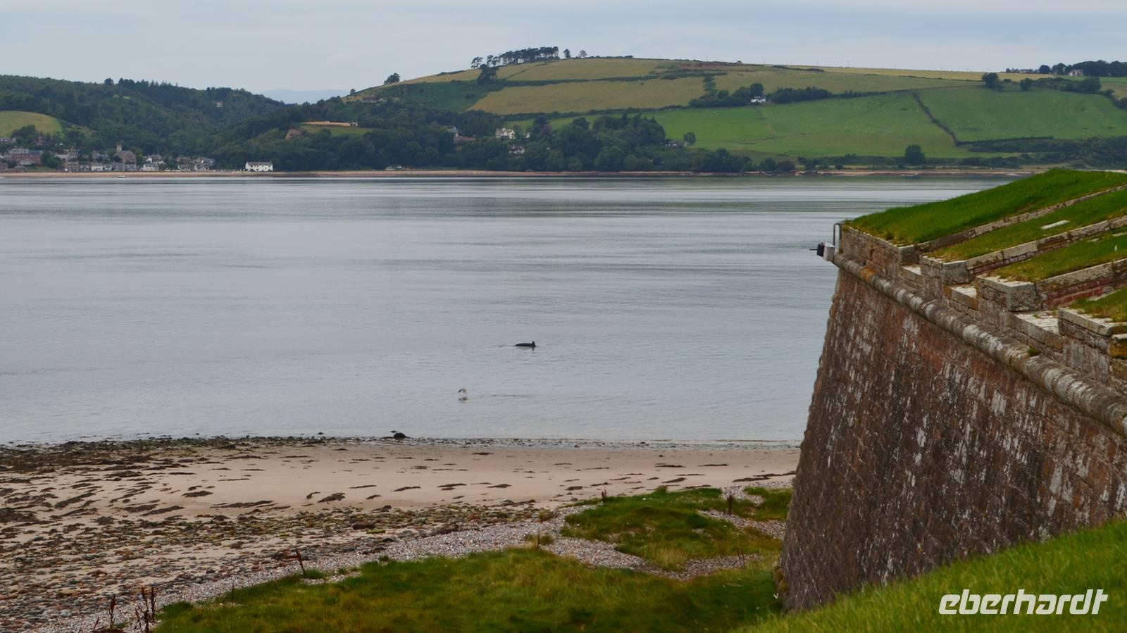 Wir besichtigen es, schauen den Übungen zu für das dort stattfindenden Military Tattoo; auch ein Delphin schwimmt zu unserer Freude im Morrey Firth.