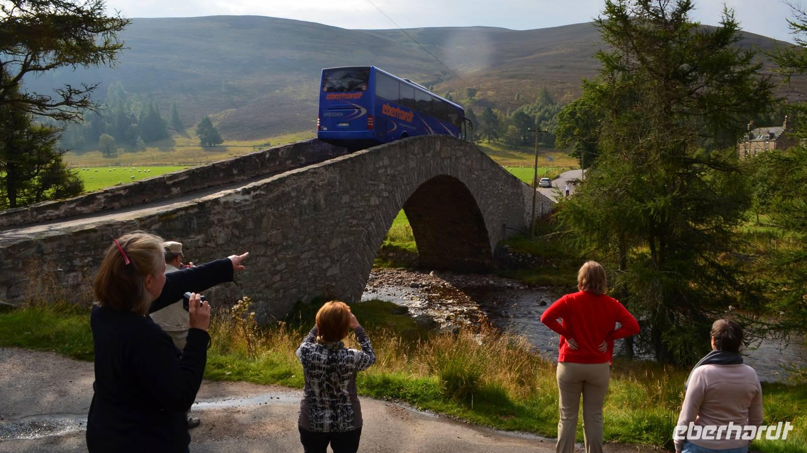 Dann Weiterfahrt zur steilen Brücke über den Fluss und der Fotostopp zur Bus-überfahrt.