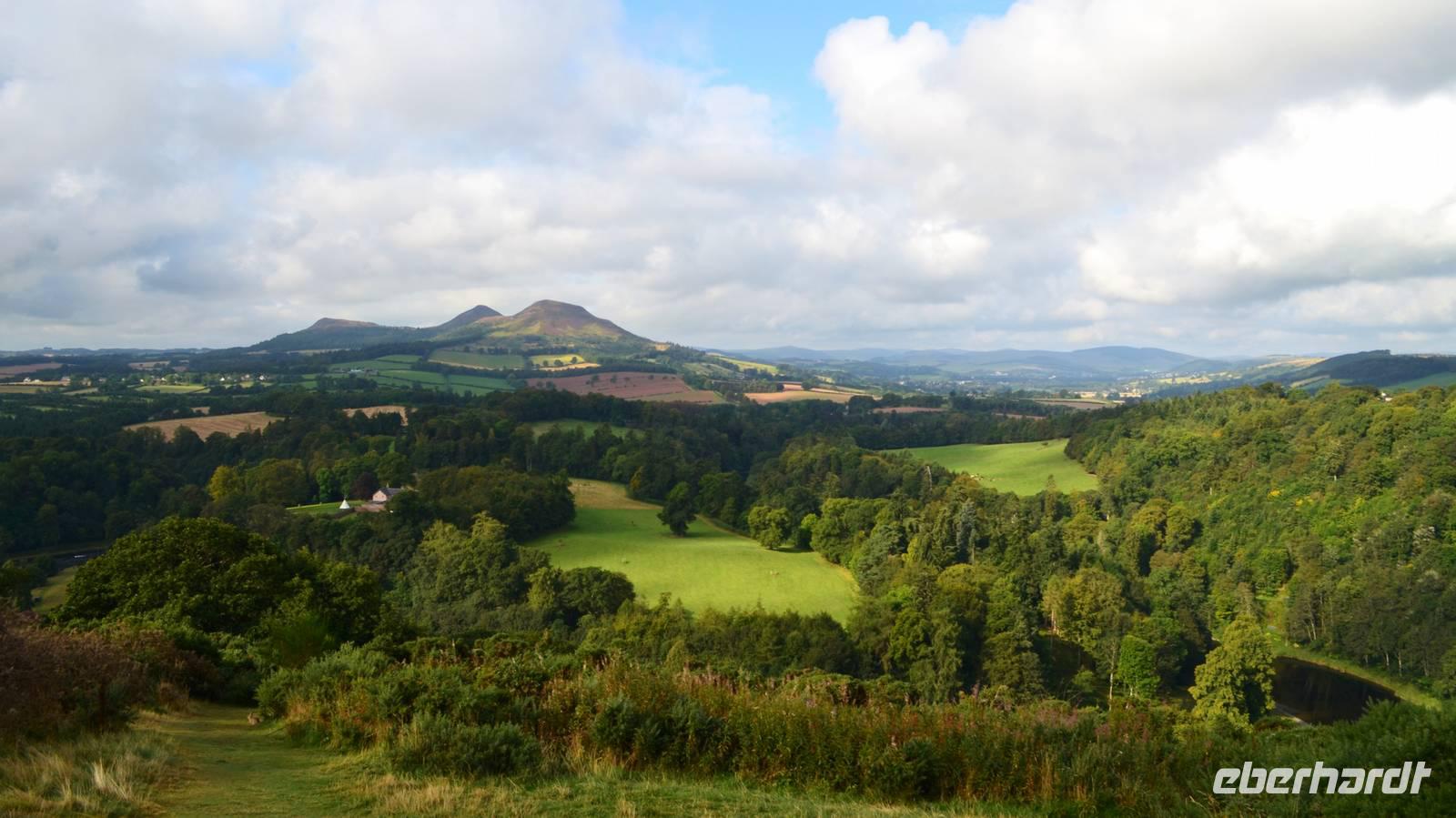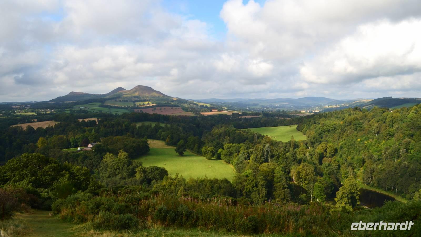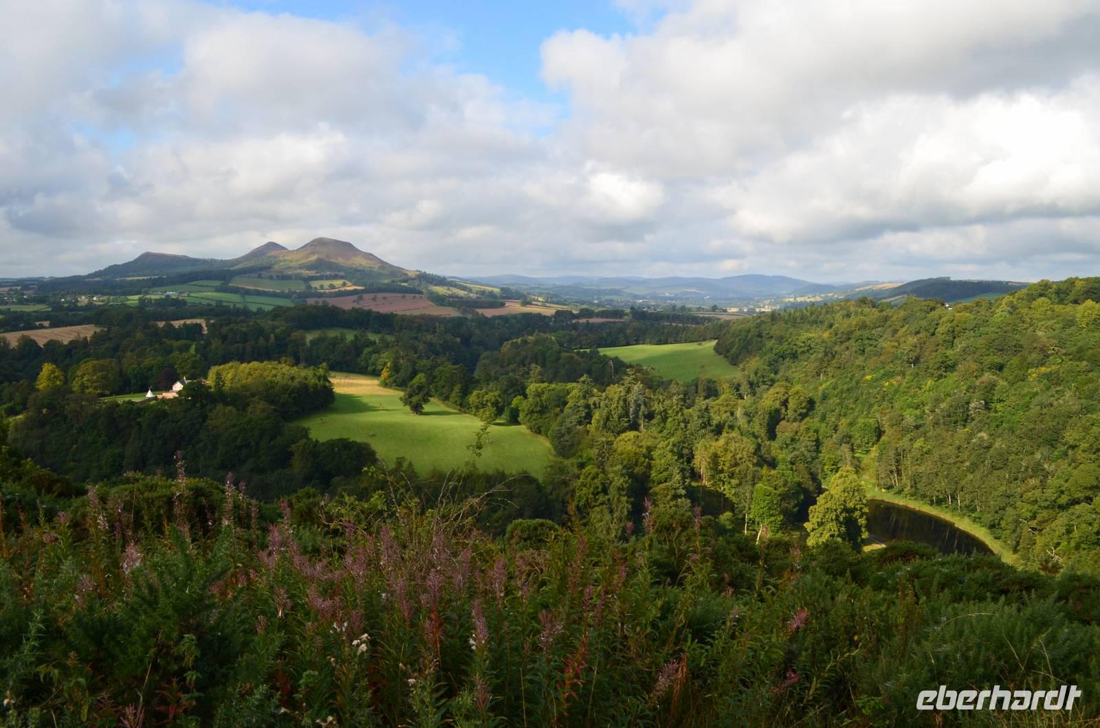 Tweed und die Vulkankegel der Eildon Hills. Von hier geht es zur Dryburgh Abbey;