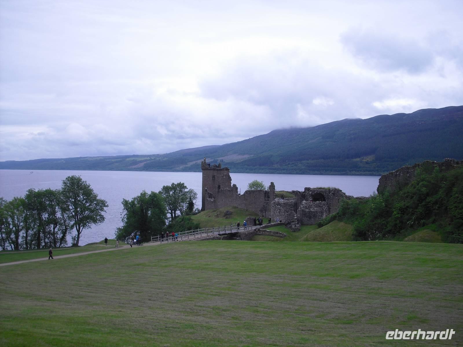 Mit dem Boot landeten wir am Anleger von Urquhart Castle, das wir nun besichtigen konnten. Die einstige Burganlage hat eine außerordentlich bewegte Geschichte und ist die berühmteste Burg am Loch Ness. Ursprünglich vom schottischen Königshaus errichtet, um den Great Glen zu beherrschen, überlebte sie viele Jahrhunderte lang Schlachten und Belagerungen, um schließlich 1692 gesprengt zu werden. Inspiriert durch Schriften von Sir Walter Scott und anderen Schriftstellern fingen die Schotten an, sich mehr und mehr für historische Denkmäler zu interessieren und Besucher strömten nach Urquhart. Robert Burns, Samuel Taylor Coleridge und der englische Künstler John Everett Millais schufen bewegende Schriften und Bilder zu Urquhart Castle. So kam das Castle 1911 in staatliche Obhut und wird heute von Historic Scotland verwaltet.