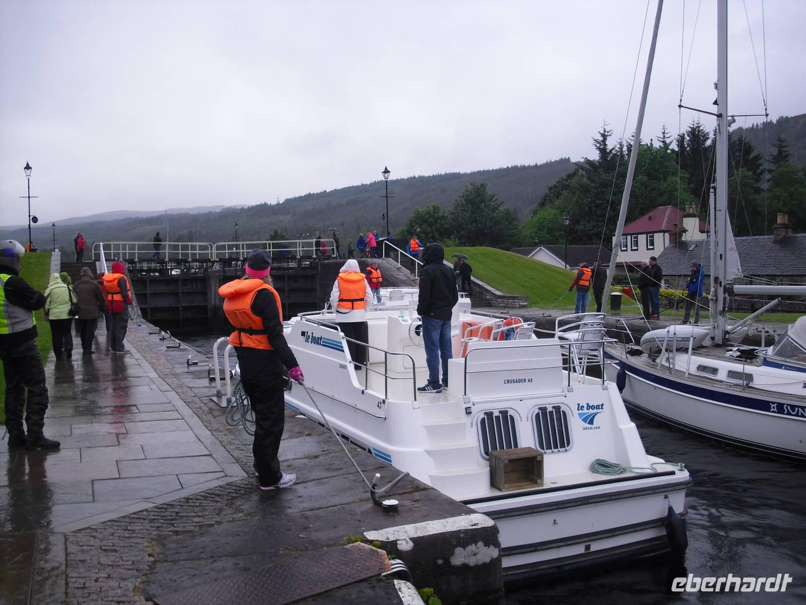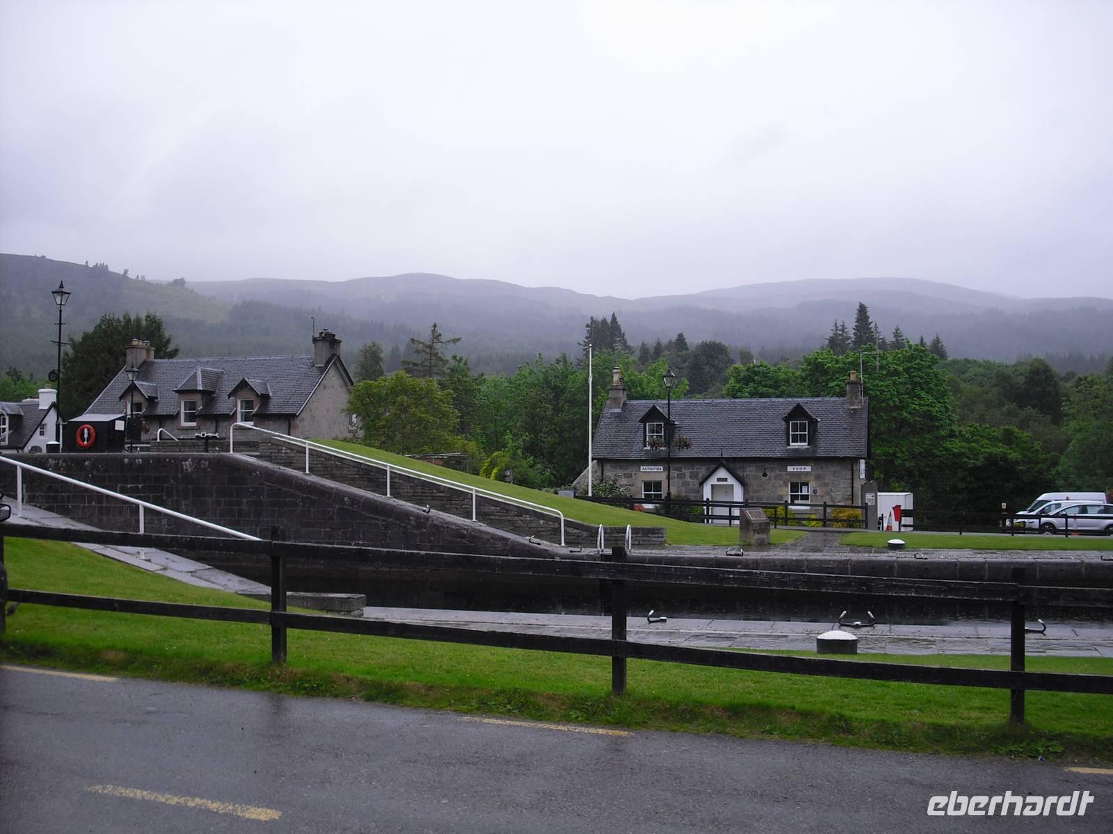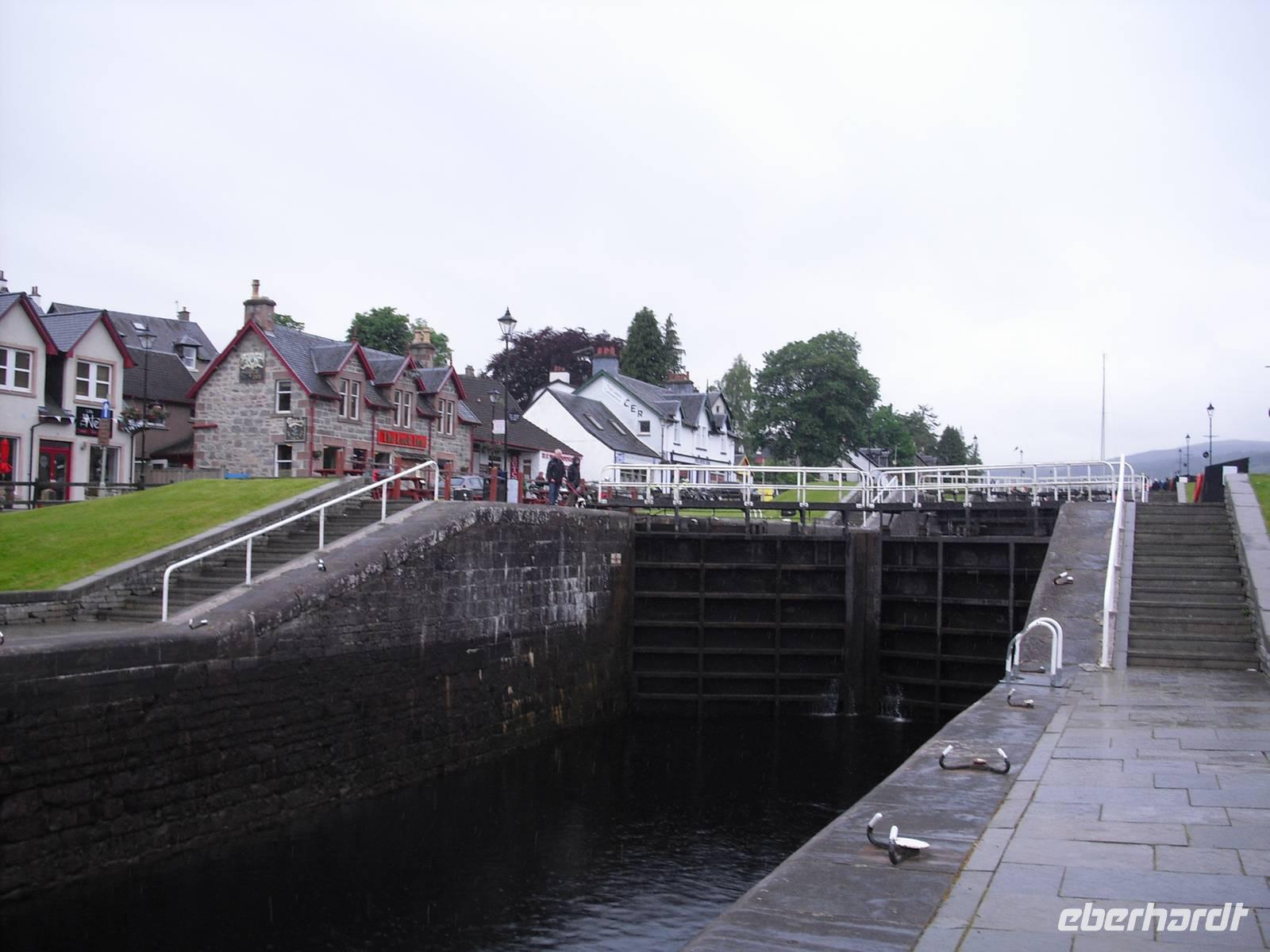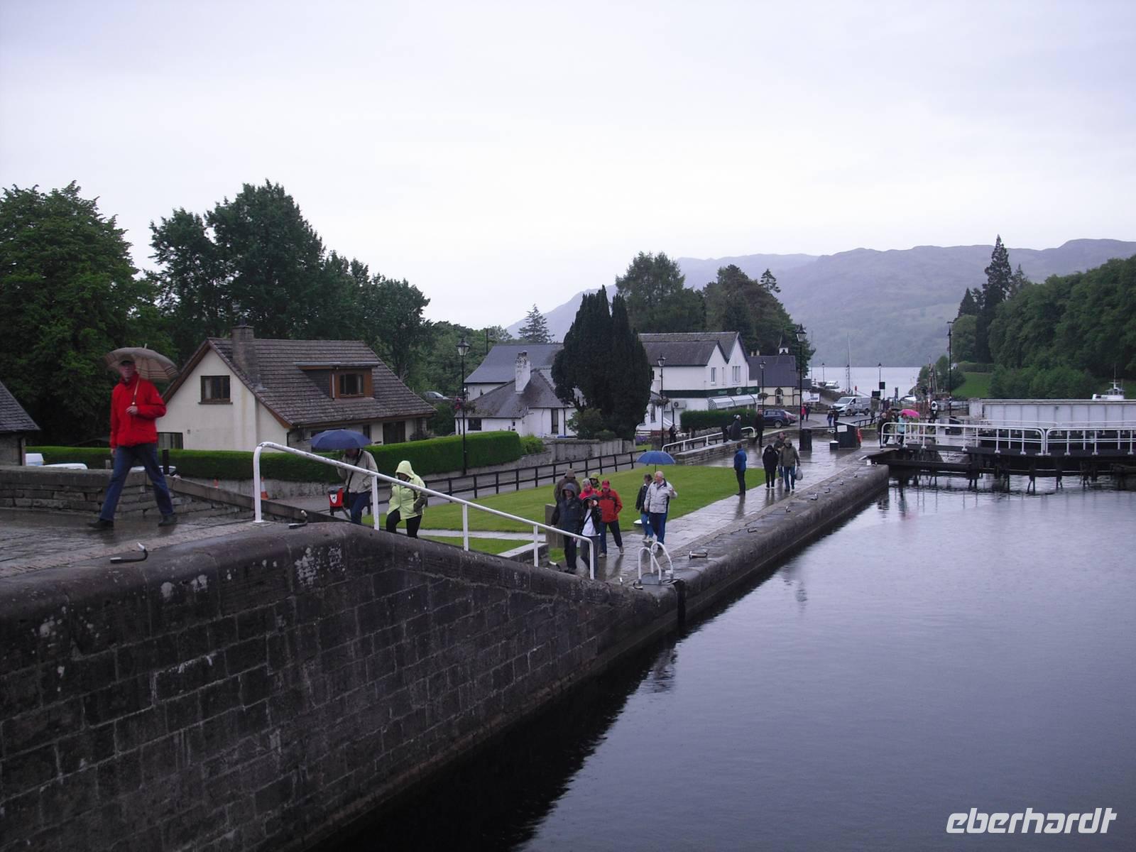 Angekommen am Loch Ness machten wir uns auf Jagd nach Nessie, zunächst im Shop und später dann auf einem Boot auf dem Loch Ness. Es ist wohl der berühmteste See der Welt und erstreckt sich über eine Länge von fast 37 km. Der See ist 230 m tief und berühmt für sein Monster Nessie. Dieses Monster wird seit Jahrzehnten immer mal wieder gesehen!? und üblicherweise als ein Wesen mit kleinem Kopf, einem langen Hals und einem breiten buckligen Körper beschrieben. Loch Ness ist aber auch Teil des von Thomas Telford entworfenen kaledonischen Kanals, der 1822 fertiggestellt wurde. Gebaut wurde er als leicht zu befahrende Route zwischen der Nordsee im Nordosten und dem Atlantik im Südwesten. Der Kanal ist 96 km lang und davon sind 35 km durch Menschenhand geschaffen worden. Der größere Teil des Kanals besteht aus den Seen Loch Dochfour, Loch Ness, Loch Oich und Loch Lochy, die durch eine Reihe von Schleusenanlagen miteinander verbunden sind.Eine solche besichtigten wir in Fort Augustus.