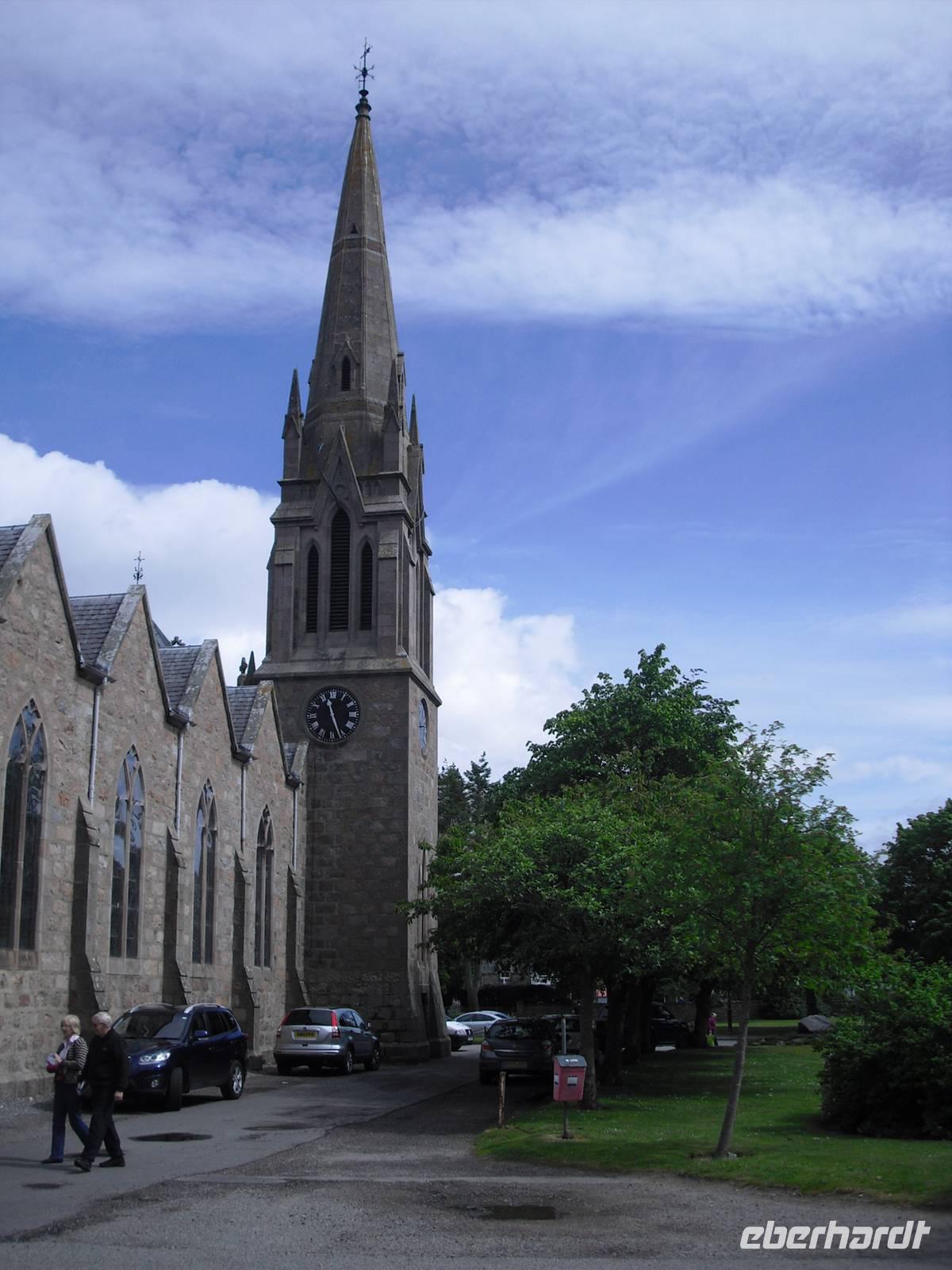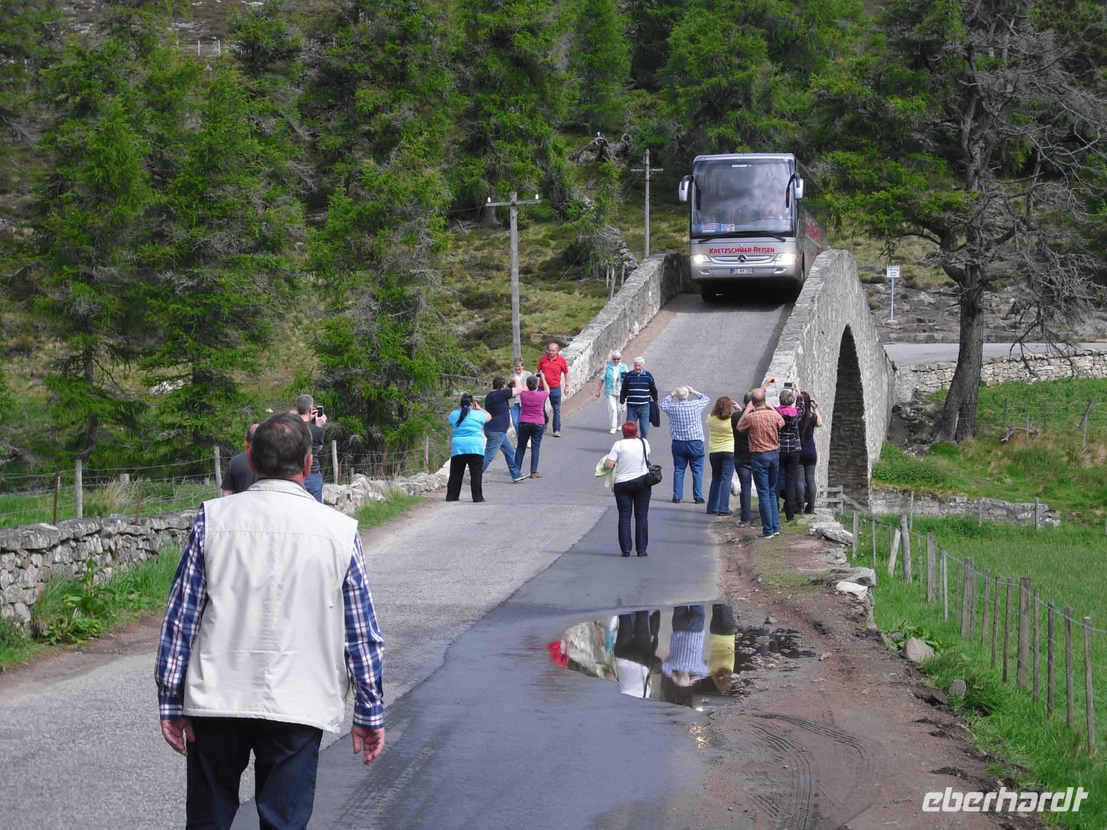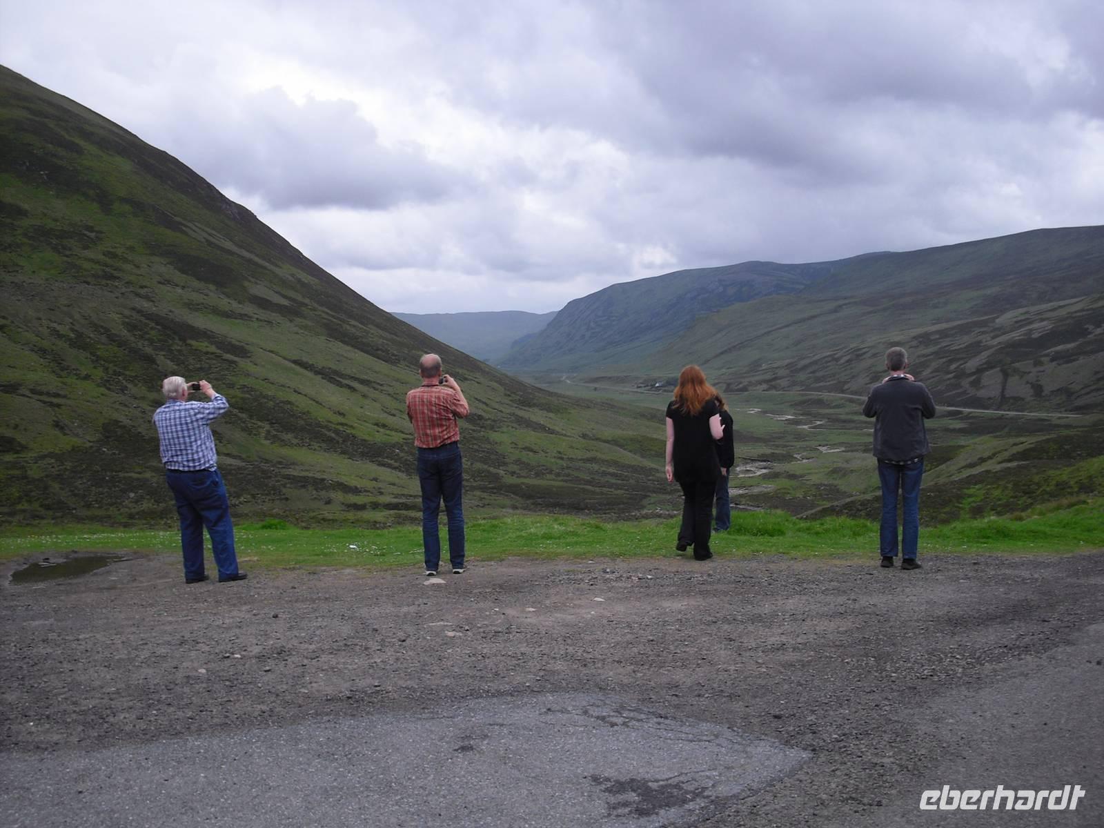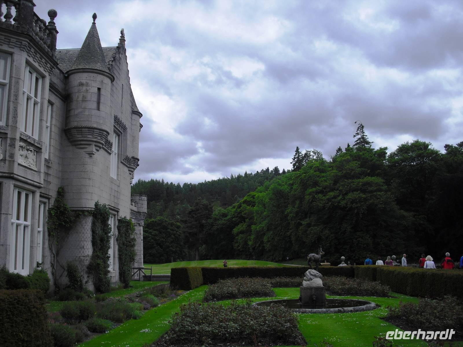 Heute begann nach dem Frühstück eine Panoramatour durch die Grampian Mountains. In Tomintoul legten wir eine erste Service - Pause ein und fuhren anschließend nach Ballater. Der Bus hatte dort eine Tankstelle und wir lernten den königlichen Hofbäcker für die Versorgung der Royals auf Balmoral Castle kennen. Schließlich wollten ja alle Reisegäste die schottische Sommerresidenz der englischen Königsfamilie kennenlernen. Königin Victoria und ihr Gemahl Prinz Albert hatten sich hier nach einem ersten Schottlandbesuch im Jahr 1842 ein Schloss im Stil viktorianischer Romantik gebaut. Von einem Audio-Guide erfuhren wir viel Wissenswertes und wandelten in königlichen Gefilden. Wenn Königin Elisabeth II. in Balmoral Castle weilt, dann besucht sie sonntags die Kirche in Braemar zur Messe und am ersten Sonnabend im September eines jeden Jahres die eindrucksvollen Braemar Highland Games. Die Disziplinen sind Seilziehen, Hammerwerfen, Kugelstossen, Baumstammwerfen und nicht zu vergessen: Dudelsack spielen, Whisky und Bier trinken !