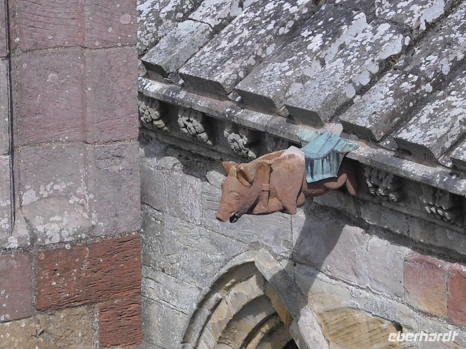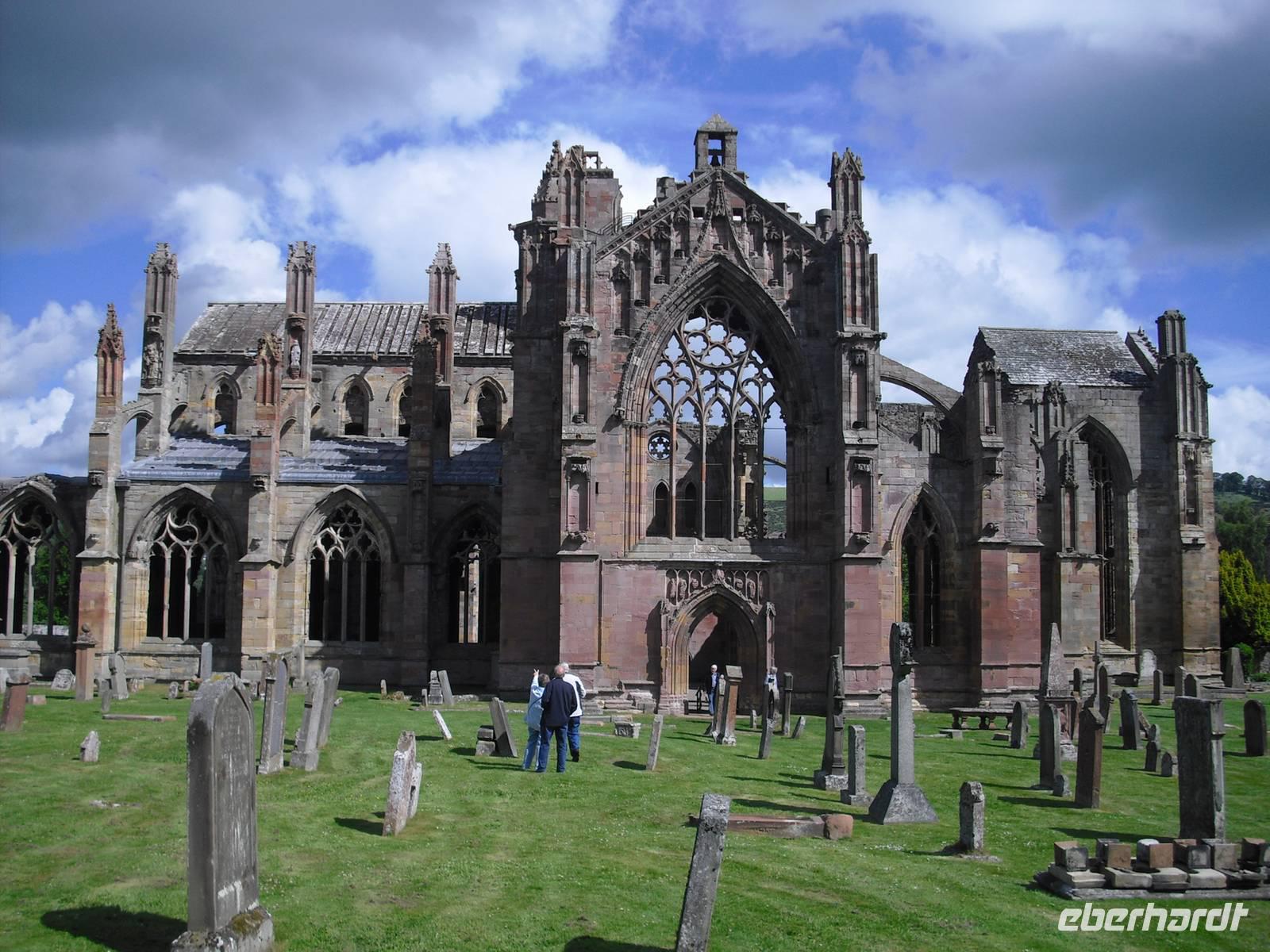Ein letztes schottisches Frühstück auf dieser Reise, ein herzliches Bye Bye zu den Flugreisegästen und wir verließen Edinburgh. Unser erstes Ziel war Melrose Abbey. David I. war es, der 1136 den Grundstein für das Kloster legte. Nach starken Zerstörungen durch Krieg 1322 und 1385 ging das Bauwerk 1544 ein letztes Mal in Flammen auf - durch englische Truppen unter dem Grafen von Hertford. Seither Ruine vermittelt Melrose Abbey noch heute einen Eindruck einstiger Schönheit und Baukunst. Ungewöhnlich sind die Ausschmückungen an den Gebäuden und das Maßwerk in den Fenstern. Der Spaß an der Arbeit der Steinmetze zeigt sich am Dach der Abteikirche: ein dudelsackspielendes Schwein. Nach dem Tod des schottischen Königs Robert the Bruce soll sein Herz in Melrose bestattet worden sein. Im Kapitelhaus wurde 1920 tatsächlich ein mumifiziertes Herz entdeckt. Auch der Ort selbst strahlt eine angenehme Geruhsamkeit aus.