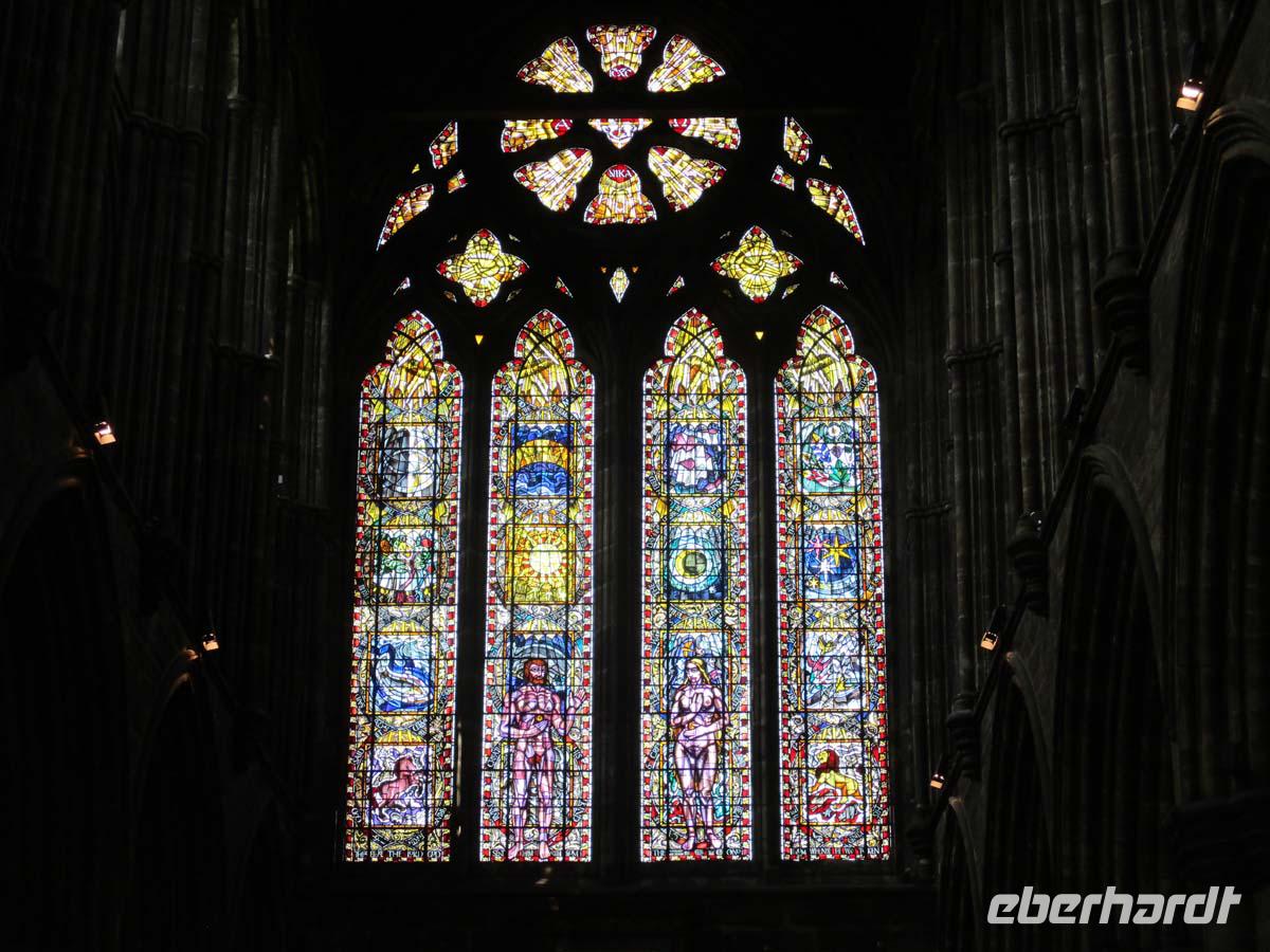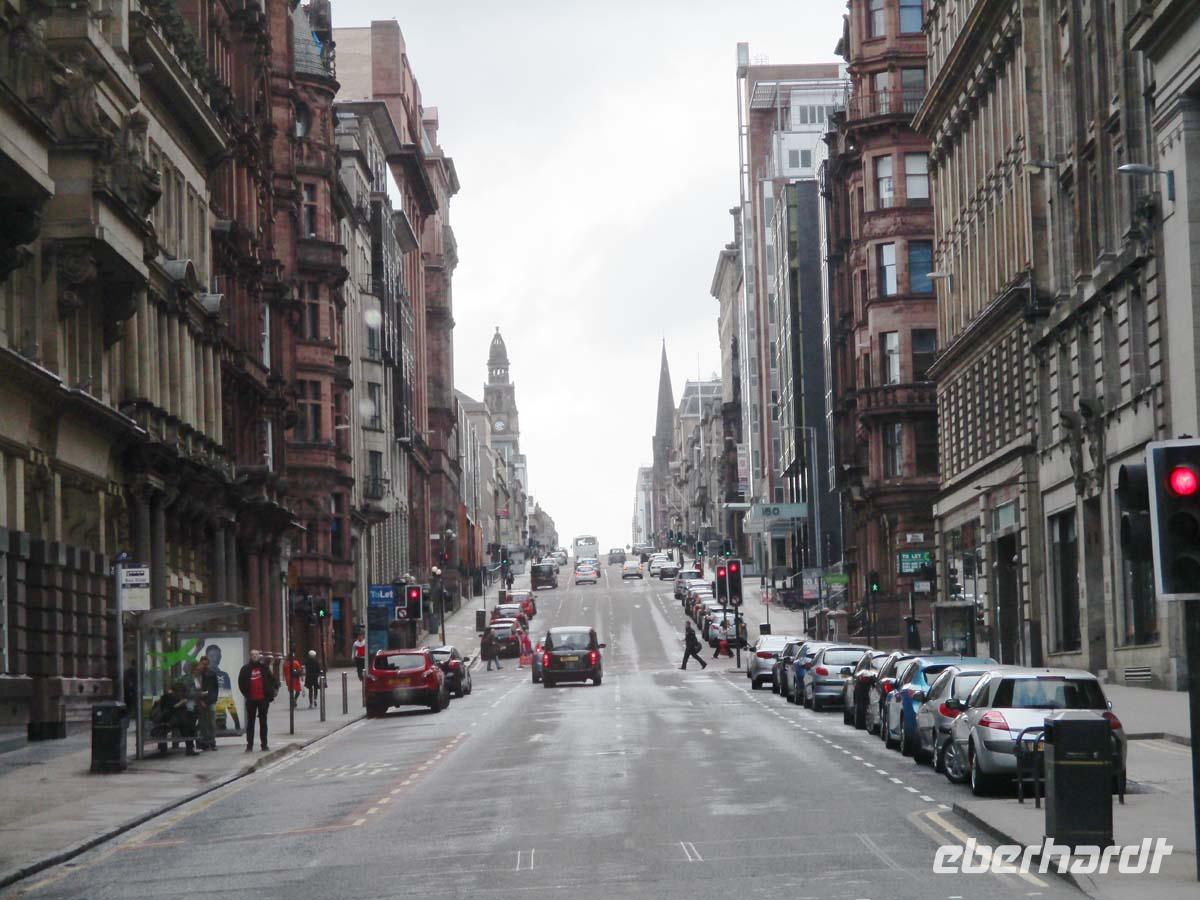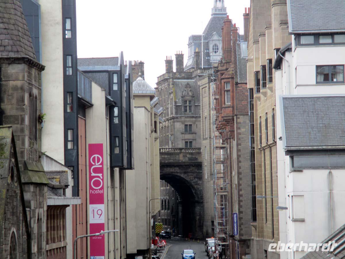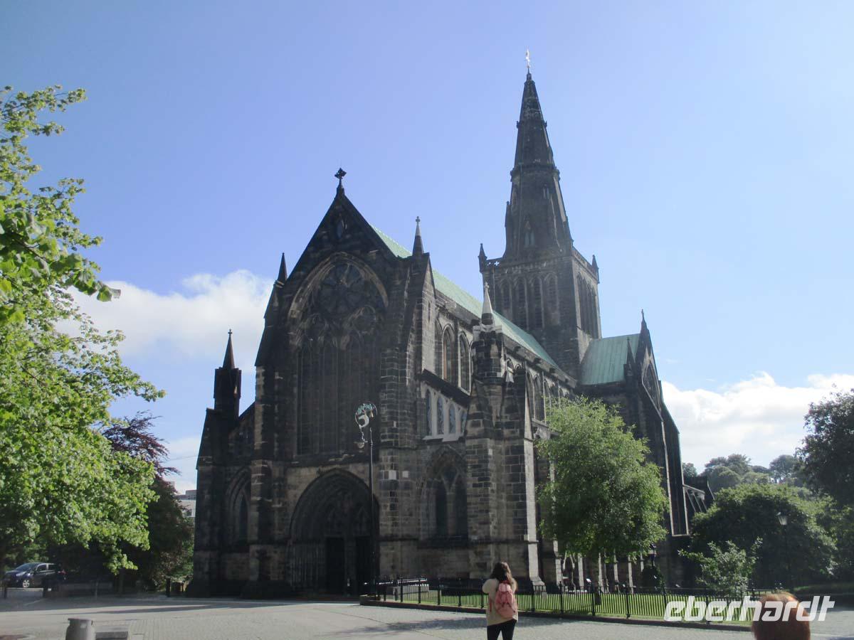 Am Nachmittag erreichen wir die schottische Metropole Glasgow. Unser Hotel liegt mitten in der Stadt. Hier treffen wir auch auf die Gäste, welche mit dem Flugzeug angereist sind. Nun ist die Gruppe komplett. Schon trifft unsere Gästeführerin ein und wir unternehmen eine ausgedehnte Stadtrundfahrt. Seit den 80er Jahren hatte die Stadt, bedingt durch die Stahl- und Werftenkrise eine starke Rezession durchmachen müssen. Sie erfindet sich gerade neu und überall wird gebaut. Es ist ein Phönix aus der Asche, jedoch hat sich auch einiges Alte erhalten. Z. B. die Kathedrale St. Mungo, in deren Krypta der Schutzheilige der Stadt begraben liegt.