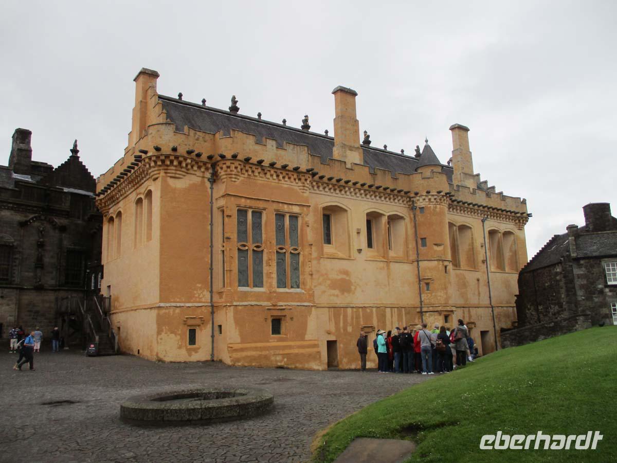Die Besichtigung von Stirling Castle führt uns lebhaft das Mittelalter vor Augen. Schön restauriert steht die ehemalige Königshalle zur Besichtigung offen. Durch Audioguides werden uns die Gebäude ausführlich erläutert. Stirling ist neben Edinburgh Castle das wichtigste Schloss Schottlands. Hier wurde Maria Stuart zur Königin gekrönt. Von oben hat man einen weiten Blick ins Tal und hinüber zum William Wallace Monument, das an den Aufständischen gegen die Engländer gegen Ende des 13. Jh. erinnert.