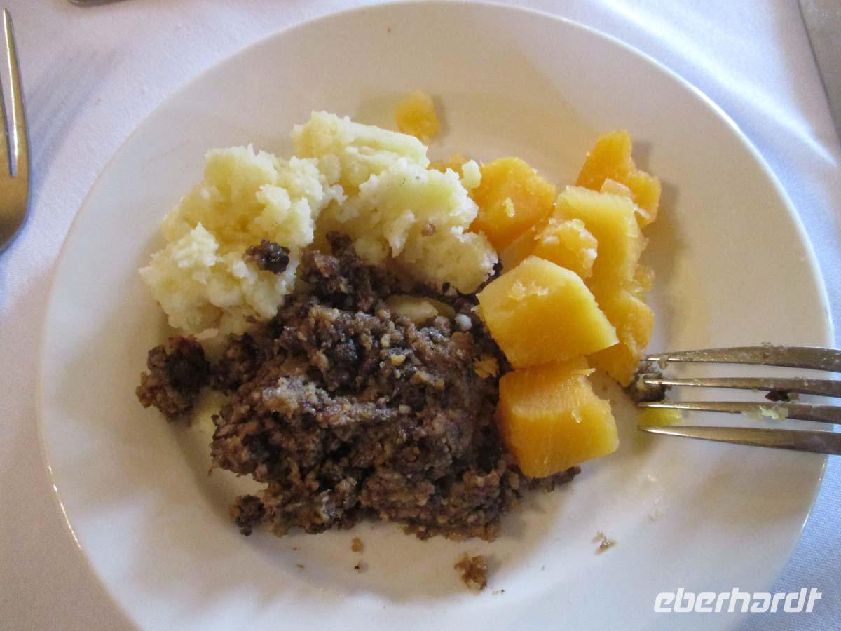 Der Besuch der Museen ist frei, wie auch die schönen Parks frei zugänglich sind. Das Wetter lädt heute auch hier zu einem Spaziergang ein. Die Royal mile bietet alles, was an als Tourist gebrauchen, oder auch nicht gebrauchen kann. Noch einmal fish and chips zum Mittag oder doch lieber Haggis, das Nationalgericht aus gehackter Leber, Lunge und Herz im Schafsmagen? Beides macht für Stunden richtig satt! So ist man gestärkt für einen Besuch z. B. in der Kathedrale St. Gilles, oder einem Einkaufsbummel im Jeffers. in der Princes Street